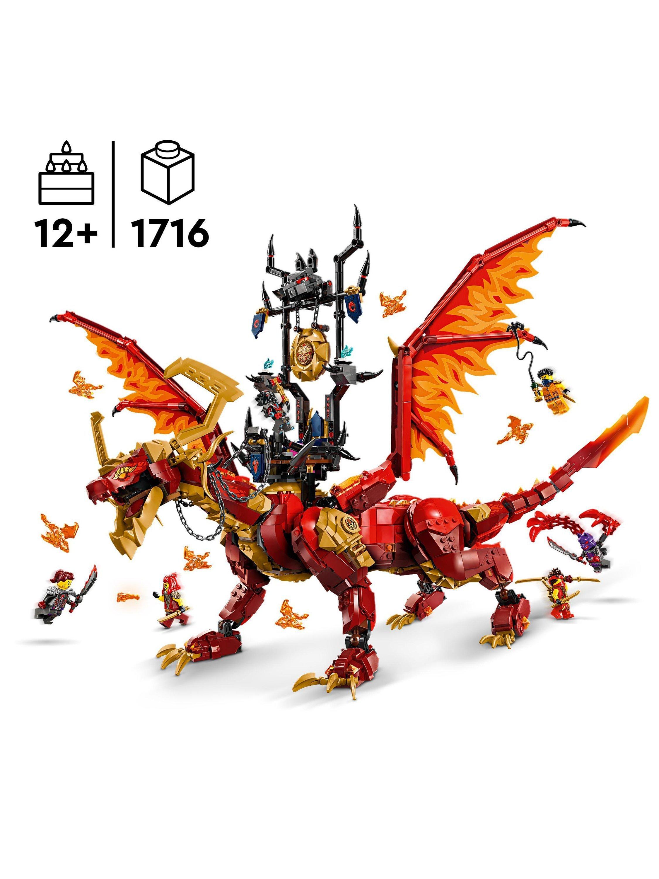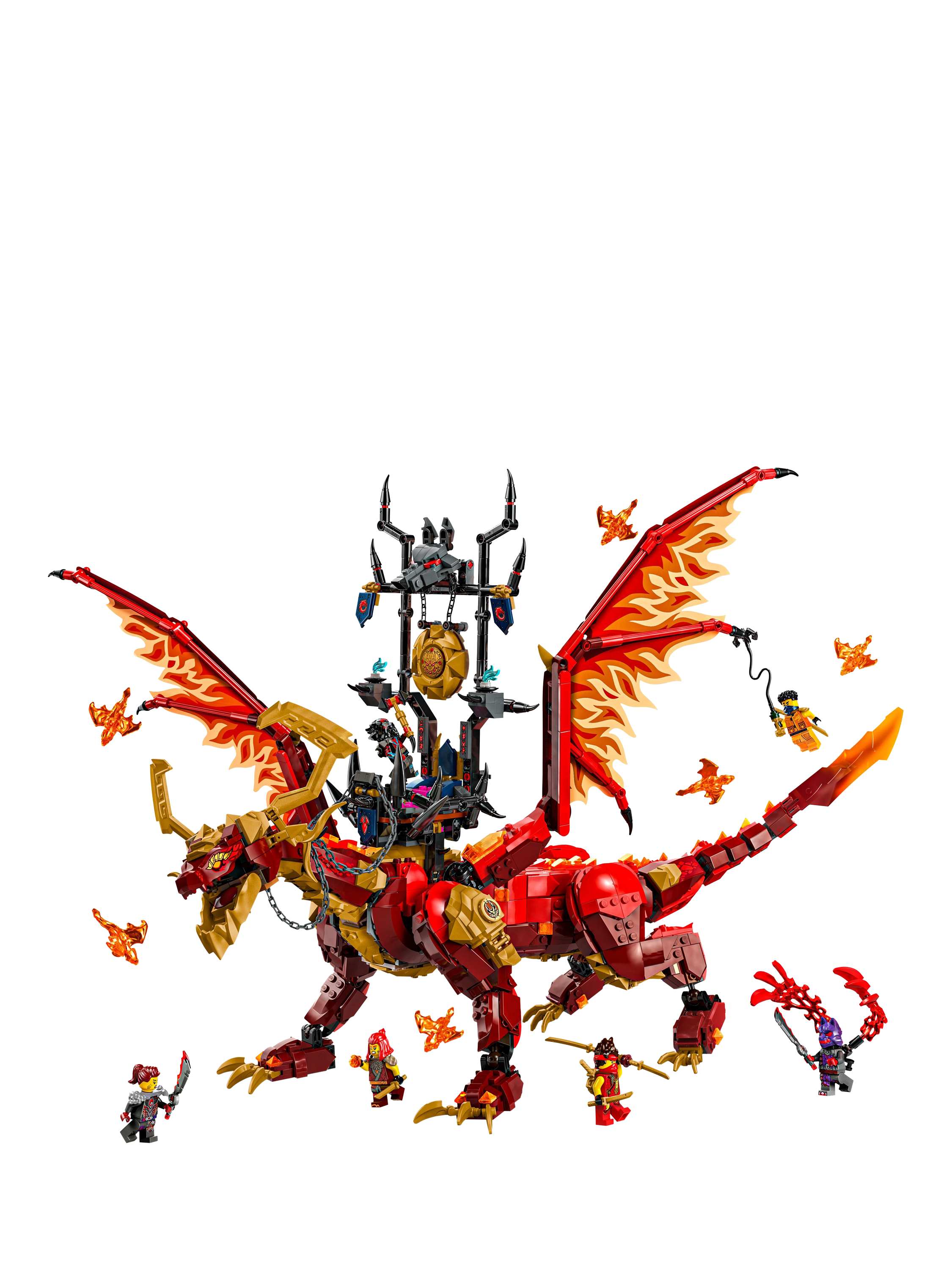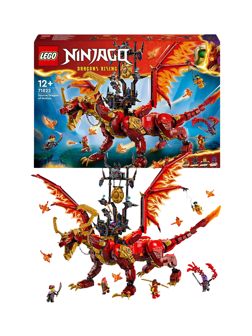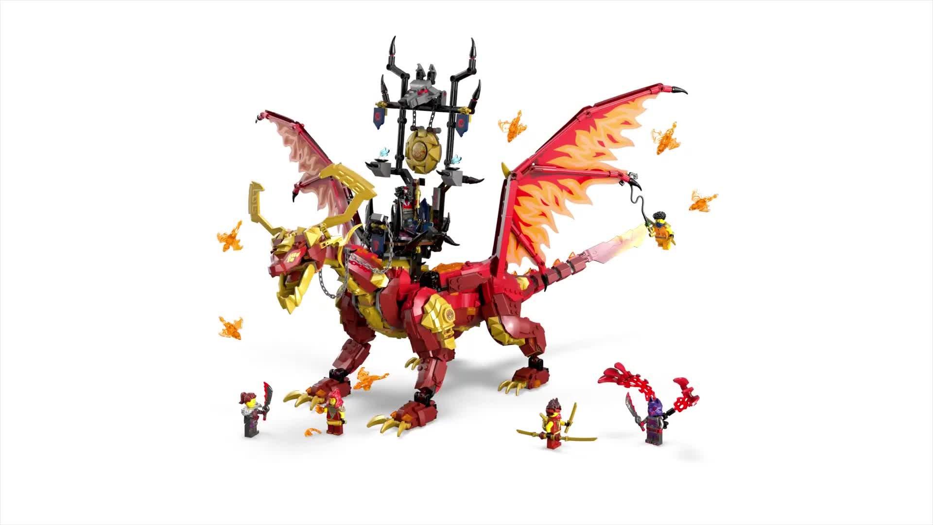 Join forces with the ninja as they attempt to rescue the Source Dragon of Motion! Get ready to launch a secret attack to free the dragon imprisoned by Lord Ras and his Wolf Mask Army. Kai and Arin, armed with their katana swords, and Wyldfyre with her flaming fists are ready to face off against these evil villains! They must triumph to save the NINJAGO® world!