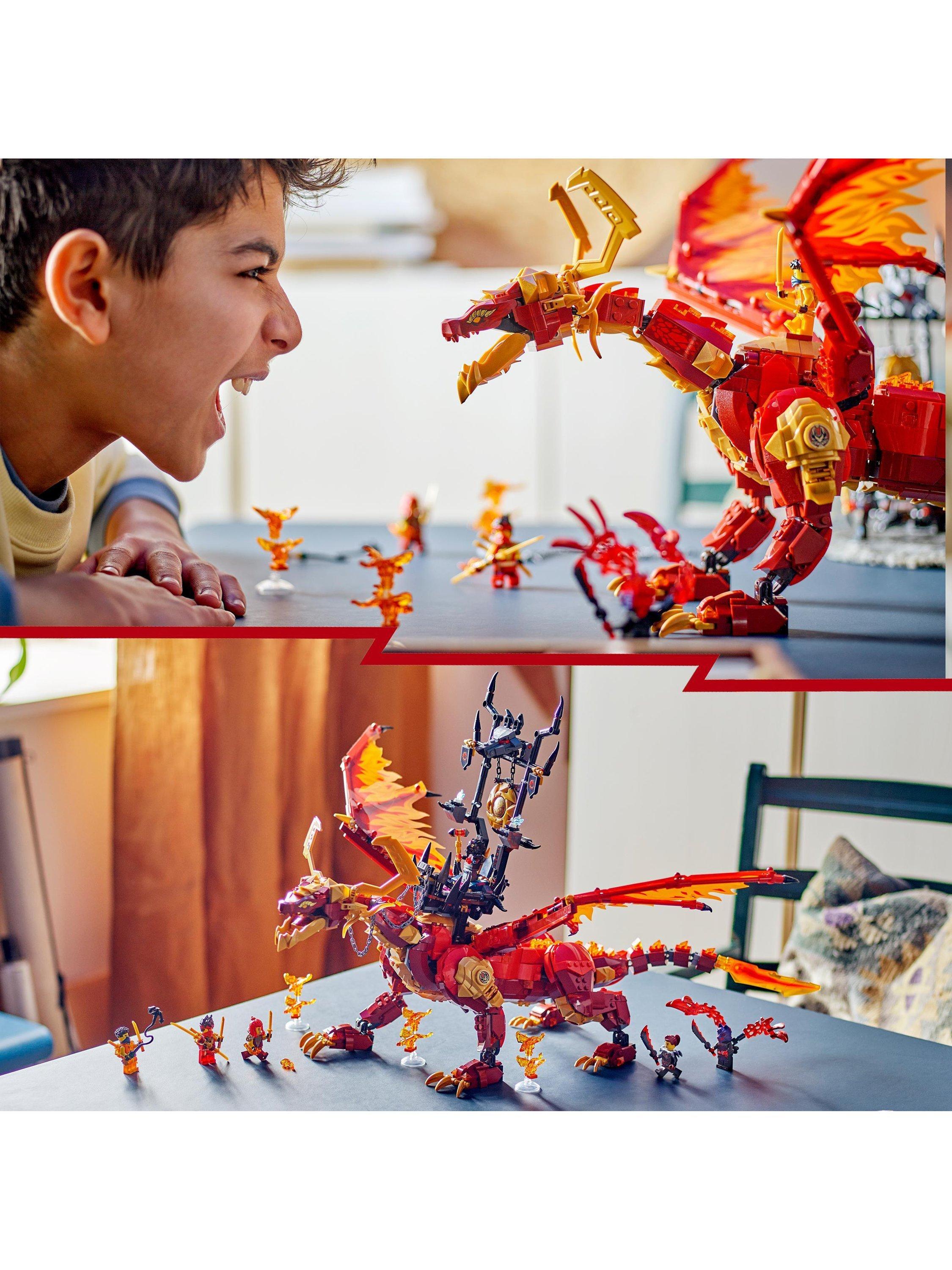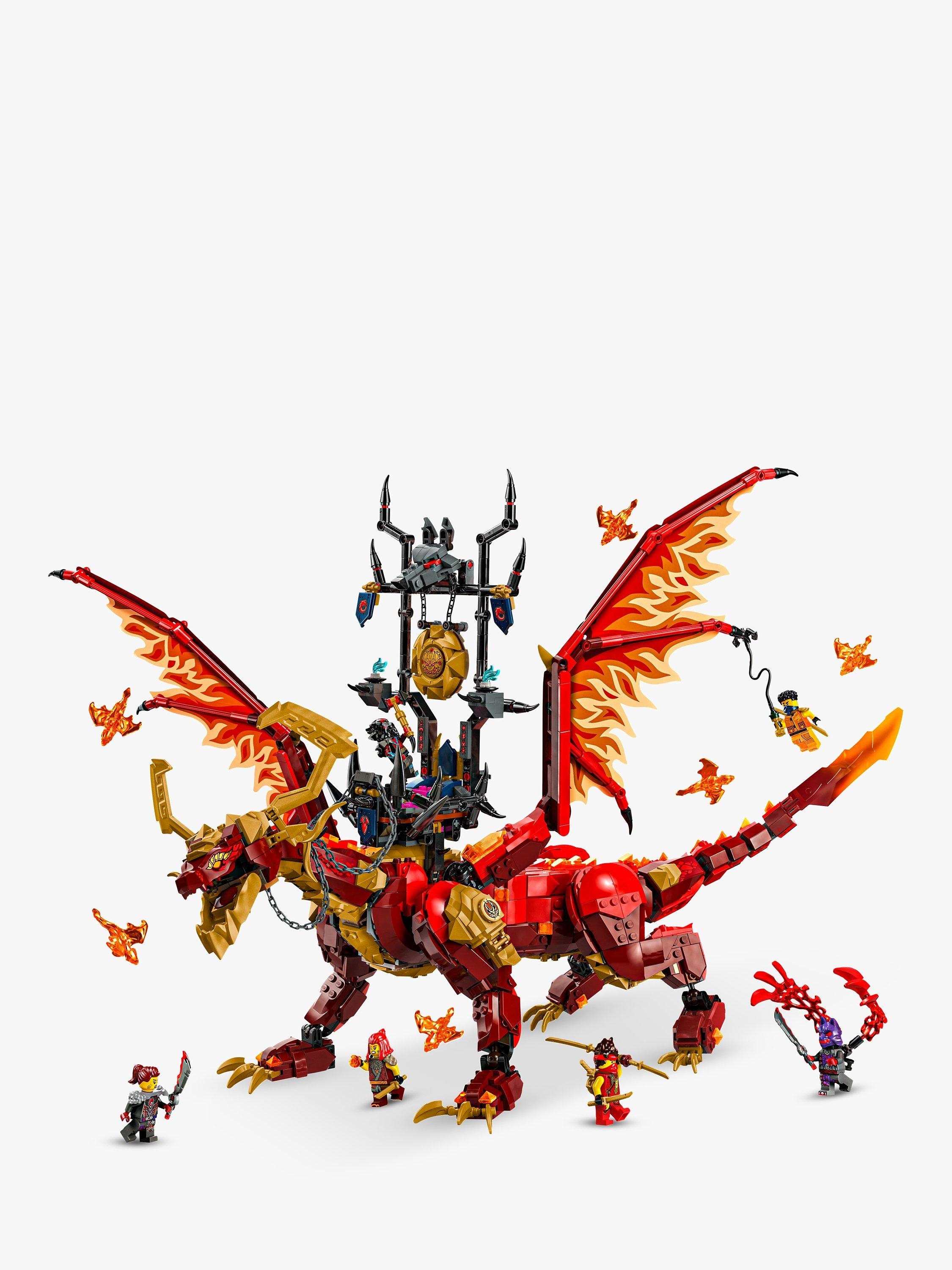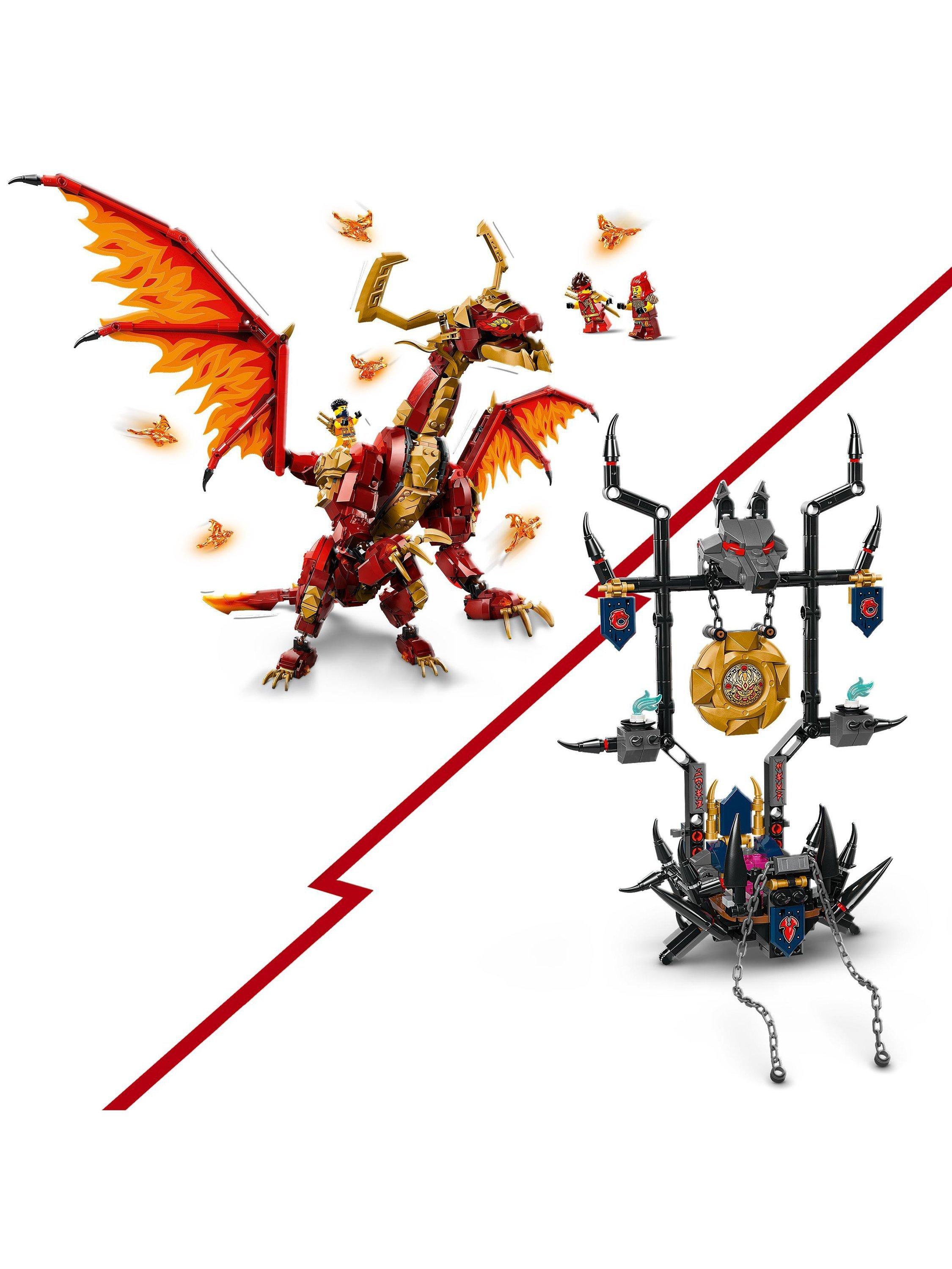 Join forces with the ninja as they attempt to rescue the Source Dragon of Motion! Get ready to launch a secret attack to free the dragon imprisoned by Lord Ras and his Wolf Mask Army. Kai and Arin, armed with their katana swords, and Wyldfyre with her flaming fists are ready to face off against these evil villains! They must triumph to save the NINJAGO® world!