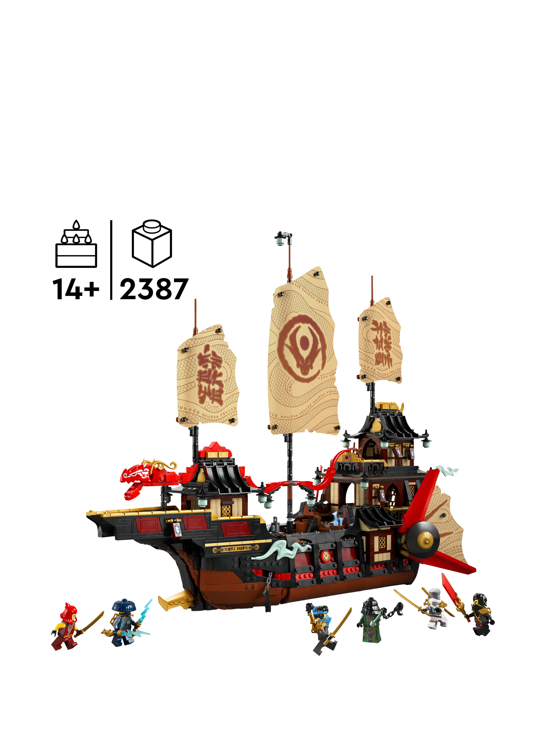 Older NINJAGO fans aged 14 and over will be thrilled to add The Temple Bounty (71848) boat toy for boys and girls to their collection of LEGO NINJAGO sets.