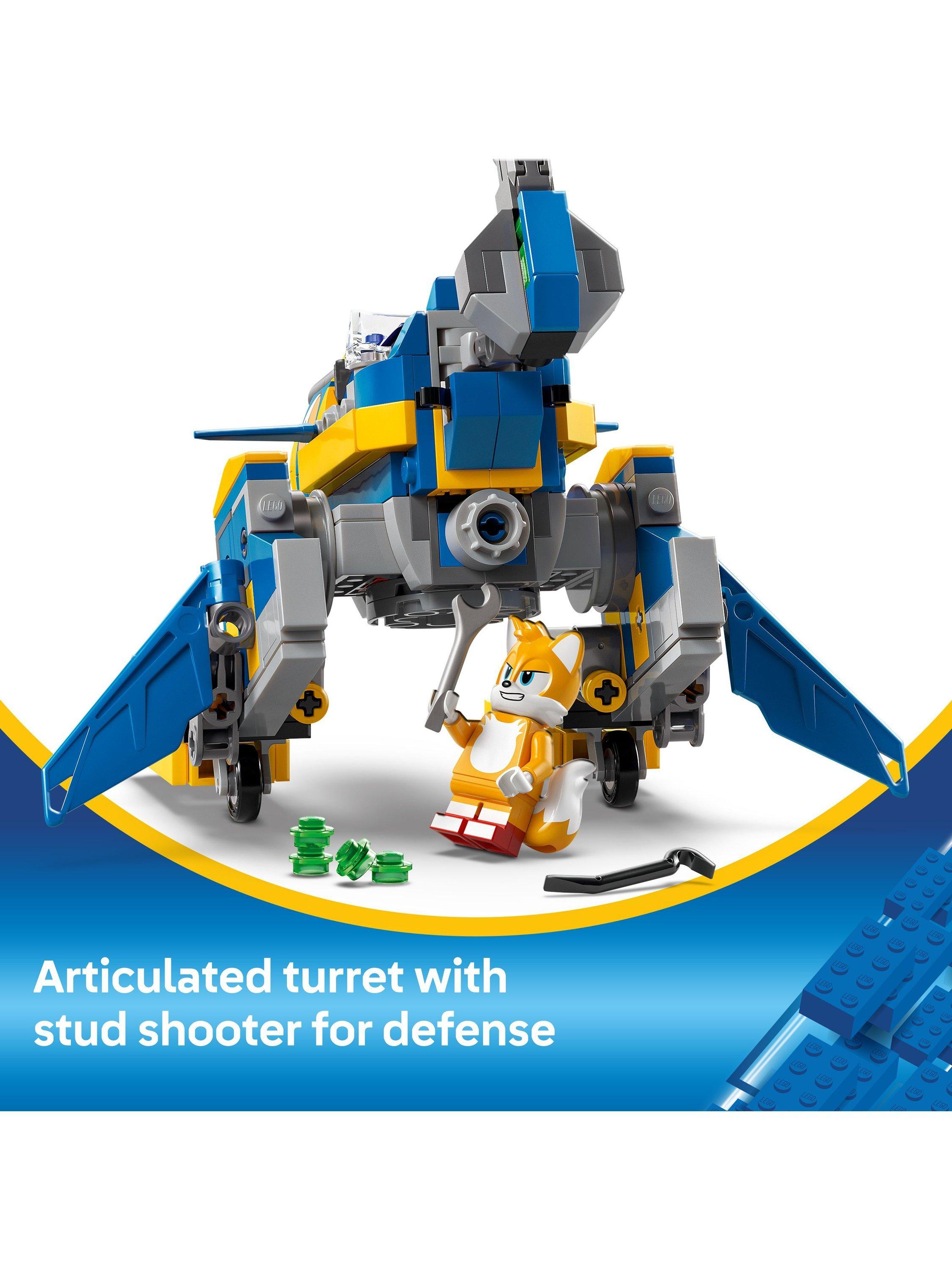This LEGO® Sonic the Hedgehog™ toy features a mech that has articulated legs and a turret with a stud shooter. Kids can turn the mech into a flying mech by folding the legs up and rotating them forwards, and there’s a set of tool accessories included for maintenance or repairs.