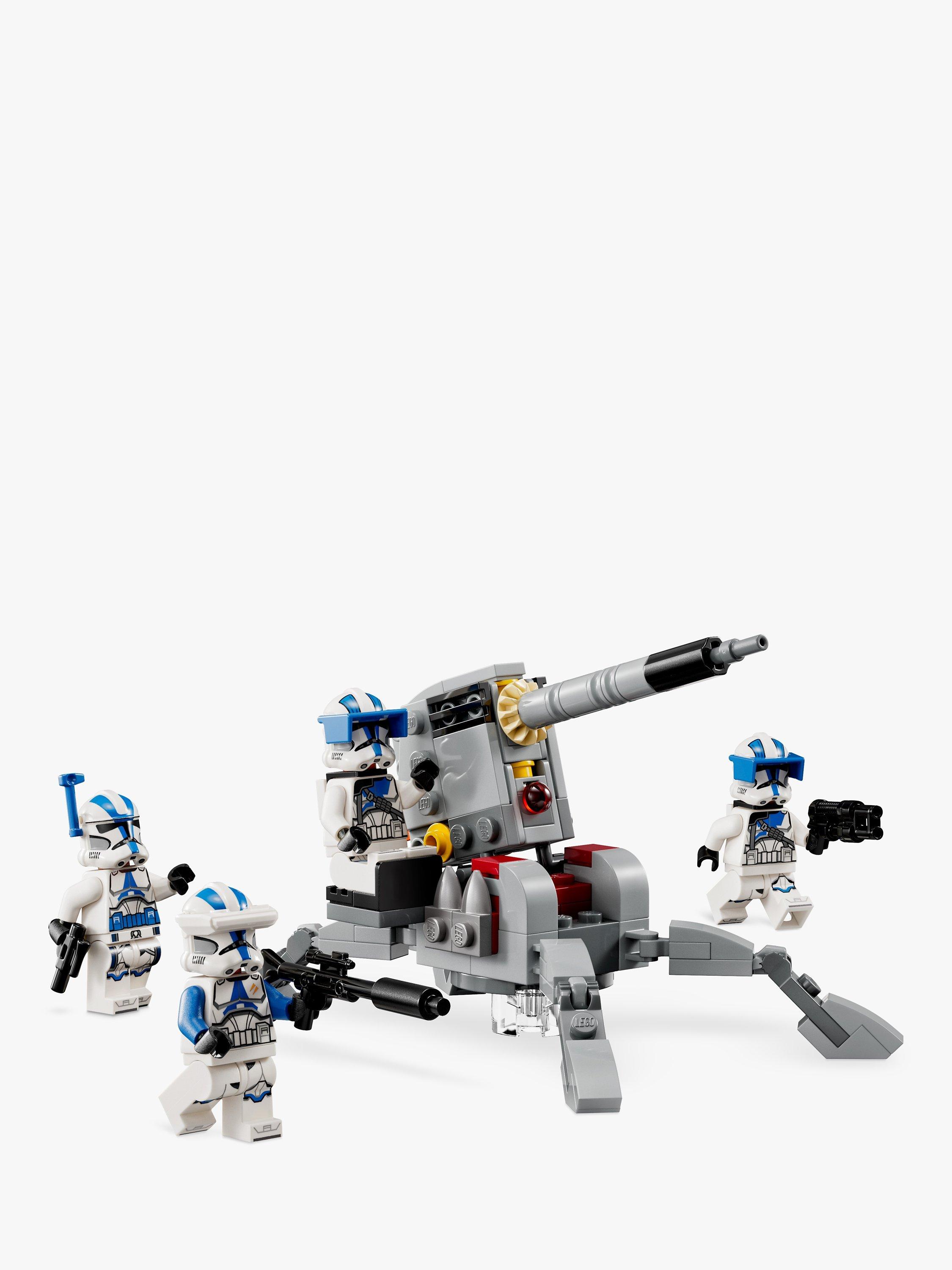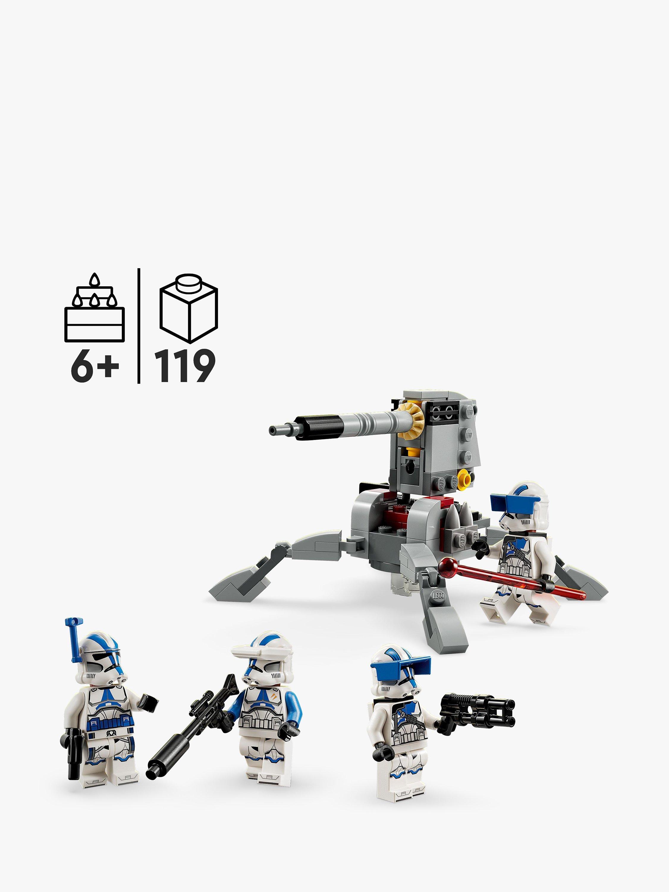 - Contains 119 pieces and comes with 4 minifigures - A 501st Officer with a blaster pistol, a 501st Clone Specialist with a blaster rifle and 2 501st Heavy Troopers, each with a blaster