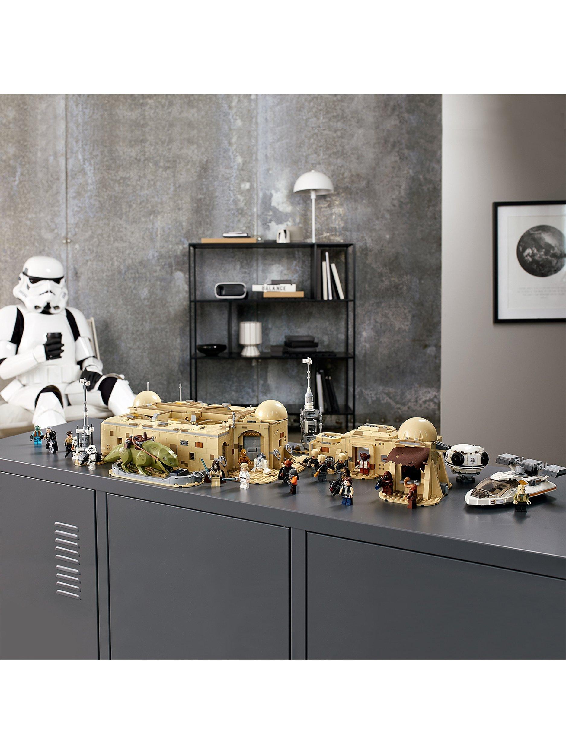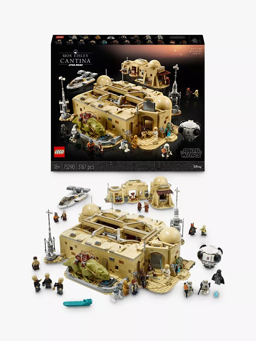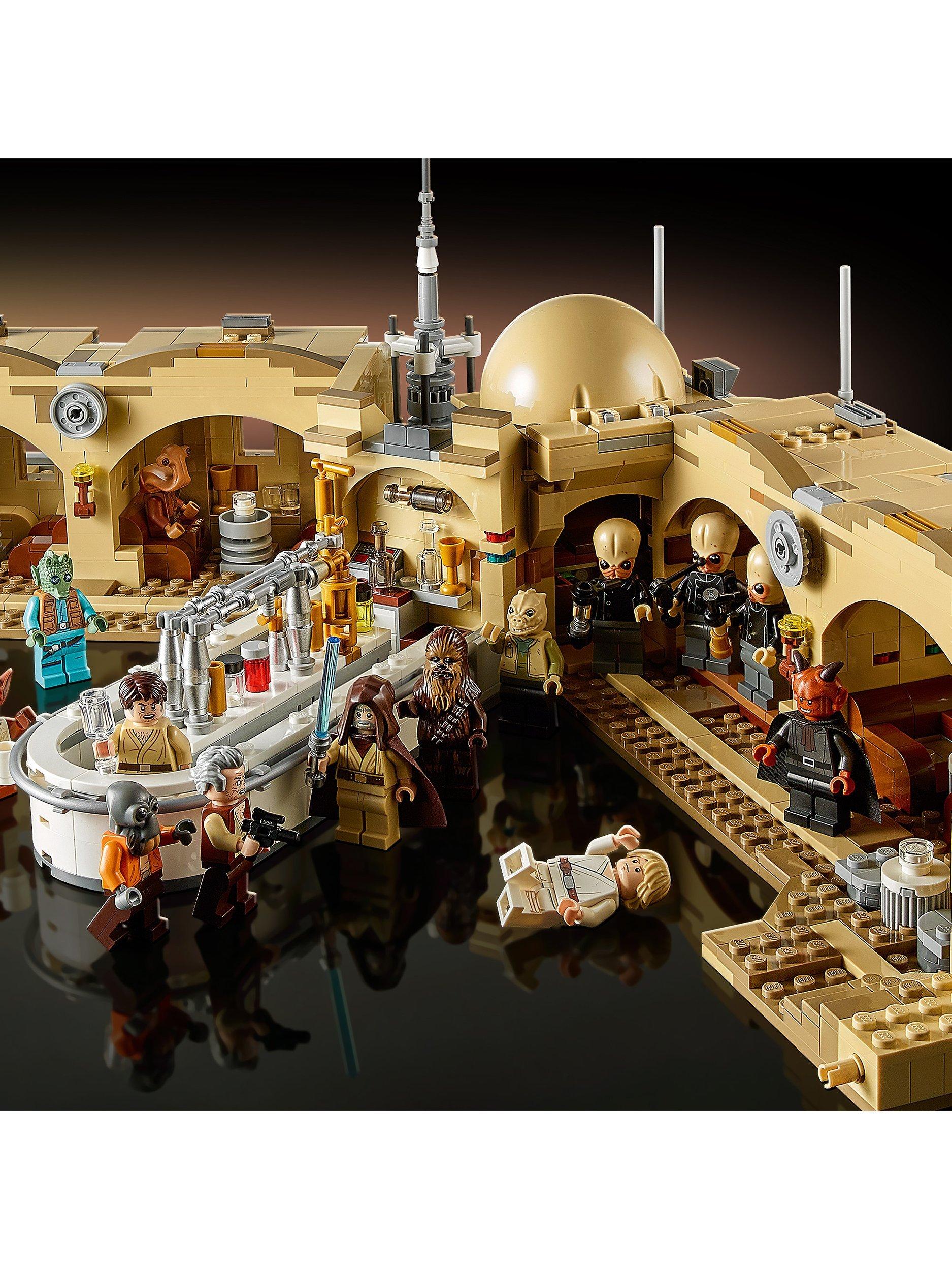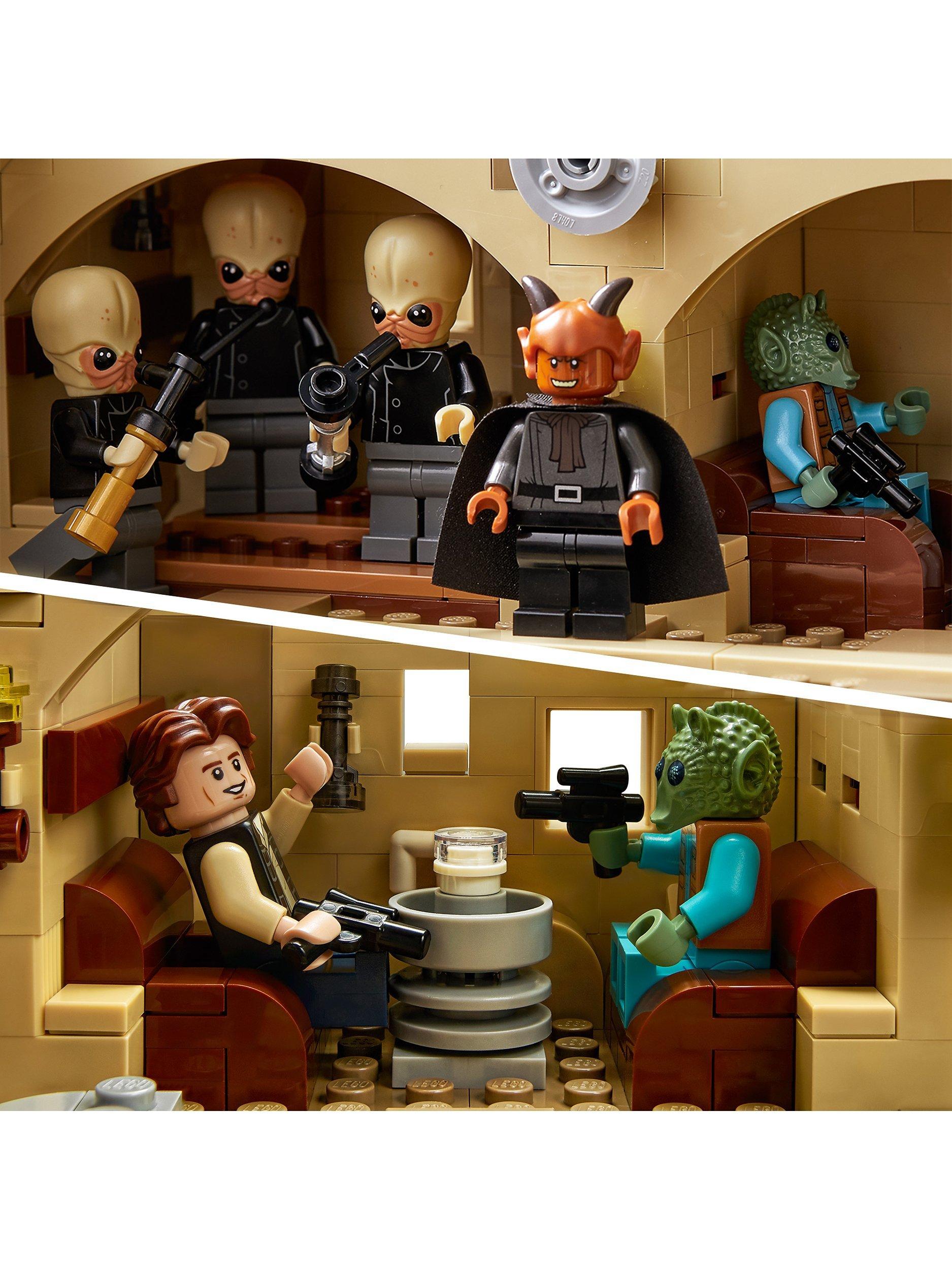 - Contains 3187 pieces and includes 21 LEGO® minifigures, including Chewbacca, Obi-Wan Kenobi, Ponda Baba, Garindan and Labria, plus an R2-D2 LEGO droid figure and a Dewback LEGO figure to bring the Tatooine tavern to life