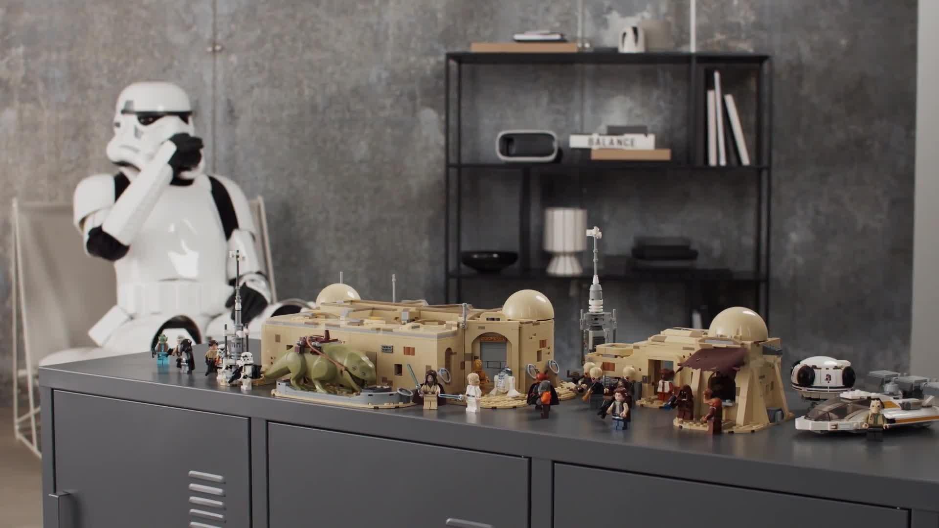 In the words of Obi-Wan Kenobi™, the Mos Eisley Cantina™ may be filled with danger, but it’s also an epic build that takes fans back to one of the classic moments in the Star Wars™ saga. Introduced in Star Wars: A New Hope, the Cantina is the hub of underworld activity in the Tatooine spaceport of Mos Eisley, filled with smugglers and bounty hunters making deals and starting trouble.