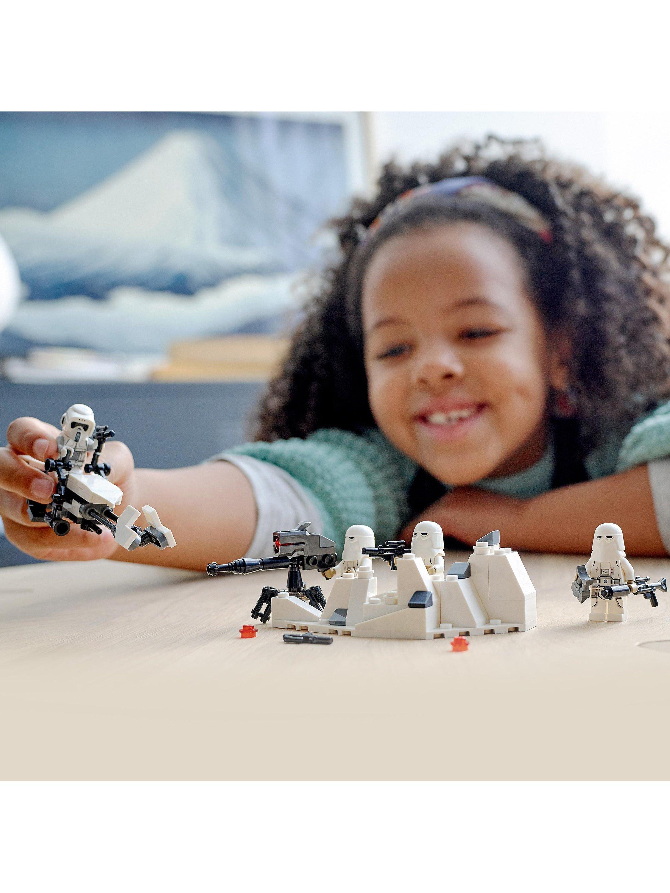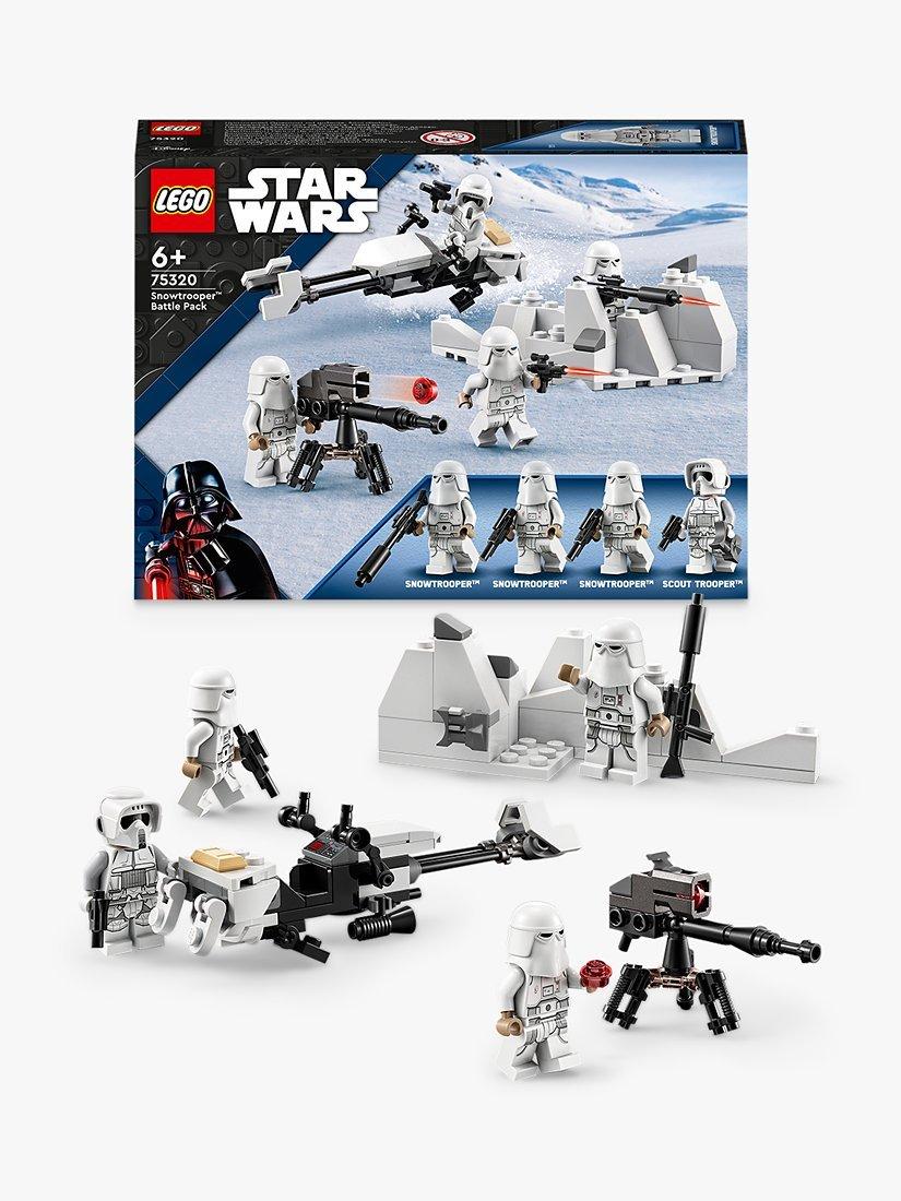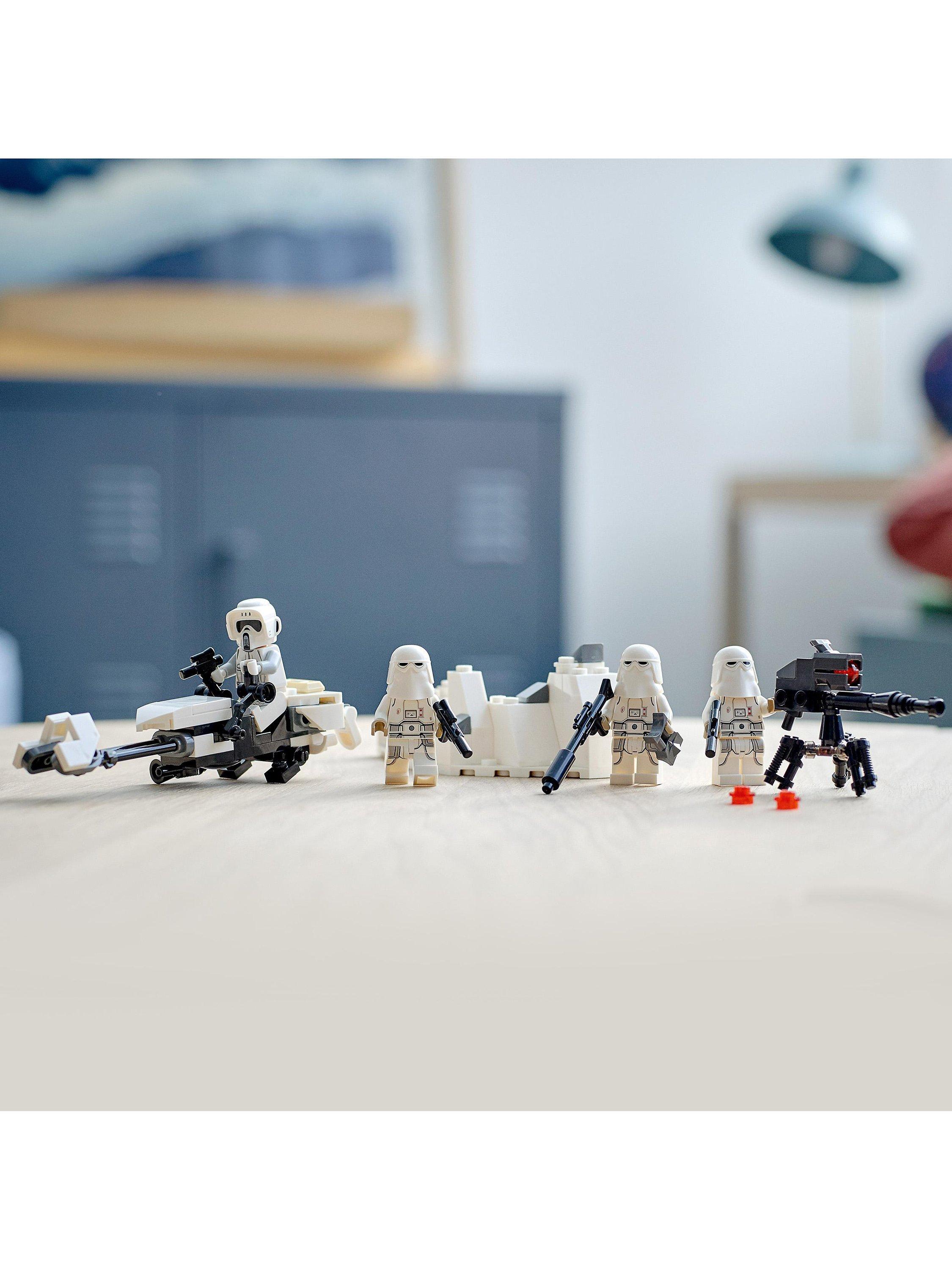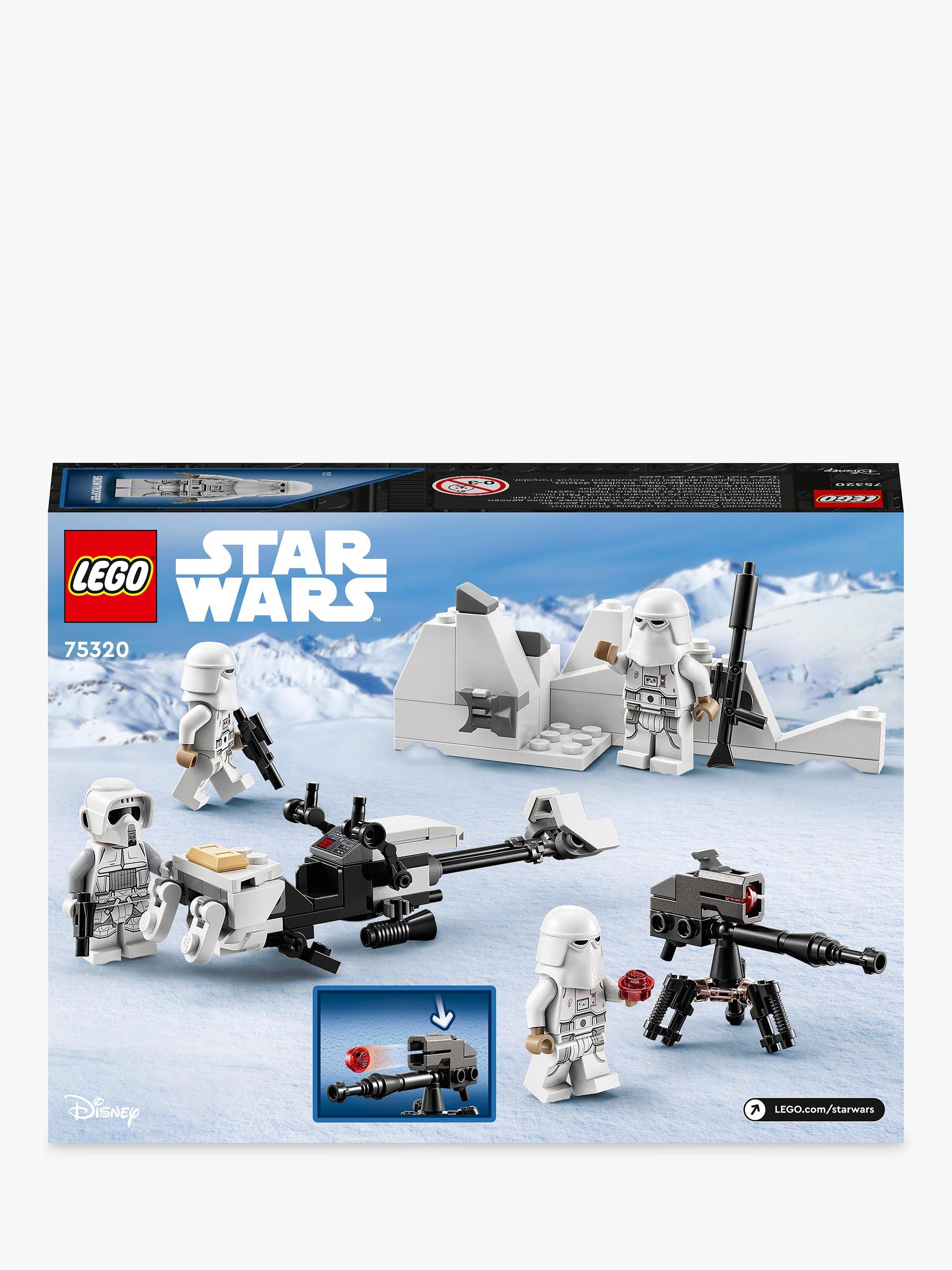 - Contains 105 pieces and comes with a Hoth Scout Trooper and 3 Snowtroopers, plus 2 blaster guns, a blaster rifle and blaster pistol