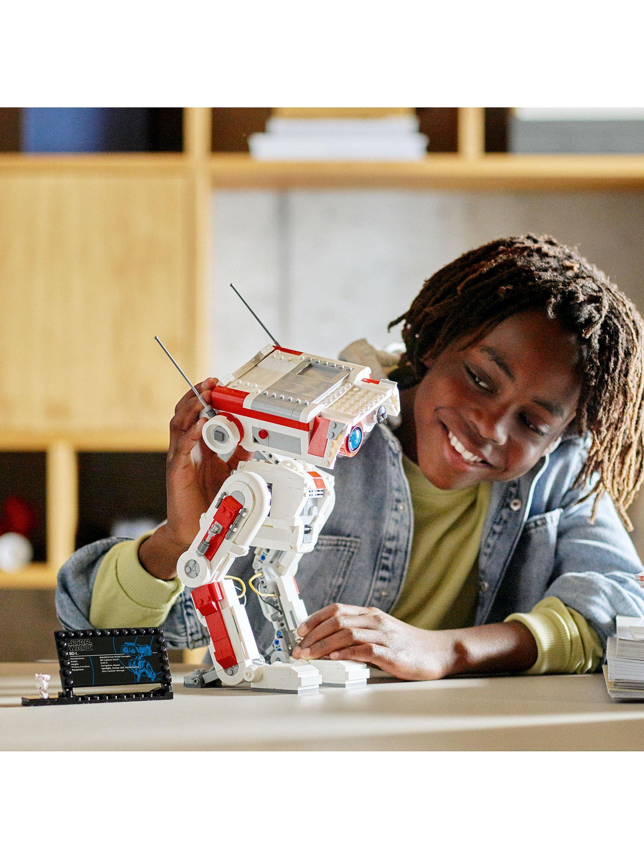 Build your own posable brick-built model of BD-1 from Star Wars Jedi: Fallen Order! Capture authentic details of the little droid helper in LEGO brick style and tilt the head different ways to recreate its cute looks. Add the information sign with the small BD-1 LEGO figure to complete a fantastic display piece.