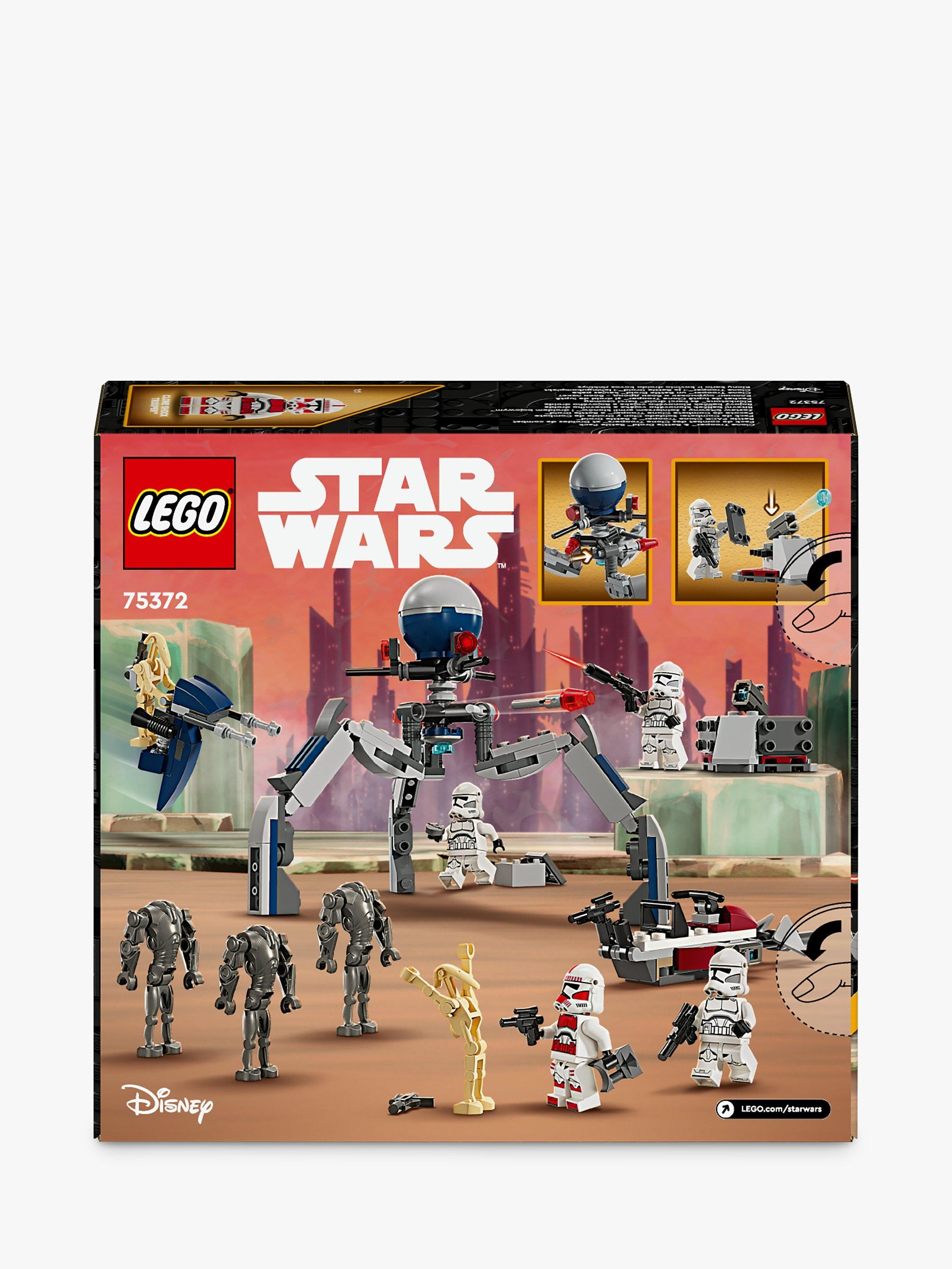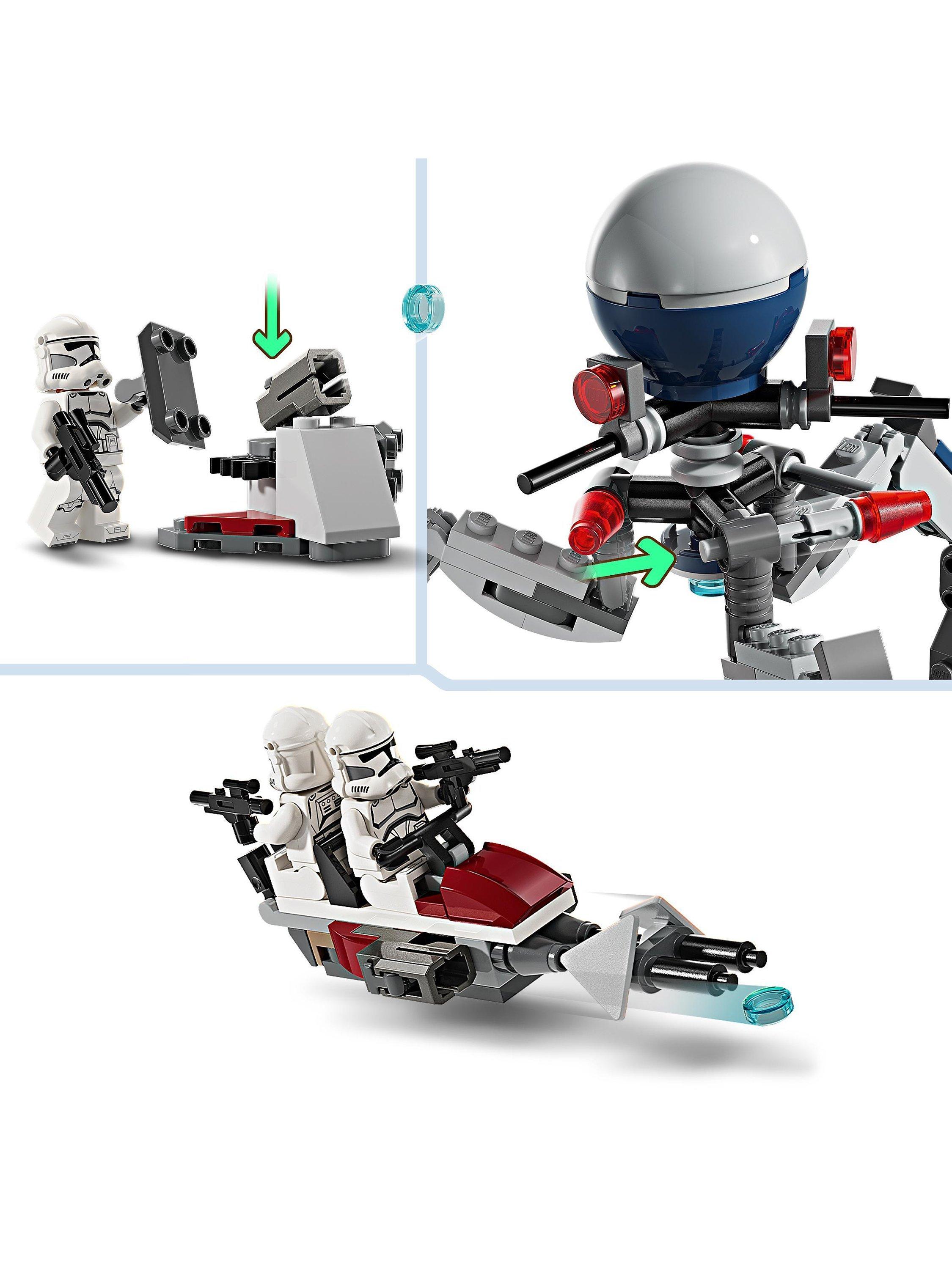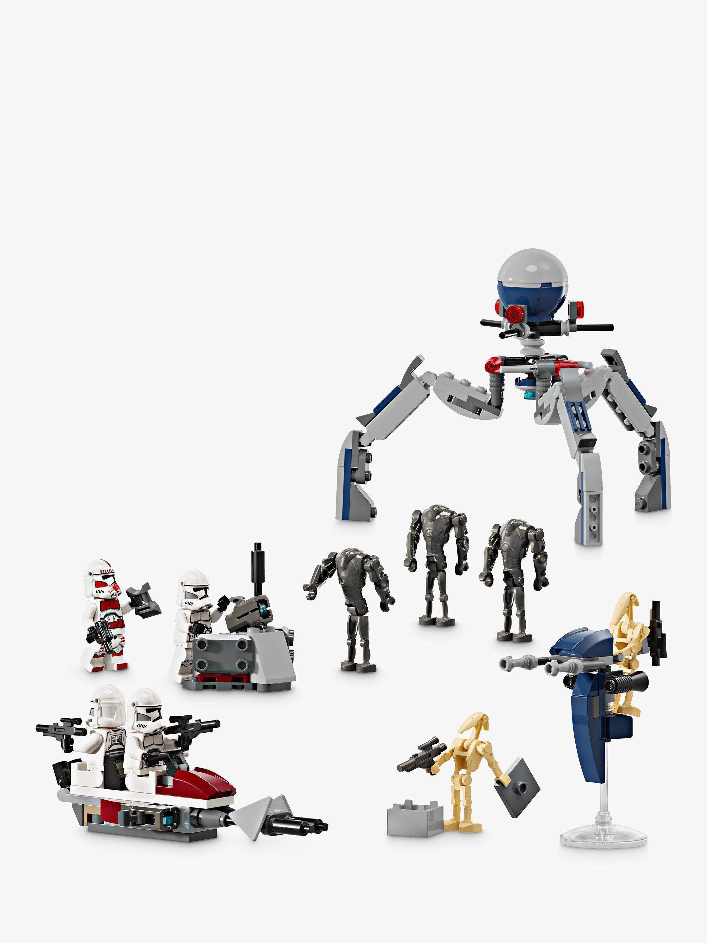 - Set includes 4 LEGO® Star Wars™ minifigures and 5 LEGO figures for action play – A Clone Shock Trooper, 3 Clone Troopers, 3 Super Battle Droids and 2 Battle Droids