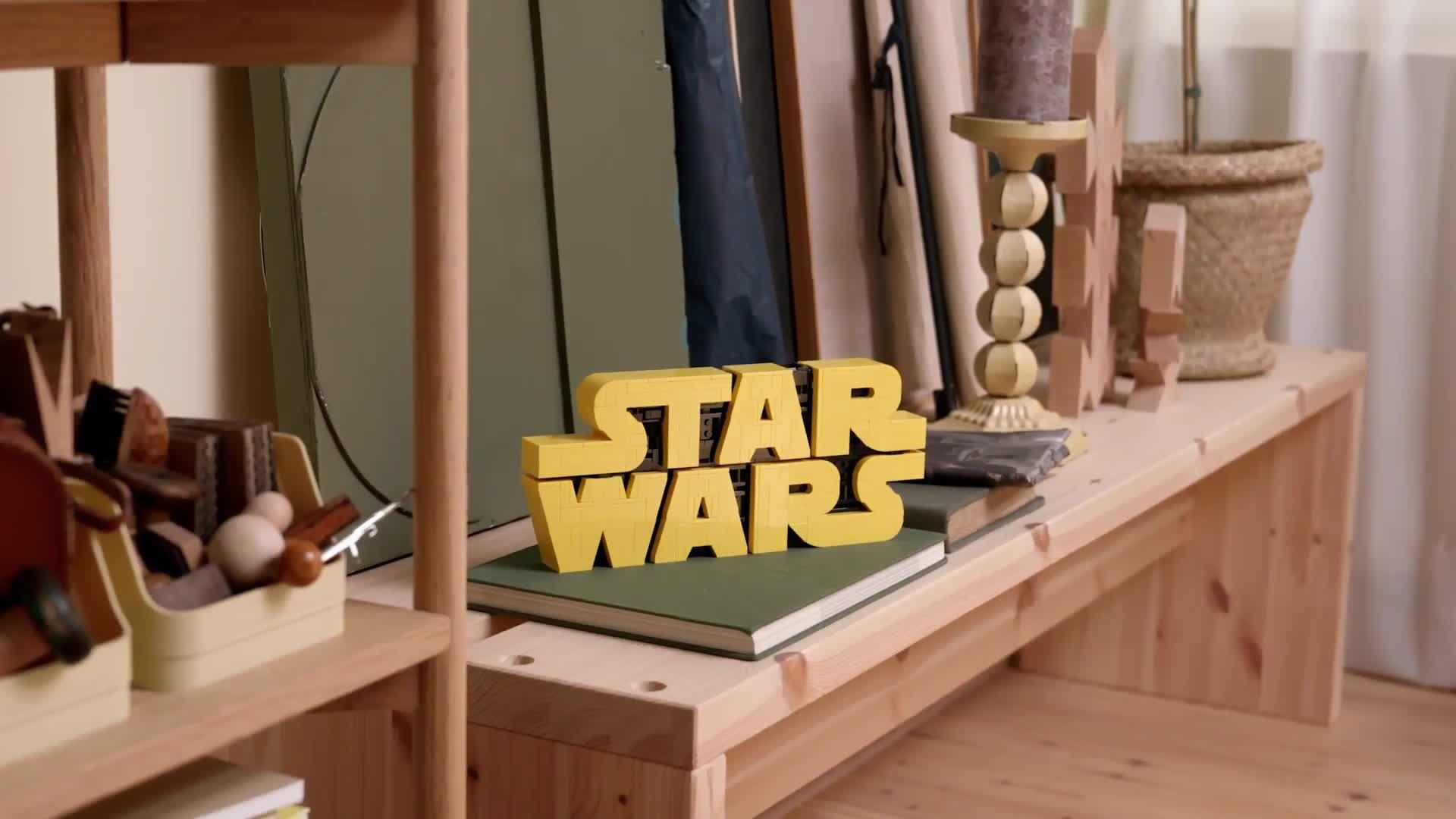 Take time out with this model kit and indulge your fandom with a fun, rewarding creative project. Capture the smooth contours of each yellow letter and apply classic LEGO greebling details to the black areas between the letters. And look out for a delightful surprise hidden inside the 'T' of Star Wars.