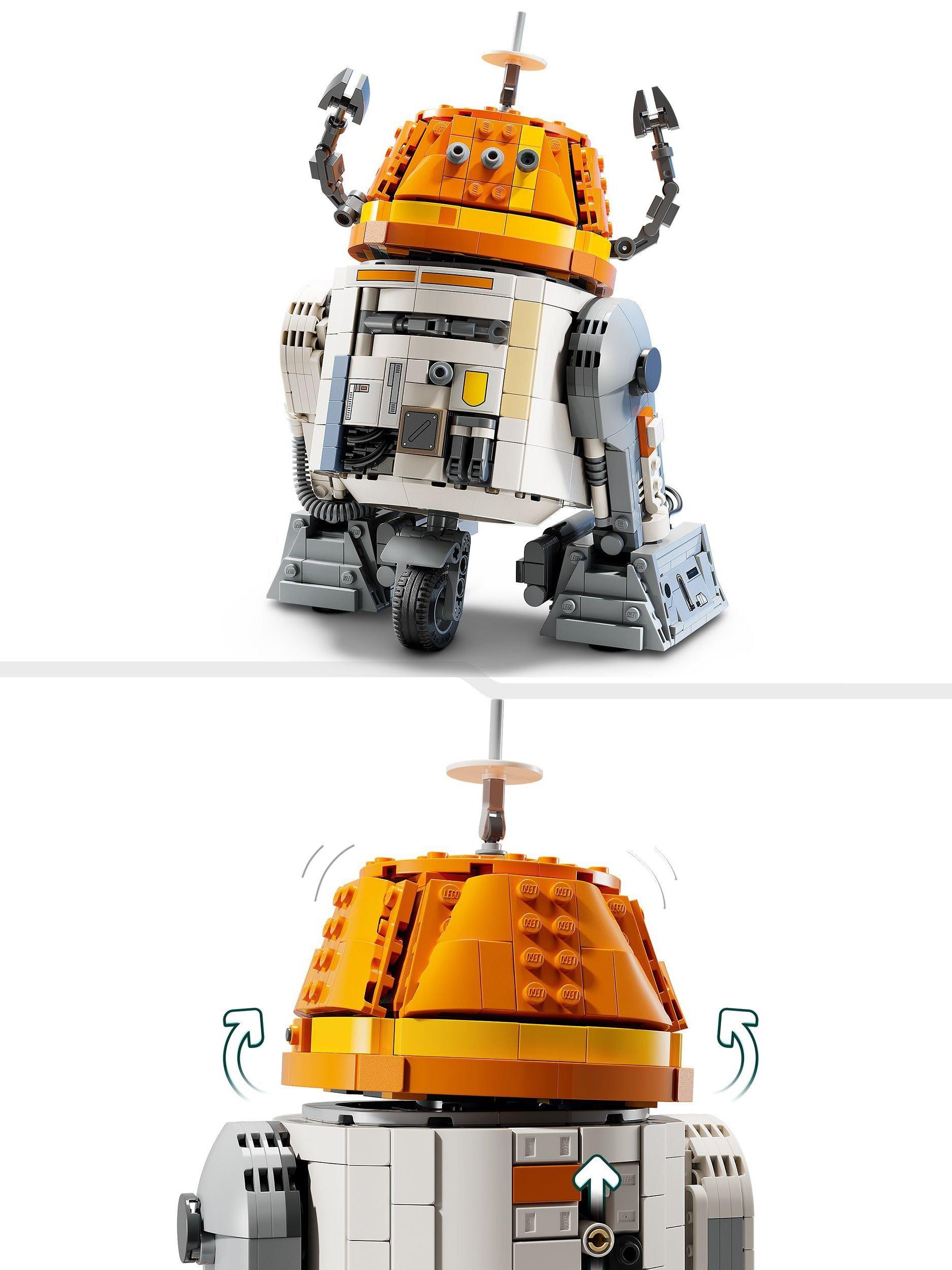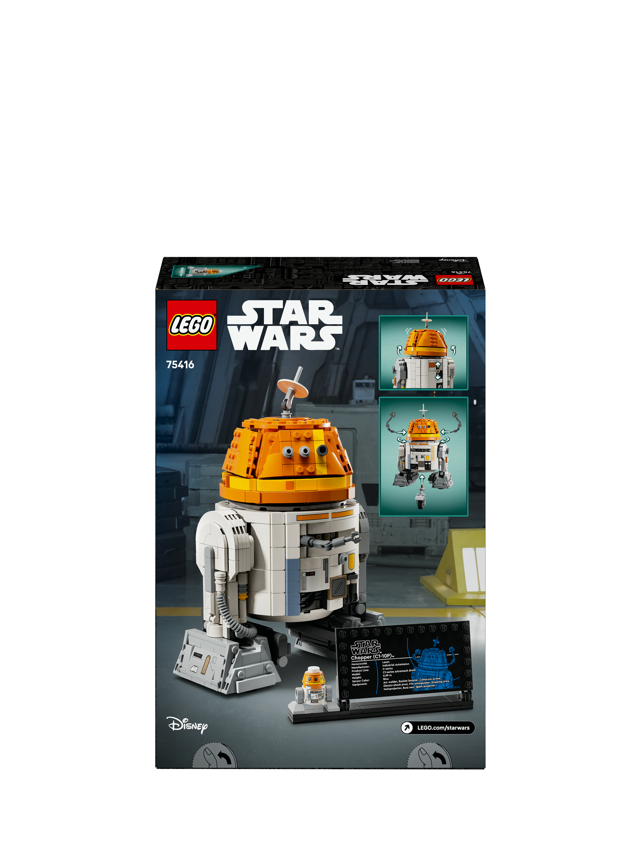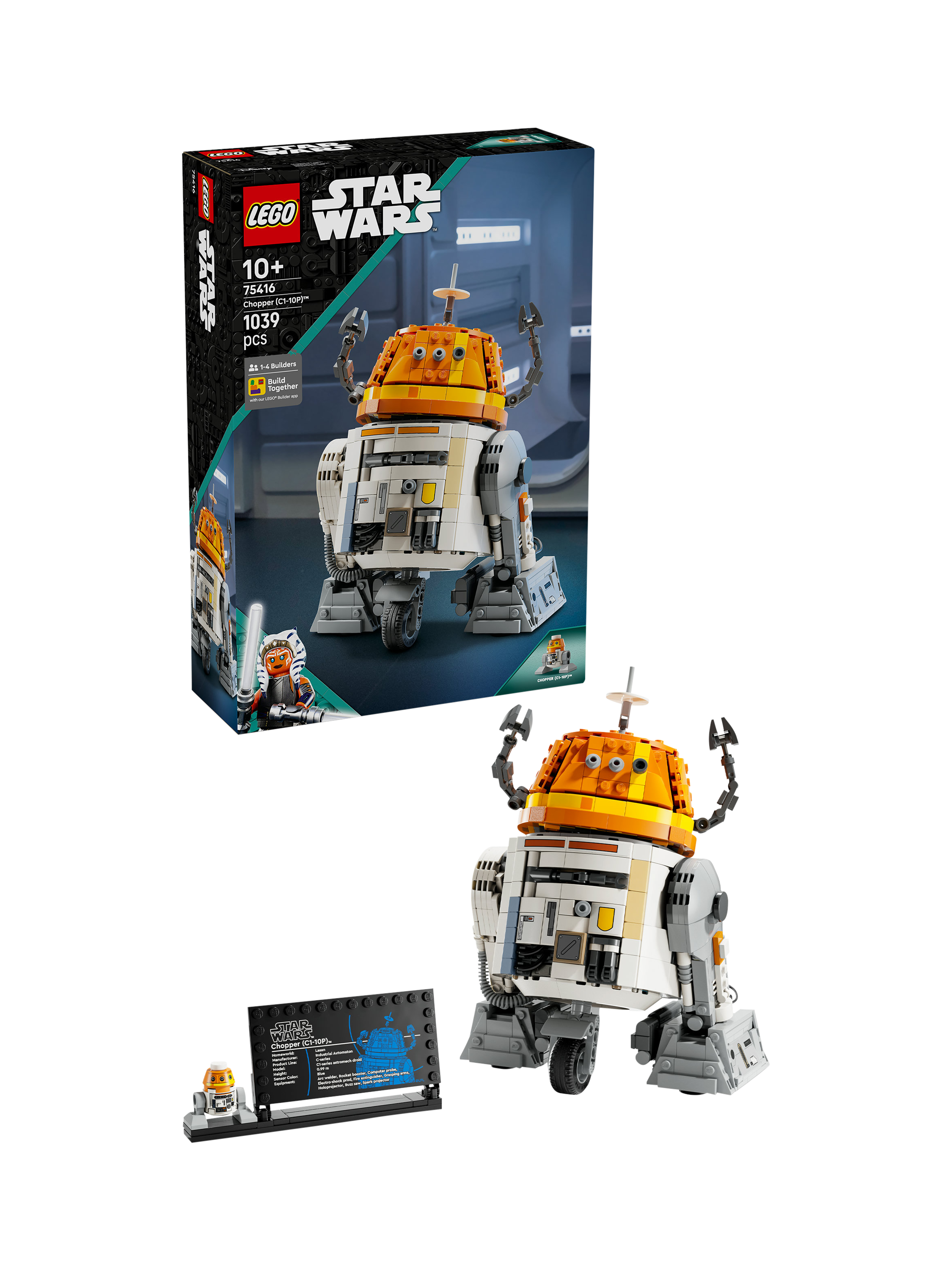 Create a playful display featuring lovable astromech droid Chopper (C1-10P) with this LEGO Star Wars building toy for 10+ year olds (75416). This buildable set of Chopper, as seen in Star Wars: Ahsoka, has lots of realistic details. Move the lever on the back of the Star Wars figure to remotely activate his iconic head movements, pose his arms and legs, fold out a tool from his chest, and more. Chopper’s arms and his centre wheel are detachable, so he can be displayed as if his arms and wheel have been retracted into his body.