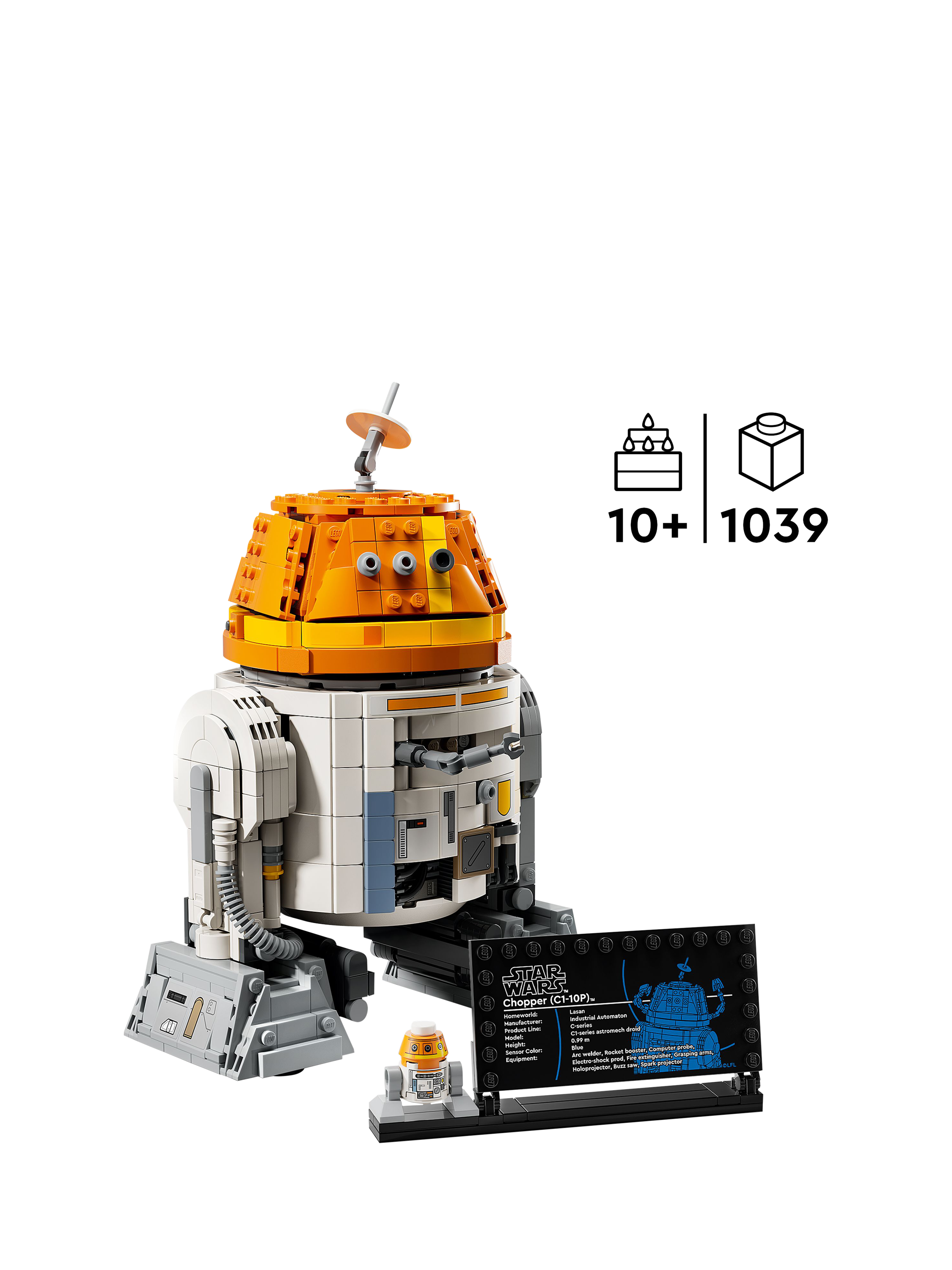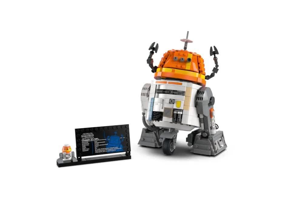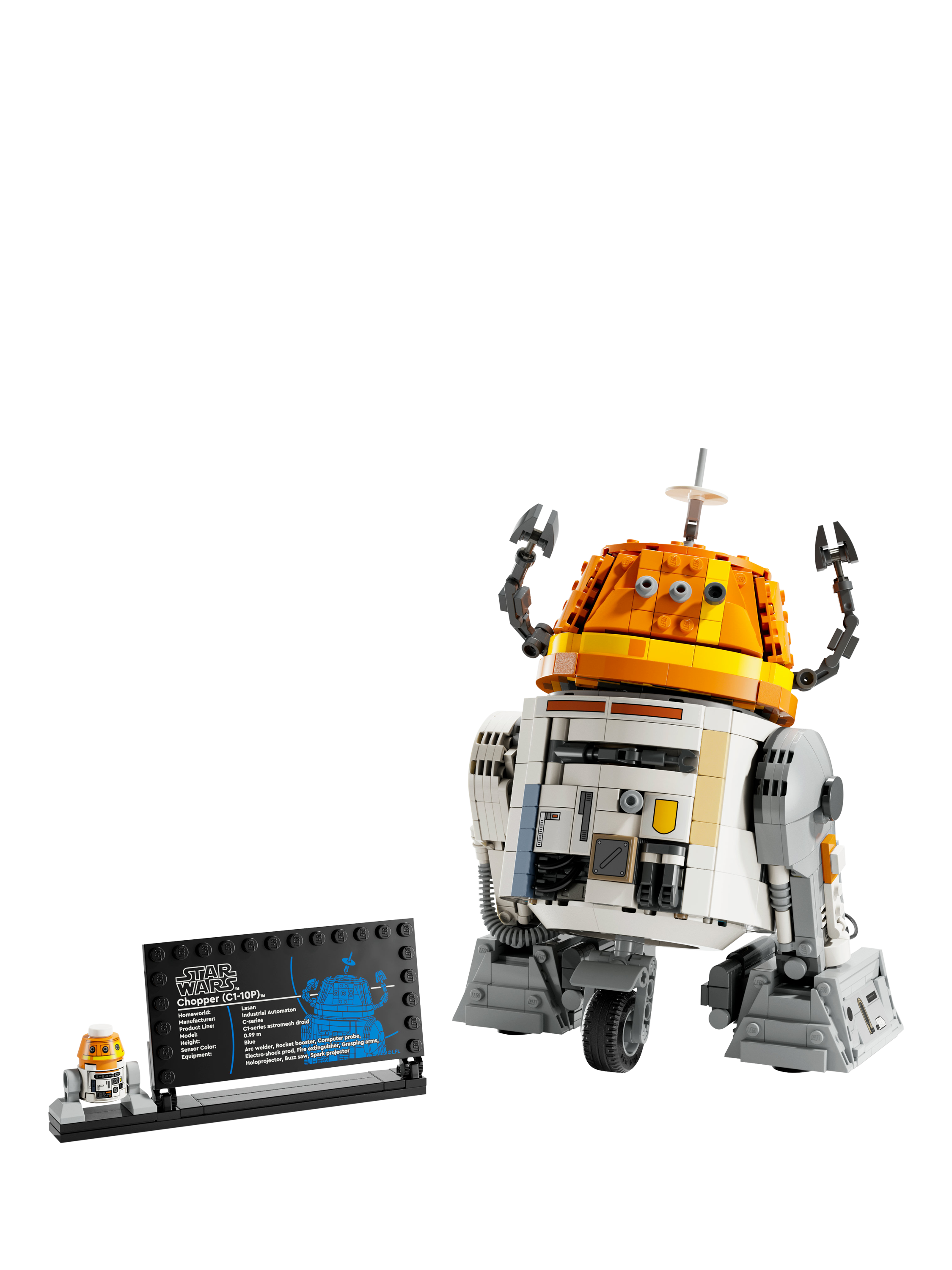 This collectible LEGO Star Wars set is complemented by a standard-size Chopper LEGO Star Wars droid figure, which can be placed on the stand next to the Chopper information plaque to complete an eye-catching centrepiece.