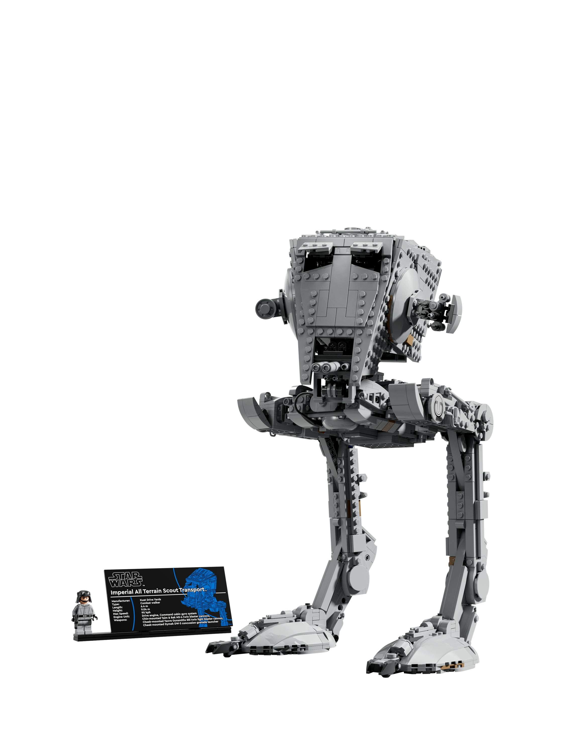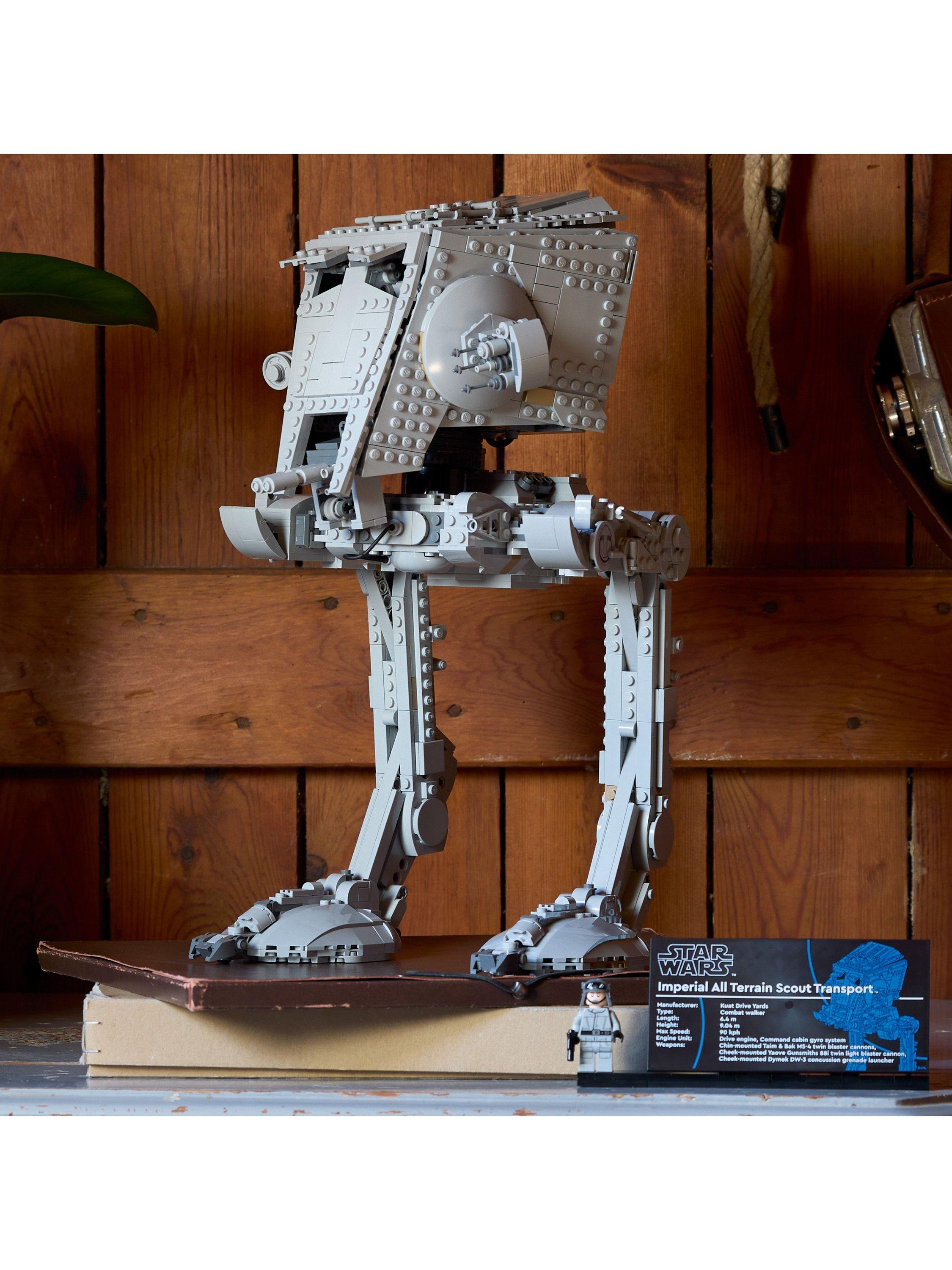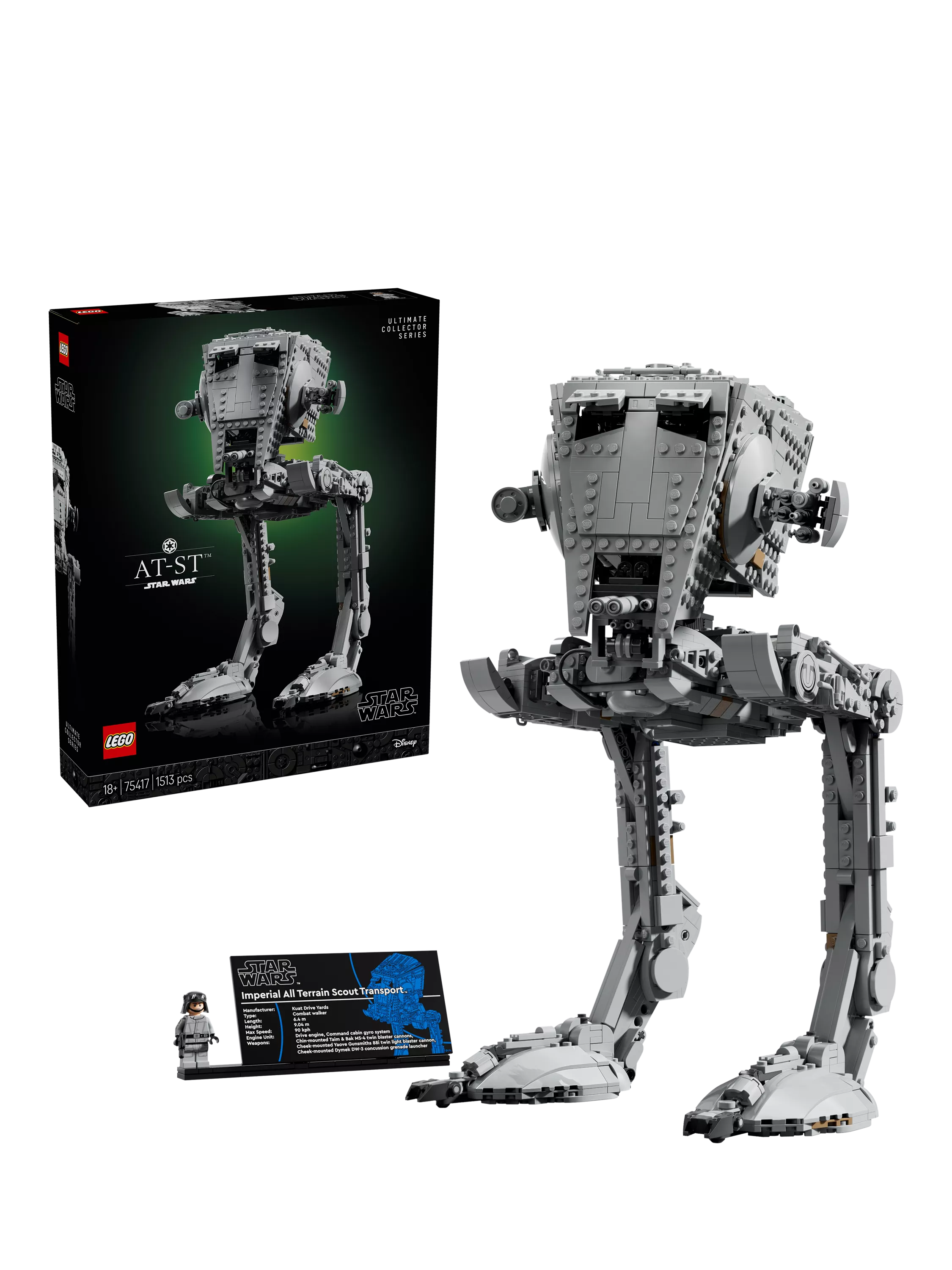 Inspire memories of the epic battles of Endor with the LEGO Star Wars Ultimate Collector Series AT-ST Walker building set for adults (75417). A great Star Wars gift for adults, this build-and-display model captures many authentic features of the All Terrain Scout Transport vehicle, from its distinctive legs to the top hatch, which opens to reveal the highly detailed two-person cockpit.
