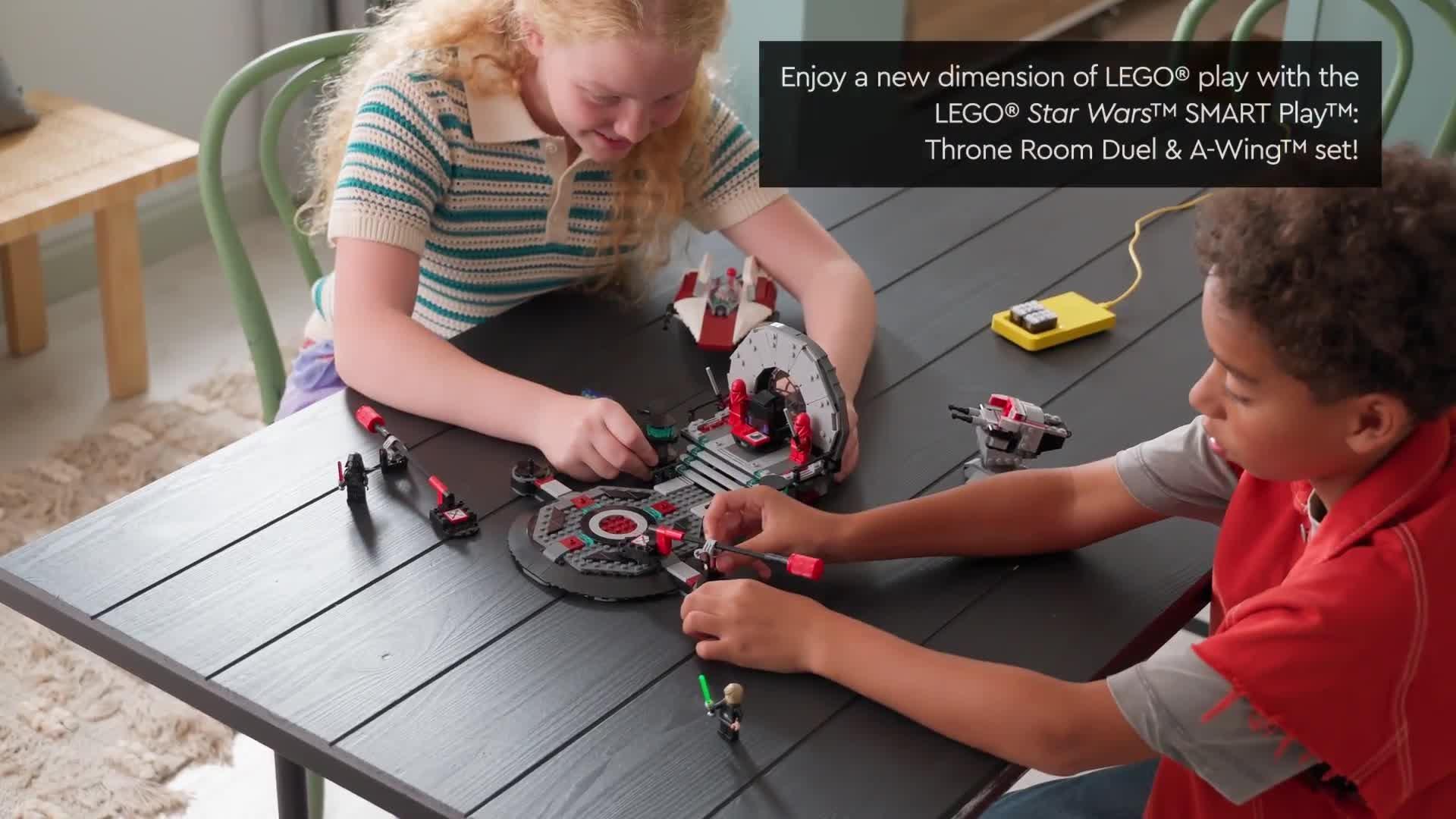 Relive Star Wars: Return of the Jedi action with this Throne Room Duel & A-Wing all-in-one set, powered by the LEGO SMART Play system, with two SMART Bricks and a charger.