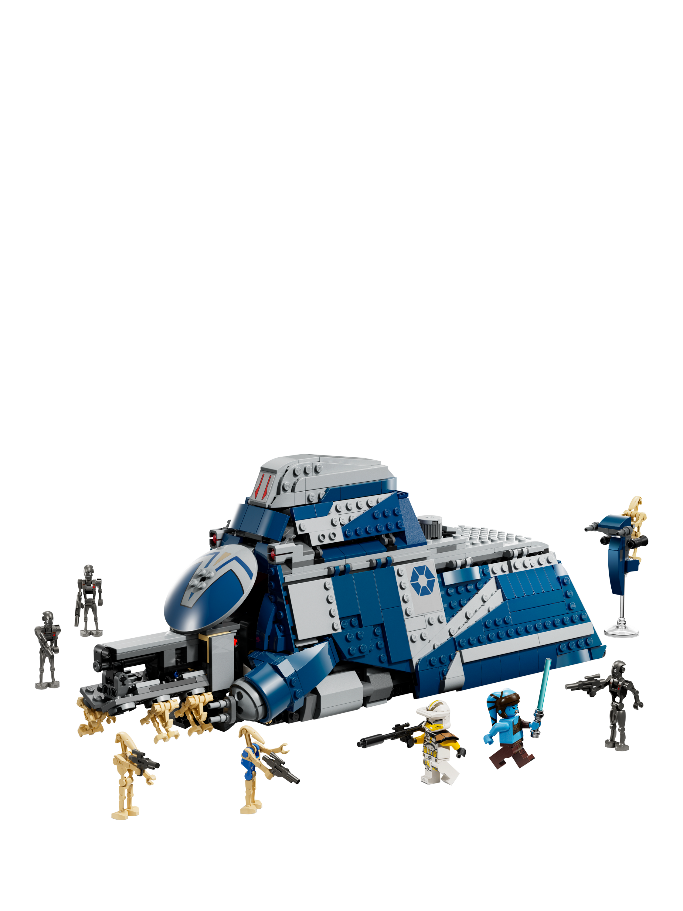 This buildable Star Wars™ vehicle has lots of authentic details to inspire creative play, including a droid-deployment rack that pushes out through the front hatch at the turn of a knob. The MTT also has fold-up side panels for easy access to the detailed interior, a pilot cockpit, a STAP speeder stowed in the rear compartment, two stud shooters and hidden wheels for smooth movement across flat surfaces. Display this awesome vehicle as fantasy decor between playtime adventures.