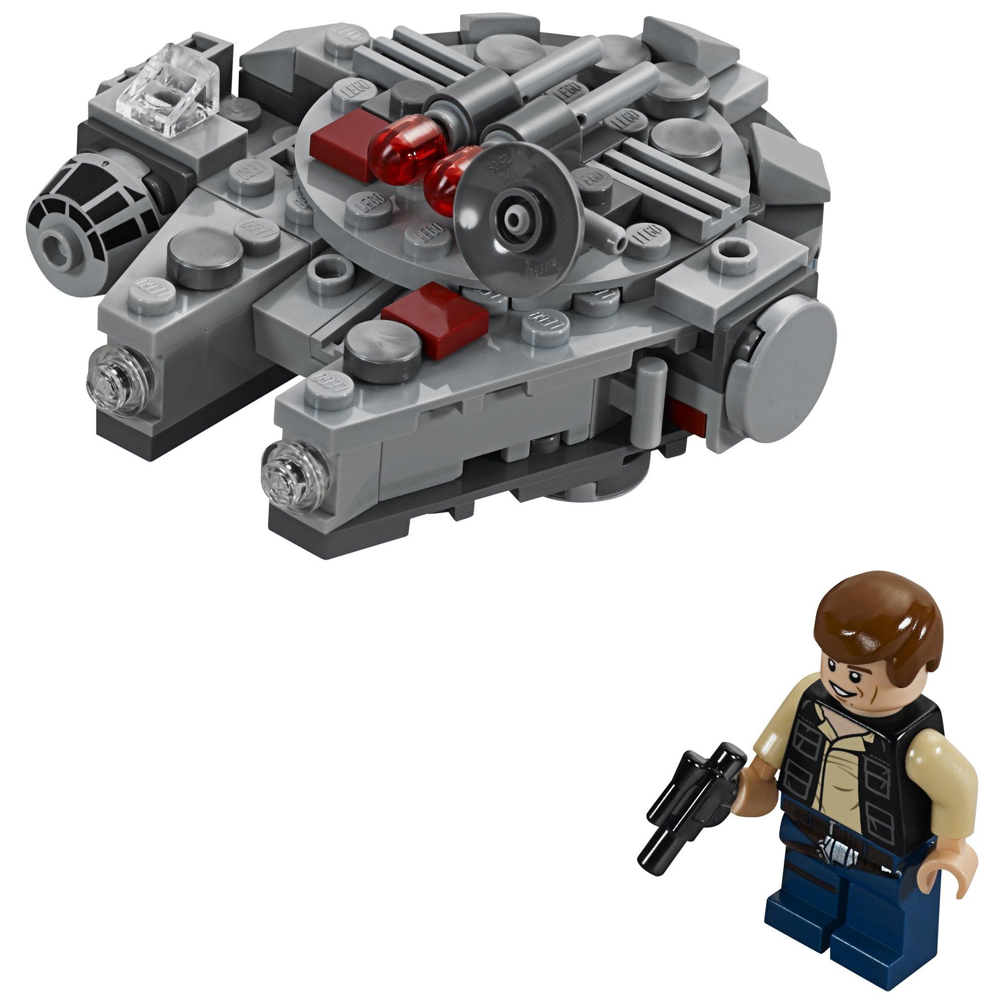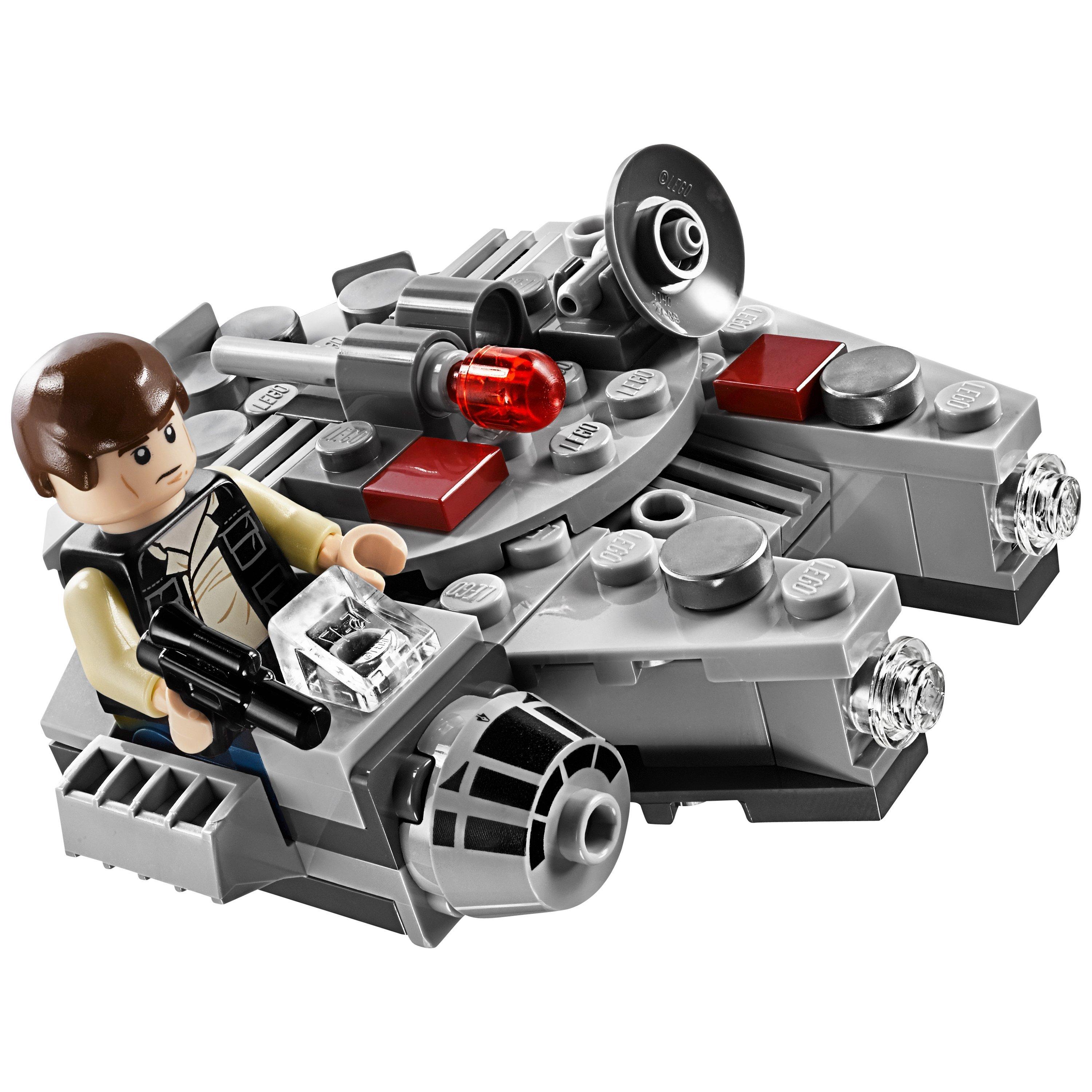 Enter the mini LEGO Star Wars universe with the Millennium Falcon Microfighter. This fun mini version of the fastest ship in the galaxy features a quad laser cannon with 2 flick missiles and a mini cockpit on top for Han Solo to sit in.