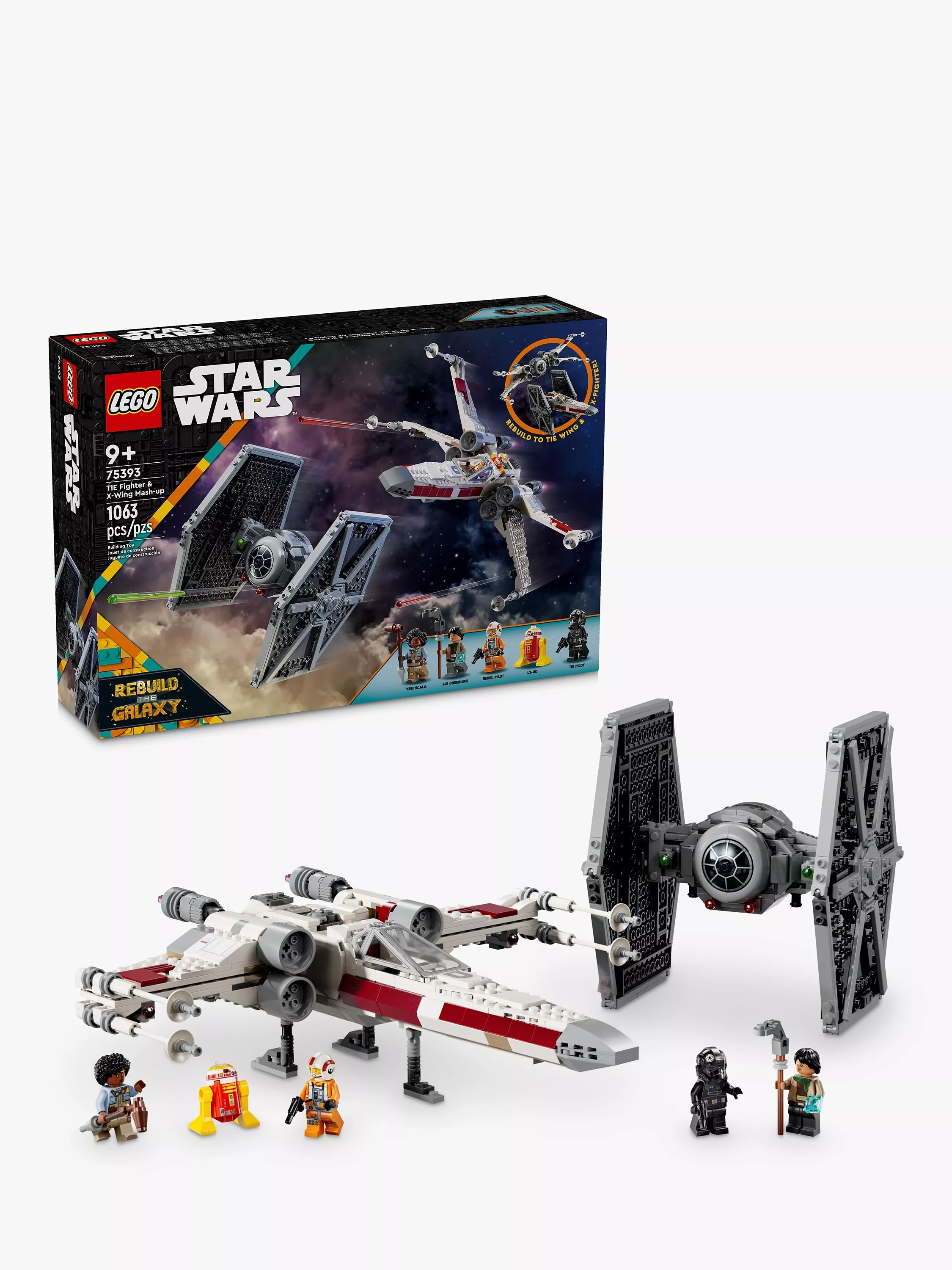 Recreate mash-up starfighters from the LEGO® Star Wars™: Rebuild the Galaxy Disney+ special with this TIE Fighter & X-Wing Mash-up (75393) buildable toy playset for kids.
