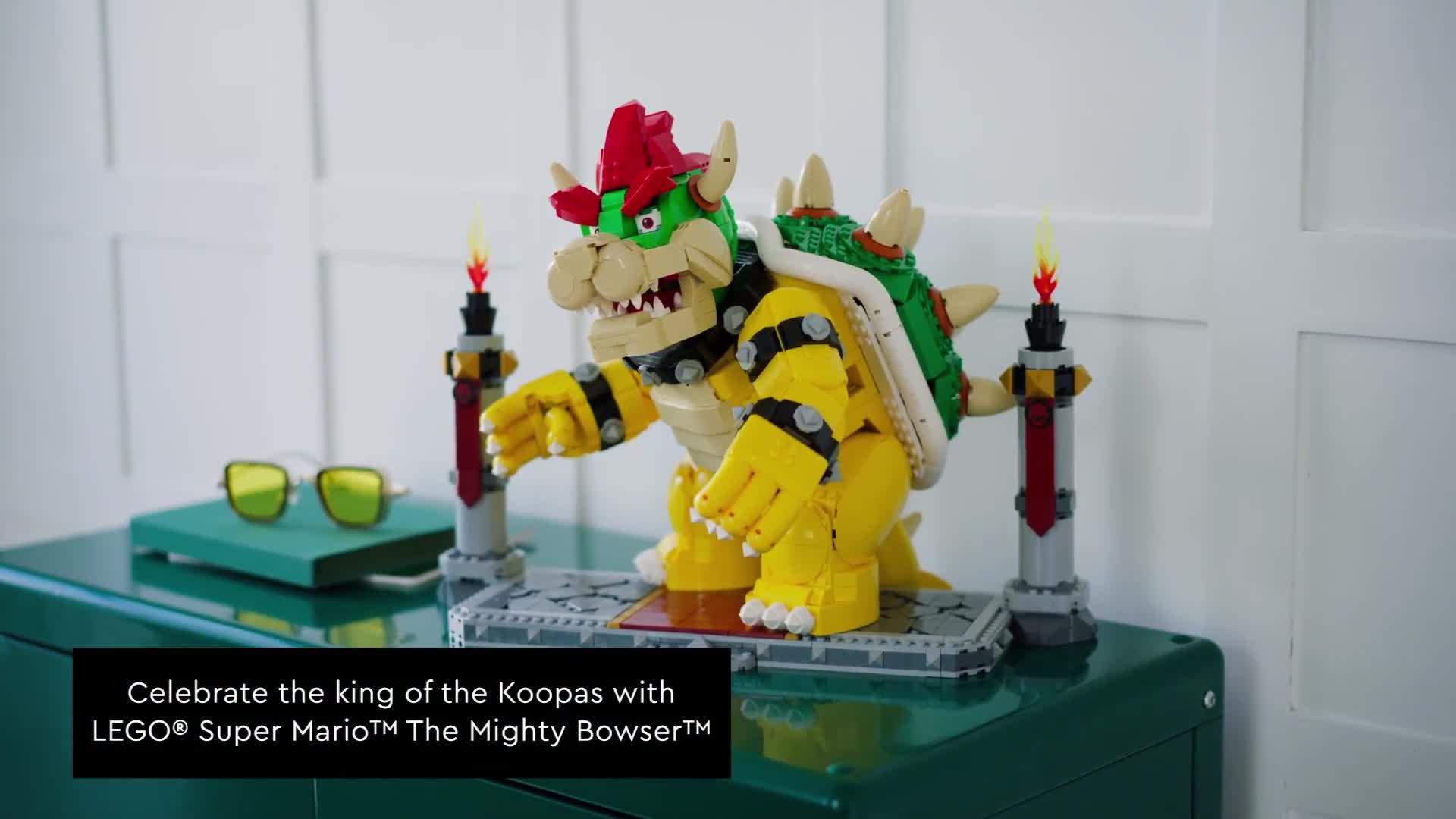 Build, play and display with the king of the Koopas! Control The Mighty Bowser’s head and neck movements and activate the fireball launcher. Display the model on the battle platform, which has 2 towers for him to knock over and a hidden POW Block. Or combine The Mighty Bowser™ with a LEGO® Super Mario Starter Course (sold separately) for battles with LEGO Mario, LEGO Luigi or LEGO Peach.