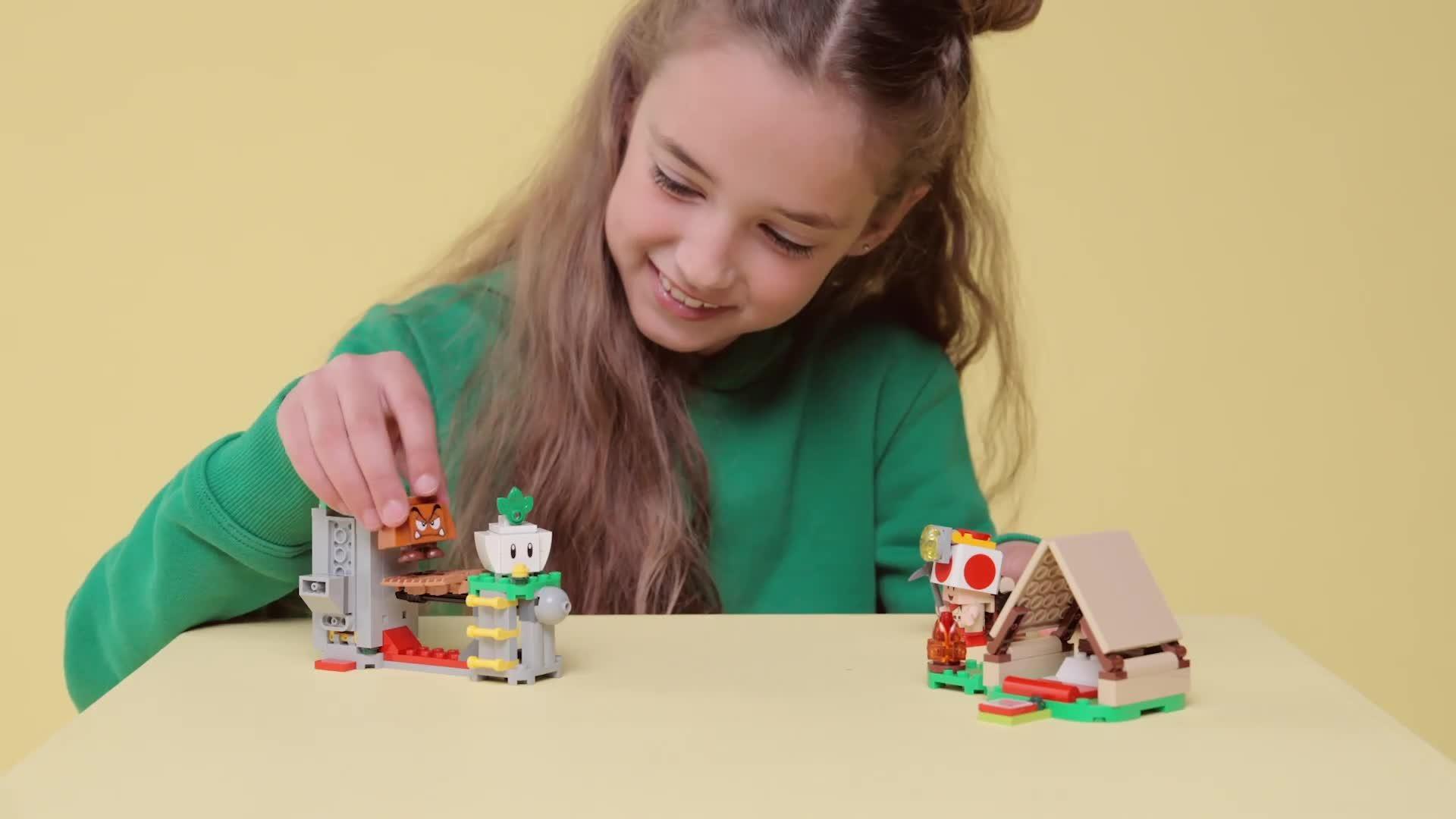 Add a LEGO® Mario™, LEGO® Luigi™ or LEGO® Peach™ toy figure (from sets 71439, 71440, 71441 or 72043, all sold separately) for interactive play, including digital reactions when jumping on the tent's Action Tag and defeating the Goomba.