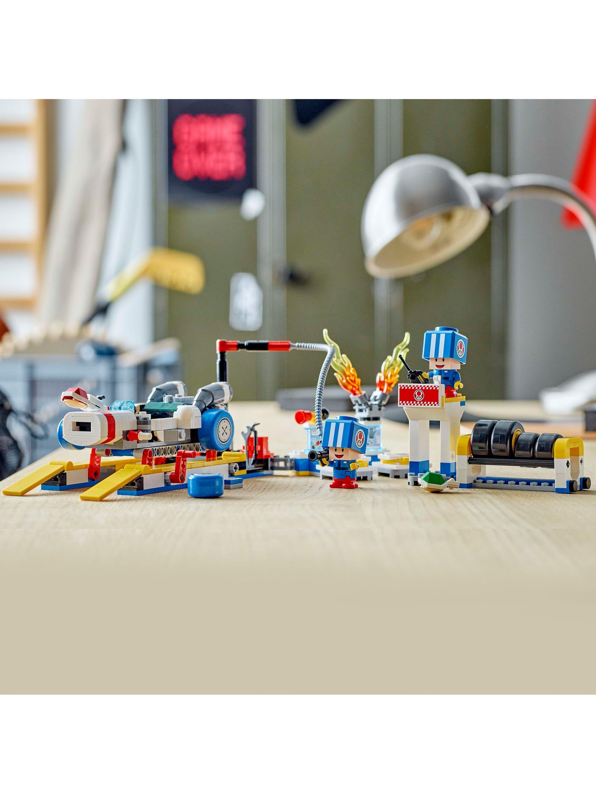A fantastic Nintendo® character gift idea for boys, girls and gamers aged 8 and over, the set features 2 Blue Toad toy figures in blue pit crew uniform, plus a working car lift, a choice of Standard Tyres or Blue Standard Tyres and tools. The B Dasher has a shell shooter, and builders can also attach the horn and engine from the Customisation Machines.