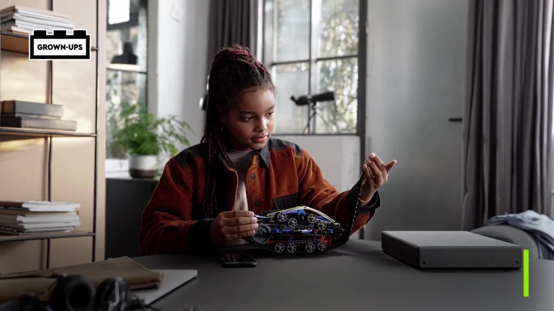 Kids can enjoy twice the fun with this LEGO Technic set. In a first for LEGO, this vehicle flips over when it drives into a wall to reveal the second vehicle. No wall? No problem! Kids can turn the model over to switch vehicles.