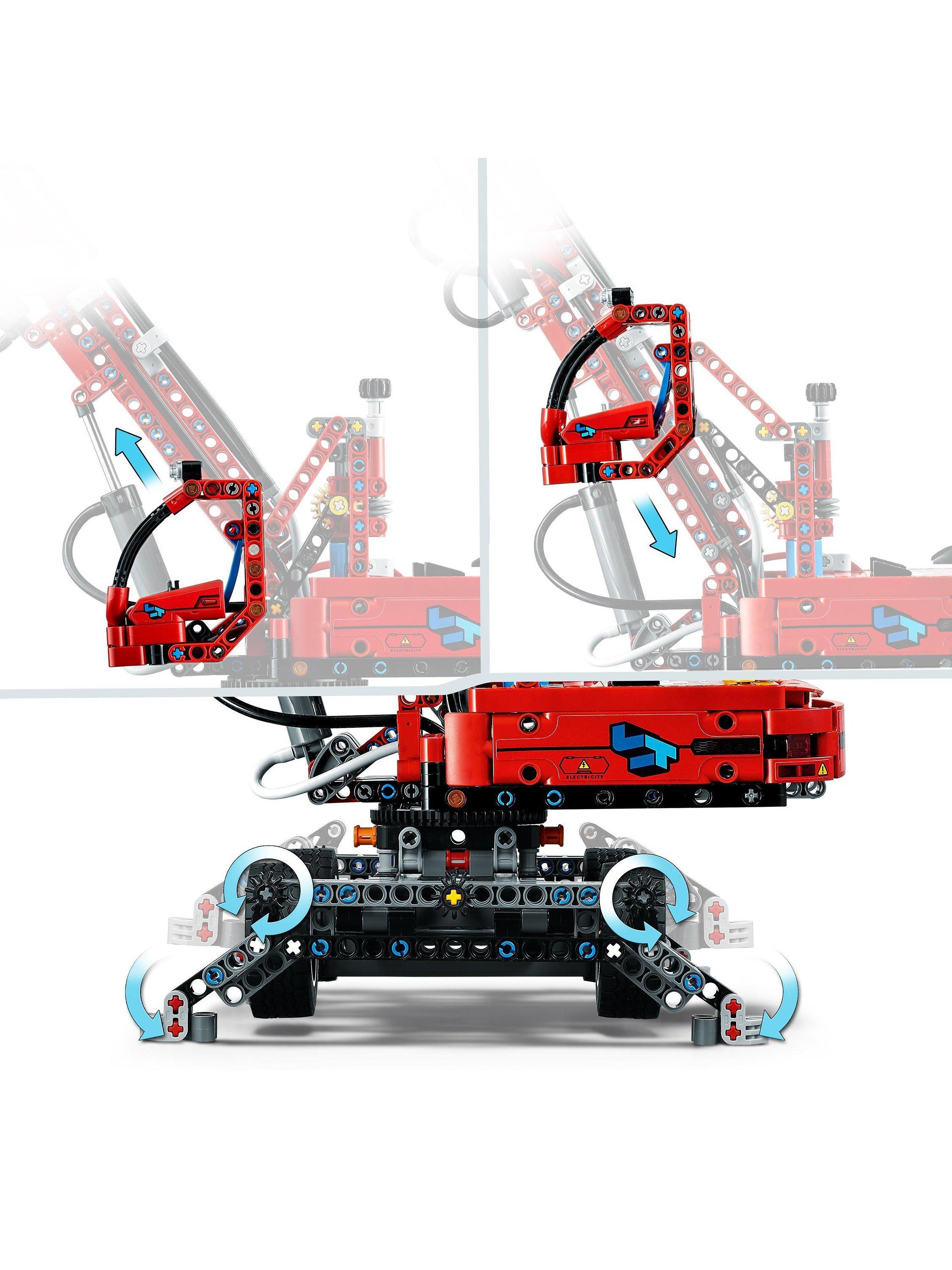 - Contains 835 pieces and features a movable arm with a reach of approximately 13 inches (35 cm), plus a classic ‘orange peel’ style grapple that opens and closes