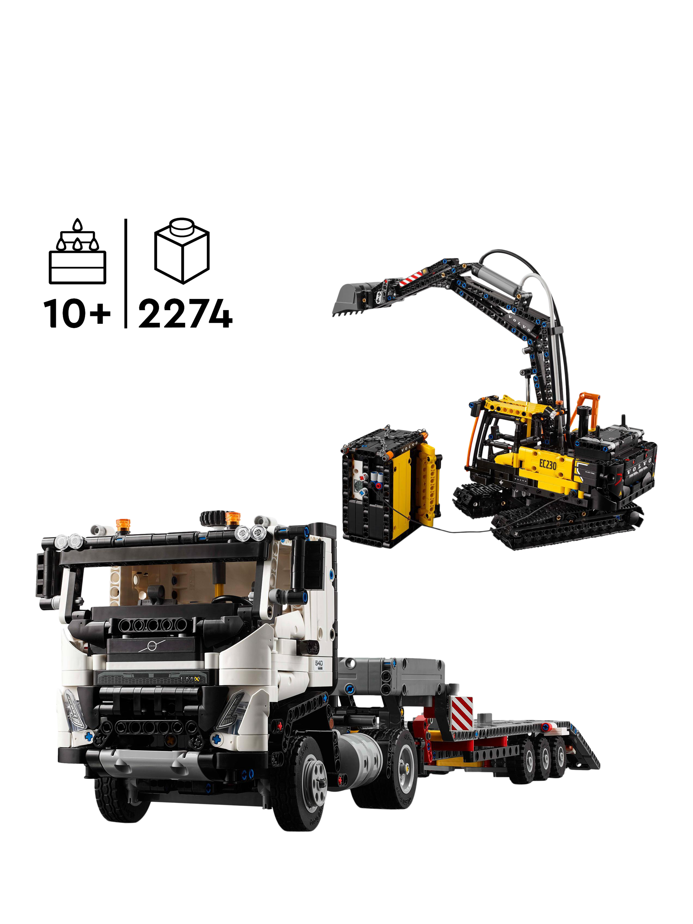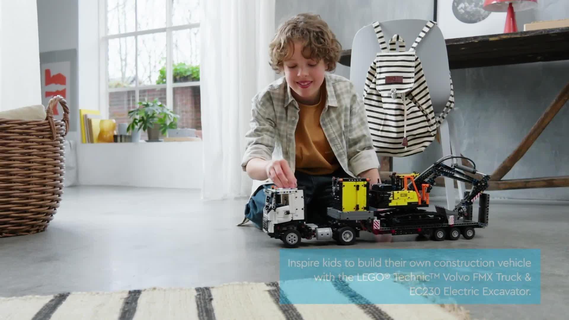 Inspire kids to build their own heavy-duty construction vehicle with this Volvo truck and excavator toy. The LEGO® Technic Volvo FMX Truck and EC230 Electric Excavator (42175) comes with a flatbed trailer, toy electric excavator and charging station, giving kids an immersive building project with two detailed model vehicles to explore.