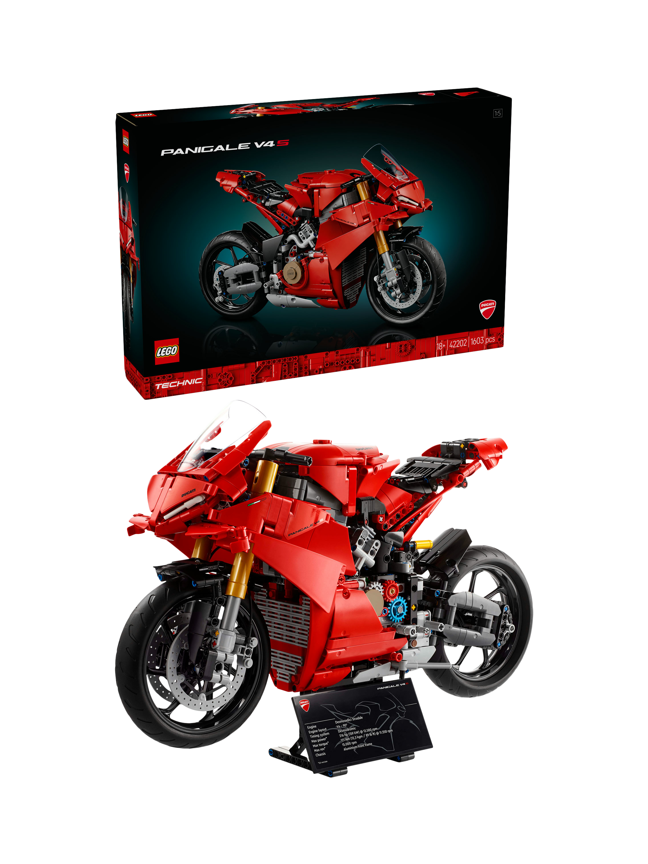 Set pulses racing with this LEGO Technic Ducati Panigale V4S Motorcycle (42202) building set for adults. With impressive details and authentic features, this LEGO motorcycle pays tribute to the real-world Ducati Panigale V4S – the highest performing motorcycle and fastest race motorcycle in the Ducati stable.