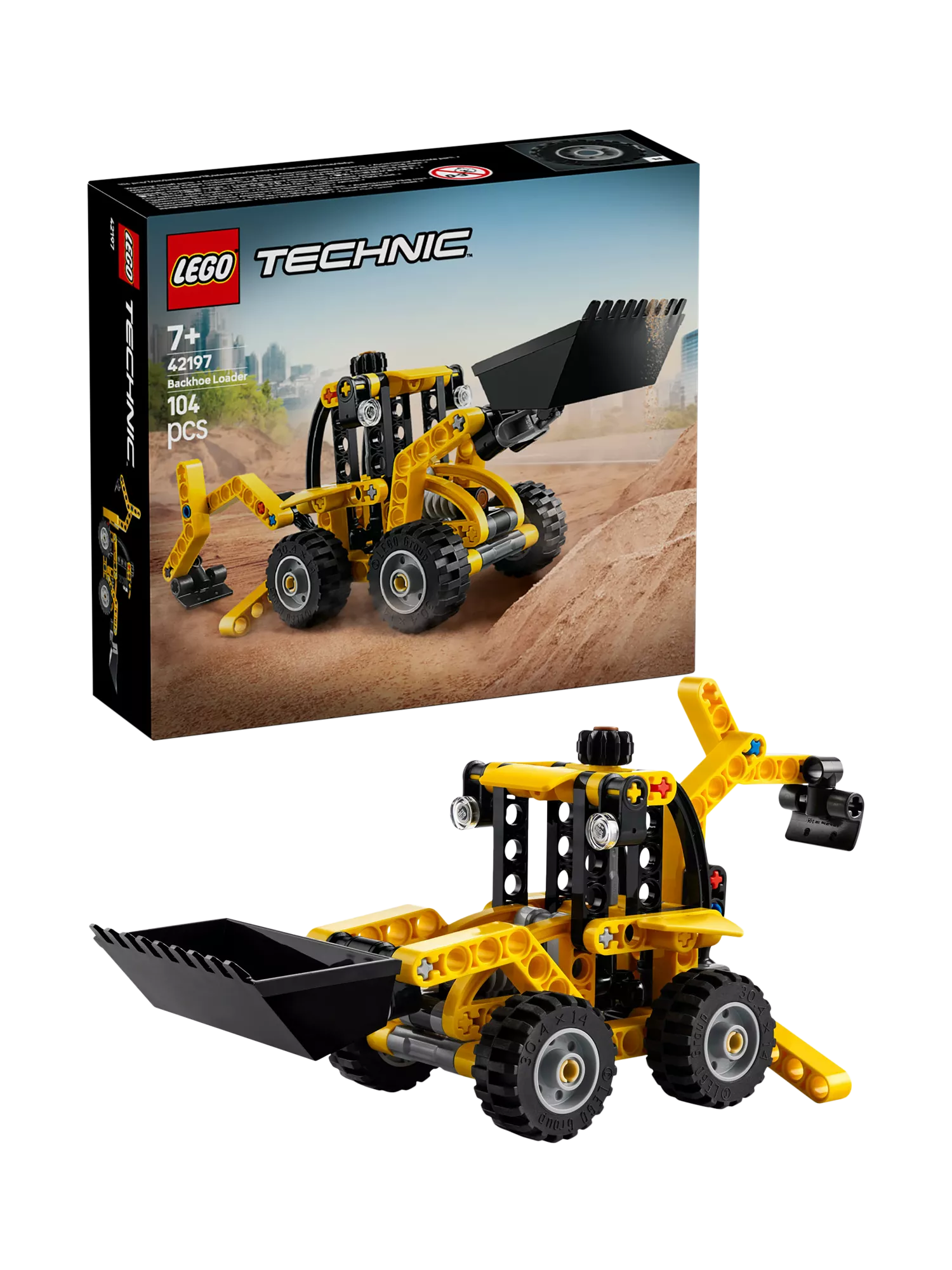 The LEGO® Technic Backhoe Loader (42197) is a fun construction toy for any fan of building site vehicles, aged 7+. It lets young builders role-play different building site tasks: wheel the loader into position and lower the outriggers for extra support. Turn the knob to move the front scoop up and down. Then, try out the rear digger to tackle the next building site task.