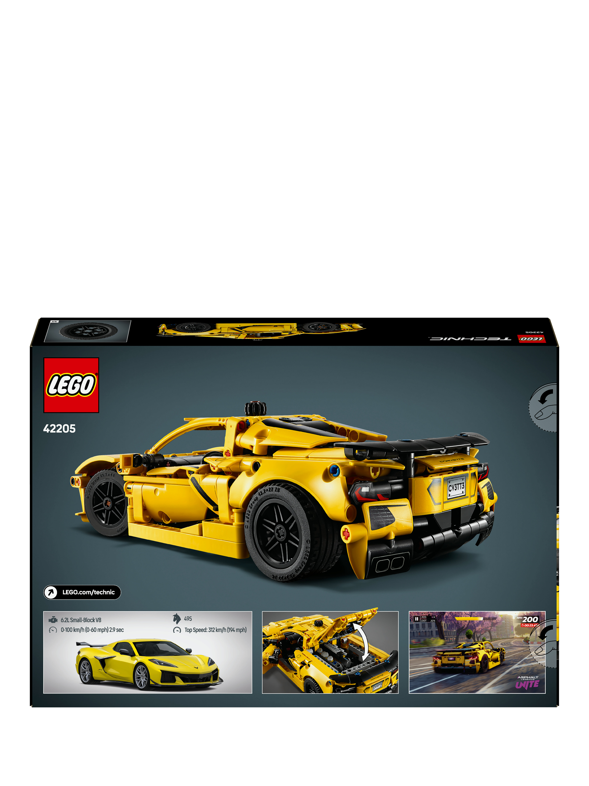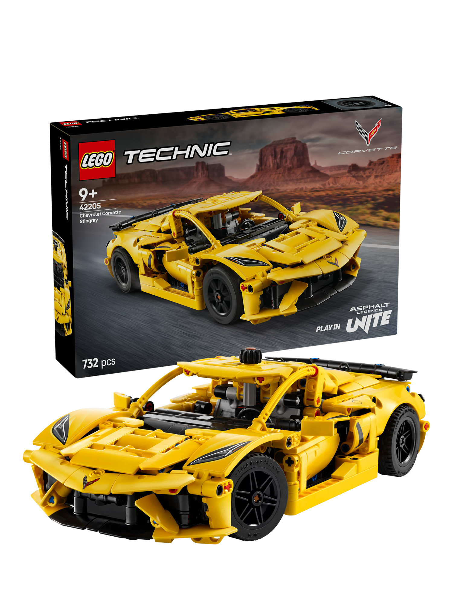 This detailed car model kit lets kids aged 9 and over build their own LEGO® Technic Chevrolet Corvette Stingray (42205).