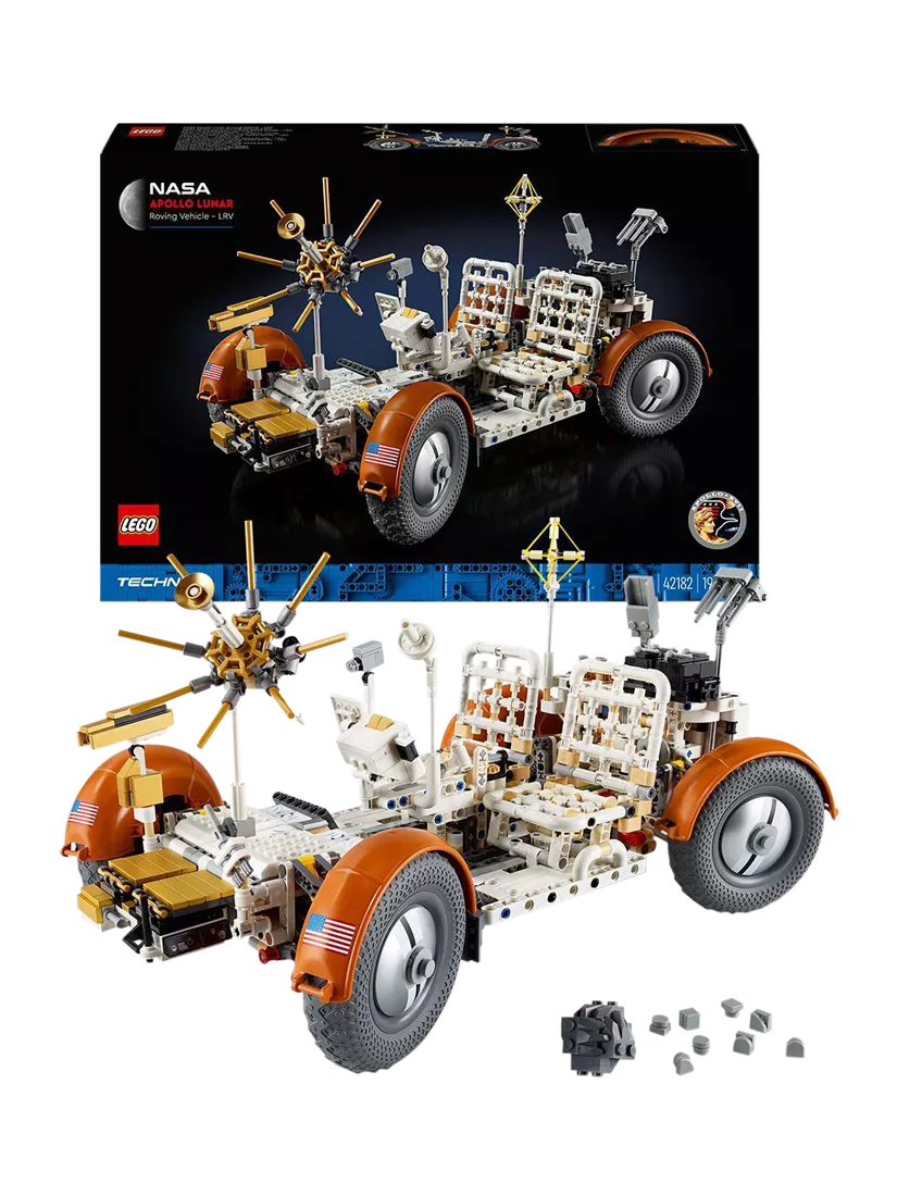 Embark on a journey to the Moon with this detailed LEGO® Technic NASA model set (42182) for adults. The set includes a displayable model version of the lunar rover module carried by Apollo 17, plus three attachable equipment sets.
