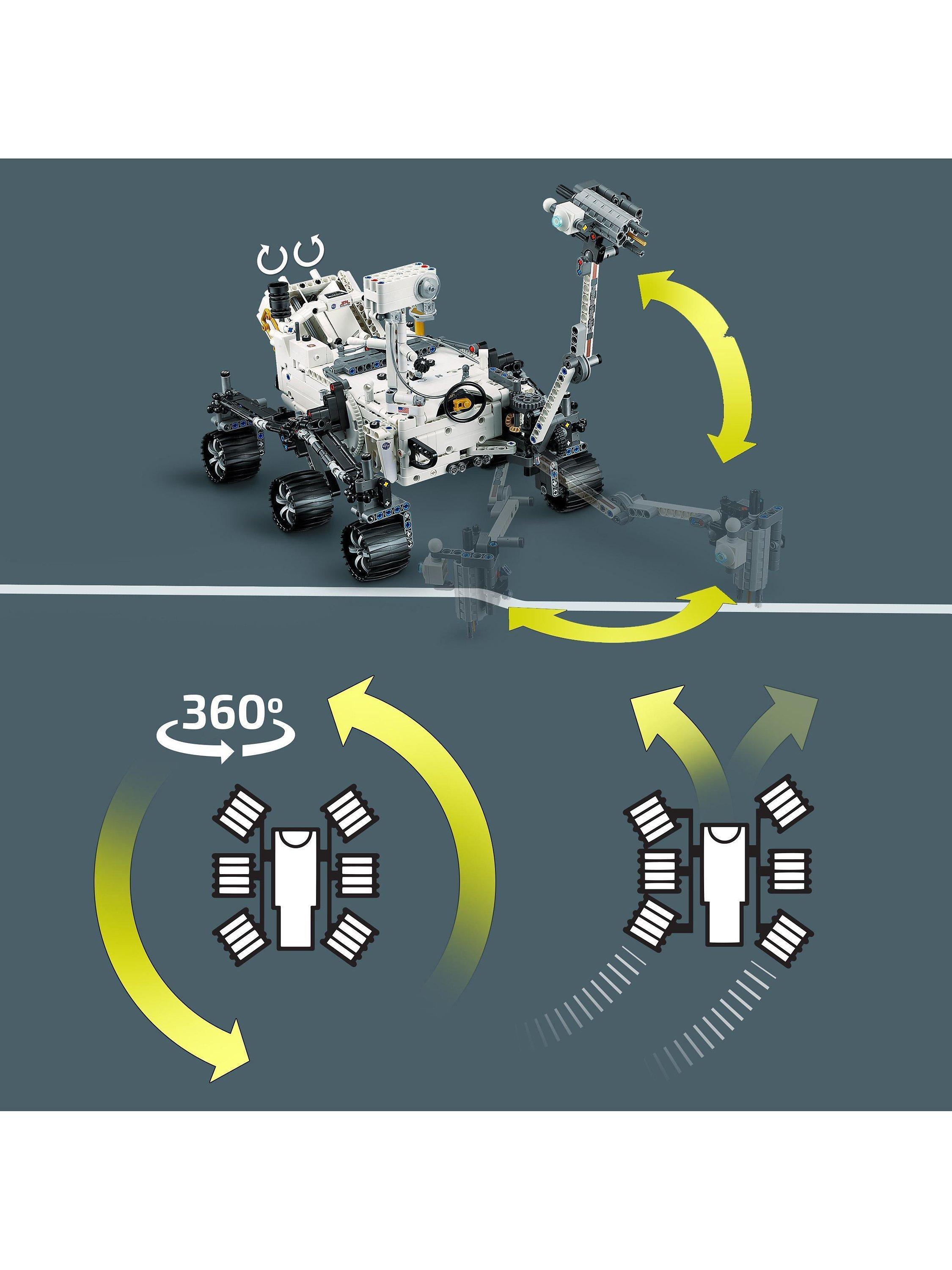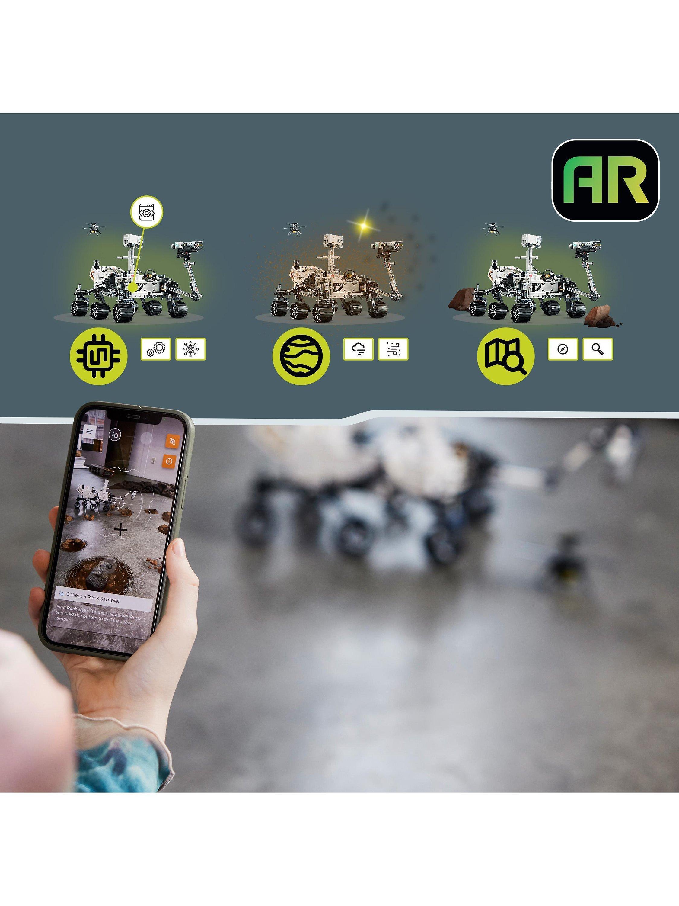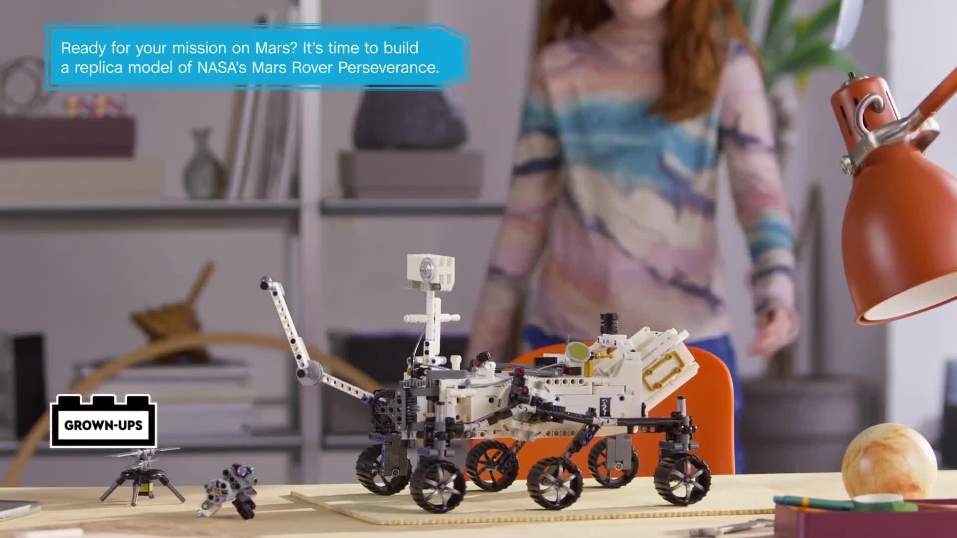 Ready for your mission to Mars? It’s time to build a replica model of NASA’s Mars Perseverance Rover and its companion helicopter Ingenuity. Check out the articulated suspension that lets the rover travel across uneven surfaces on all 6 wheels. Try the advanced 2-mode steering and move the rover’s arm. Explore further with the AR app that reveals details about Mars, the rover and its mission.