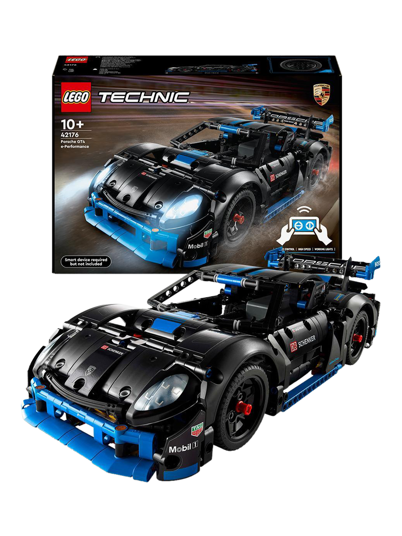 Send kids aged 10+ speeding into a thrilling project as they assemble this LEGO® Technic Porsche GT4 e-Performance Race Car toy (42176). This remote-controlled racing car toy model comes with lots of interactive features and is the fastest car (as of August 2024) in the LEGO Technic CONTROL+ range. Access the CONTROL+ app to operate the steering, control the lights and see live data feedback as kids perfect their driving skills.