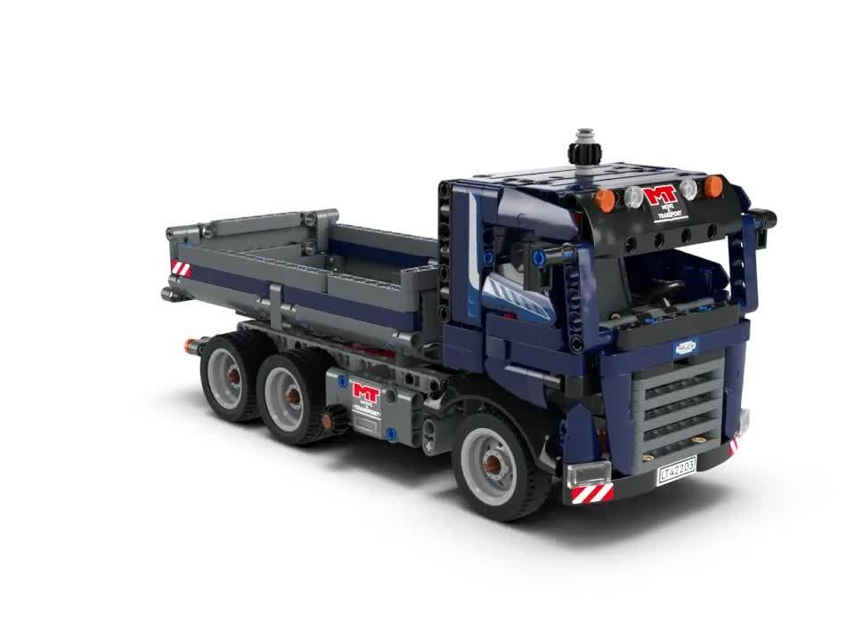 Kids aged 9 and over can create endless construction site adventures with the LEGO® Technic Tipping Dump Truck toy (42203).