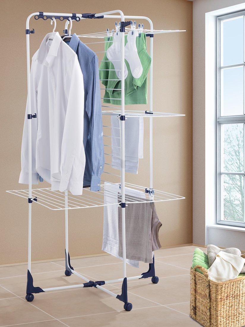 Often upright clothes airers like this are difficult to move around once loaded, but this one has 4 rollers at its base so even when fully loaded it can be moved in all directions easily. And once the washing is dry it can be fully folded flat for storage.