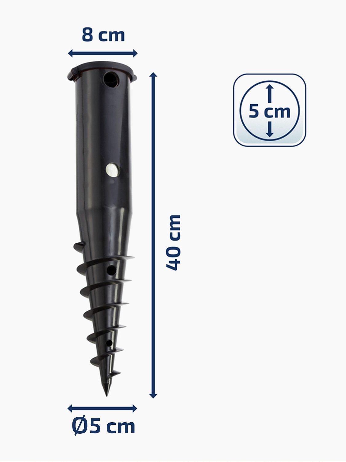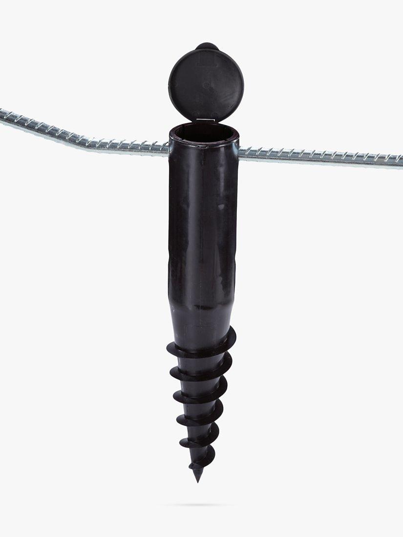 - "Sturdy and robust 50mm ground socket easy to screw into ground with long metal bar handle Metal core gives robust strength against stones ensures long life can be unscrewed from ground should rotary clothes line need to be re-located removes need to concrete socket into ground"