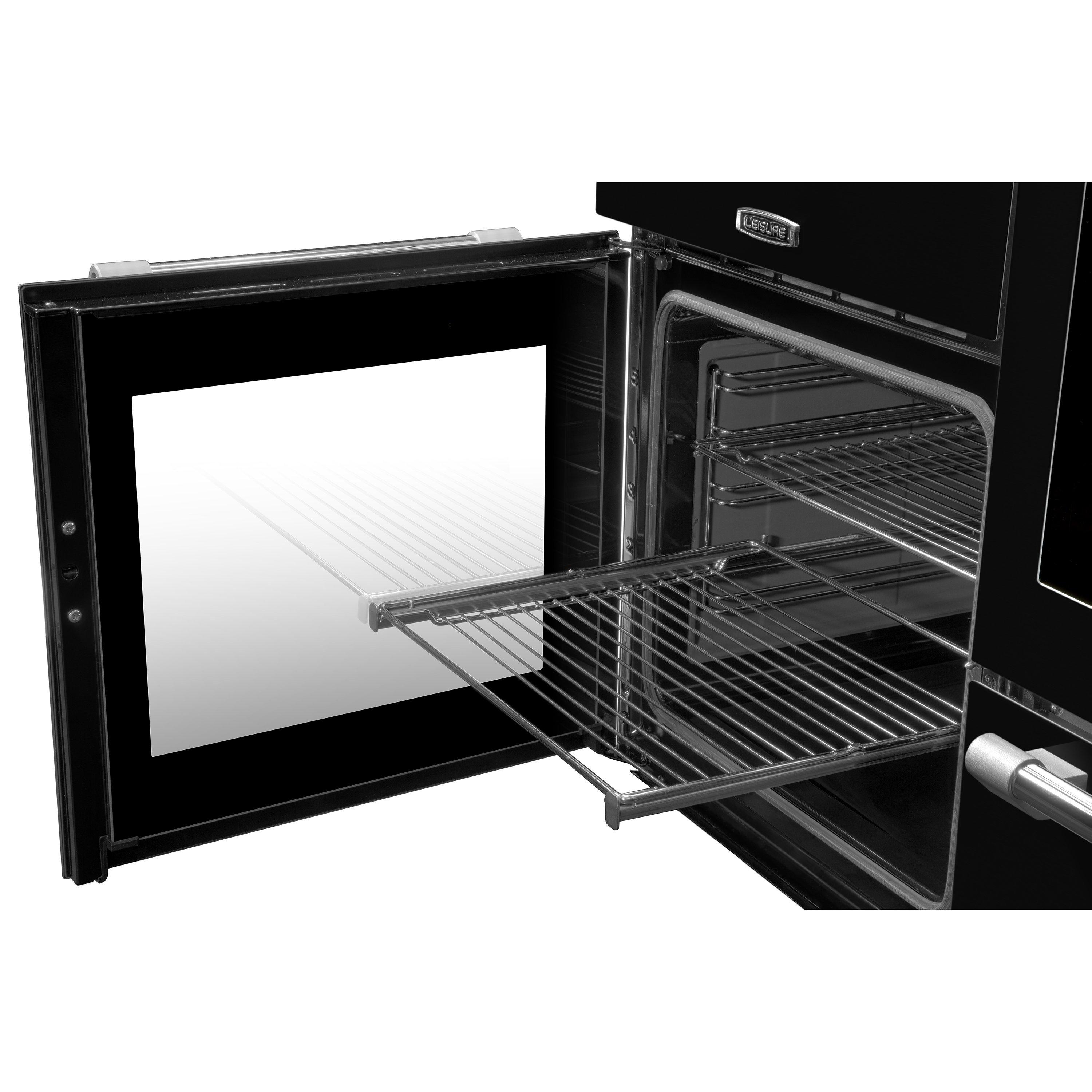 Ovens on this appliance host drop-down doors and telescopic shelves for easy access to your food. Lined with self cleaning catalytic liners, the oven cavities in this Leisure range cooker provide effortless maintenance, as the lining resists cooked on food and spills for supremely easy cleaning.