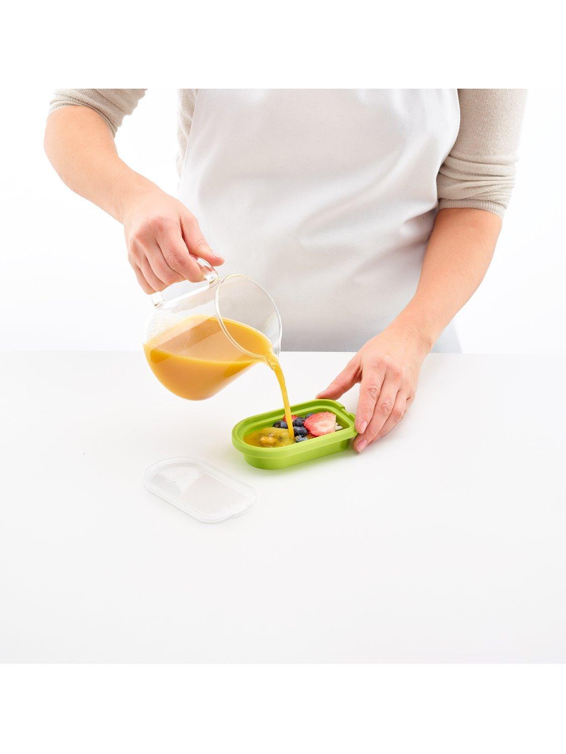 The moulds contain a lid that will protect the preparation from smells and flavours. Thanks to their shape and the same lid, they stack together to save space in the freezer or when storing.