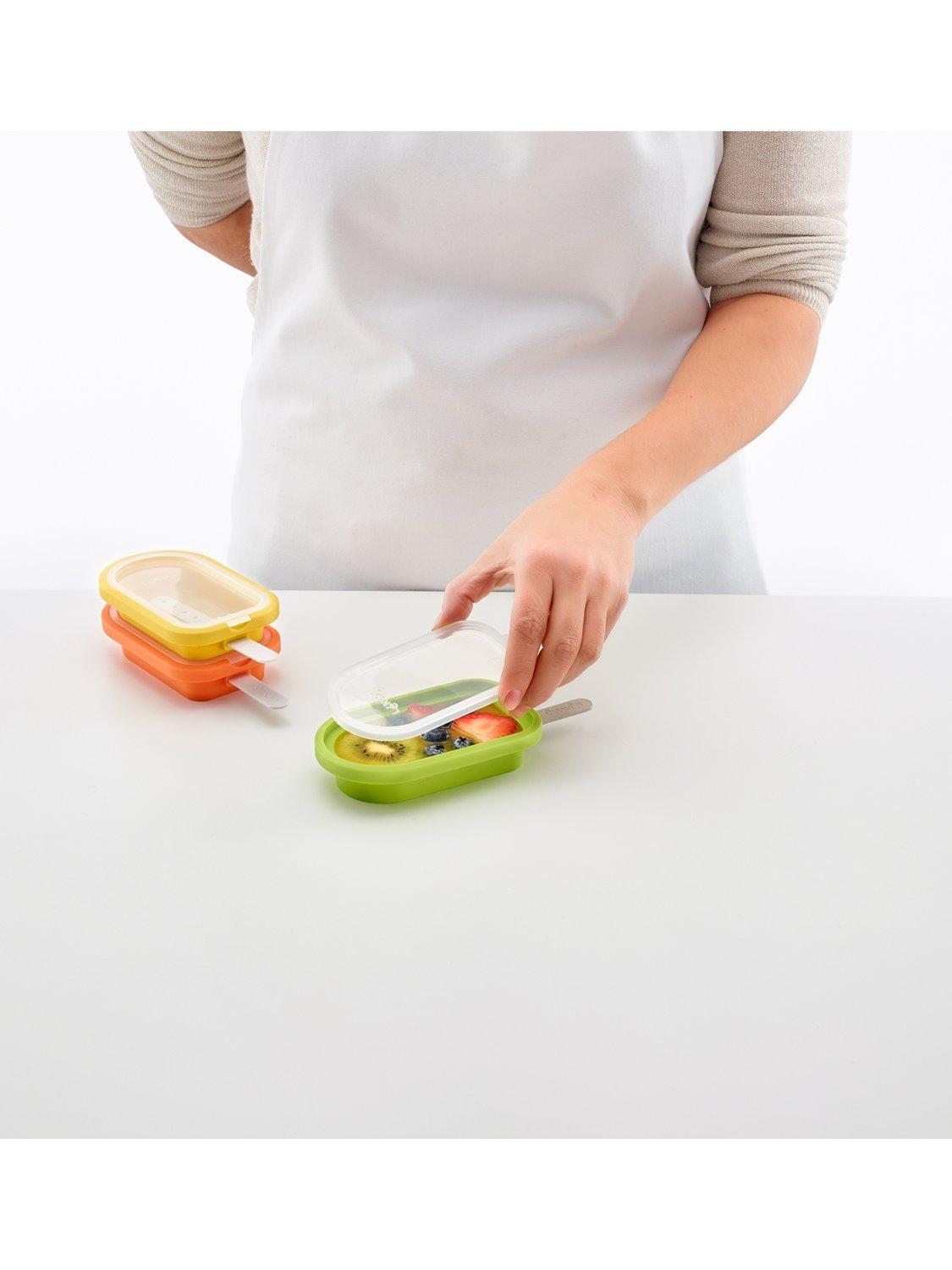 Make homemade popsicle ice lollies quickly and easily with this pack of four Lékué moulds. With these large lolly-shaped moulds, you can prepare popsicles at home with the ingredients that you like and favour as healthier. The horizontal filling design makes it much more stable, easier and safer, so even the kids can make their own ice cream.