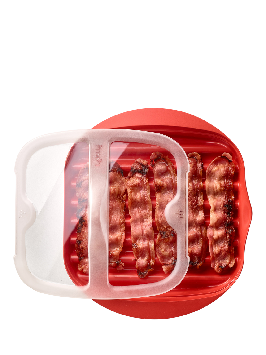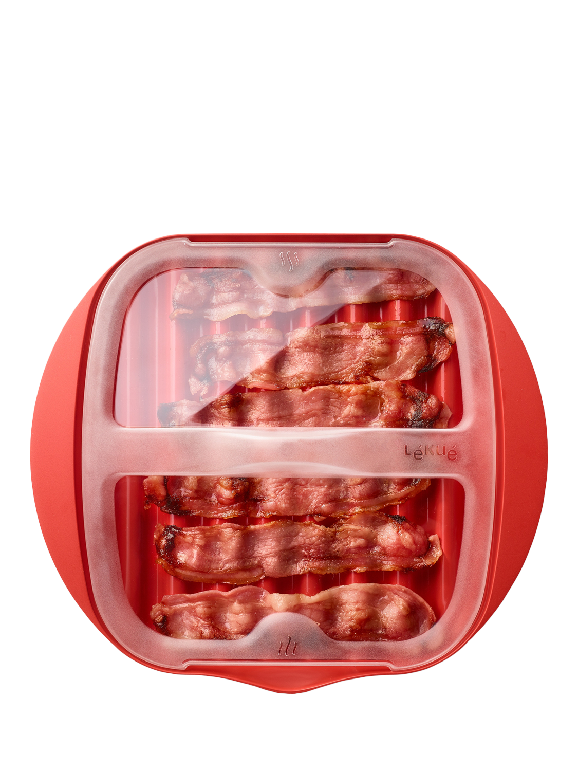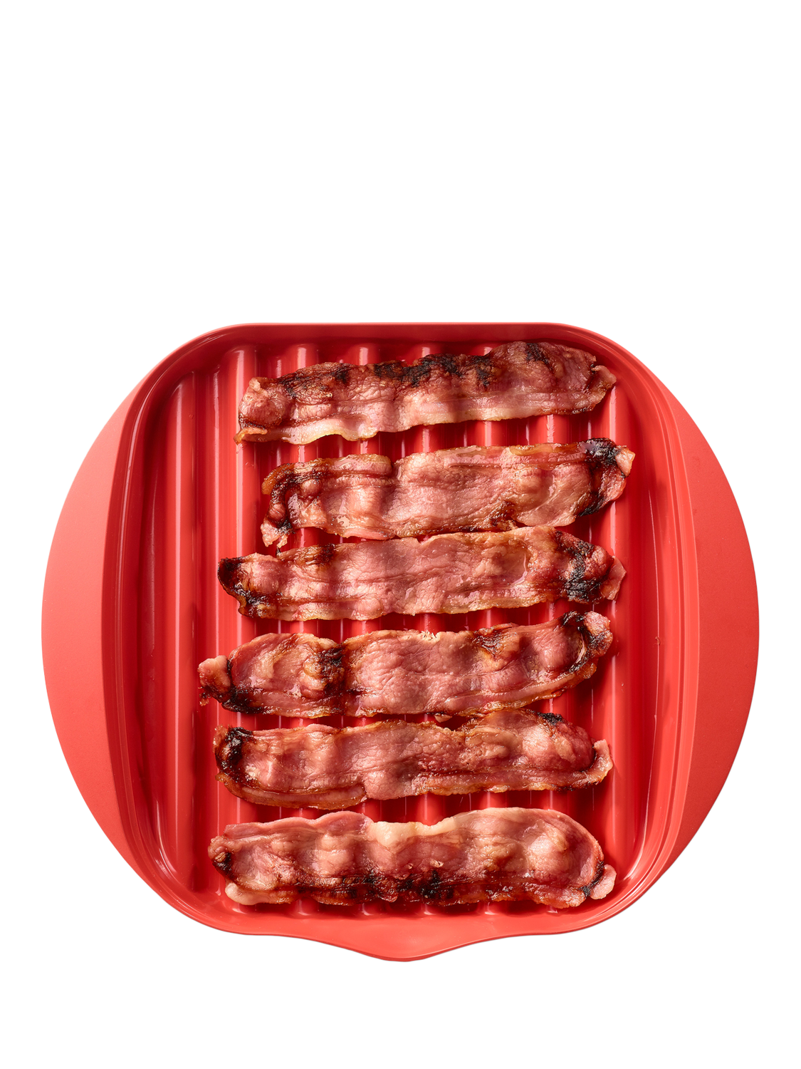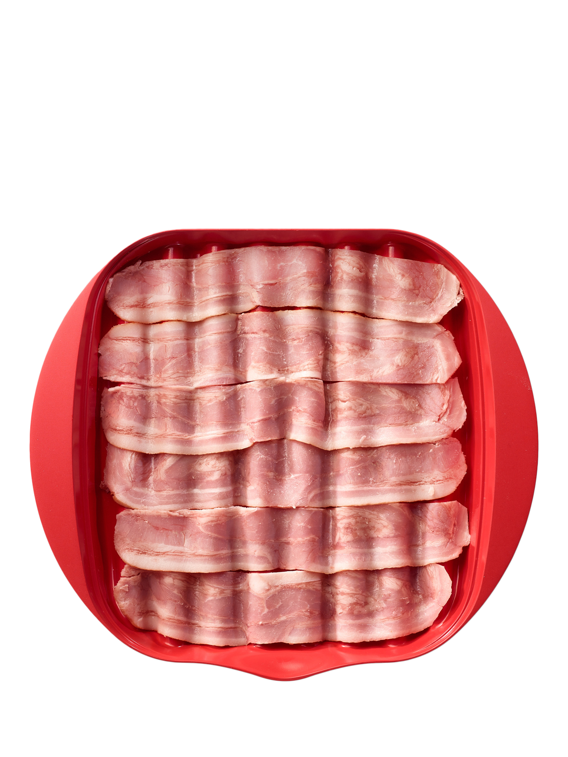 Cook up to six slices in just three to four minutes. Cook bacon in the microwave quickly and cleanly. Dishwasher-safe for easy cleaning.