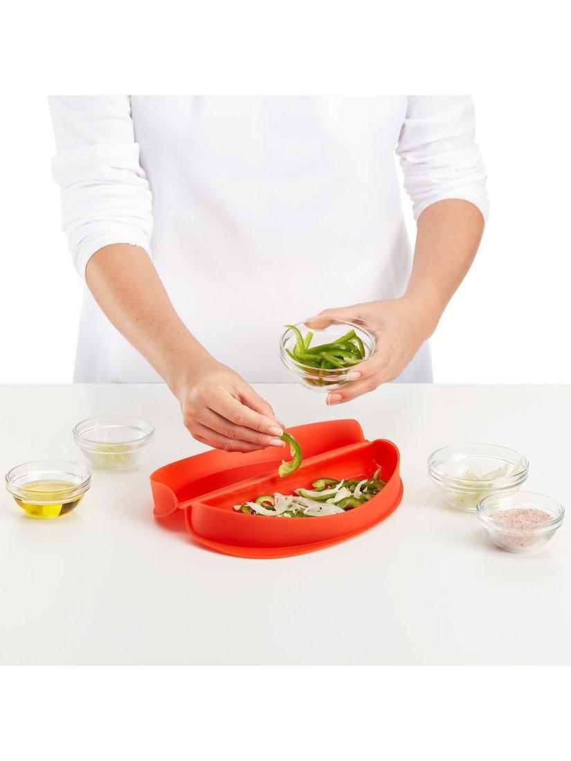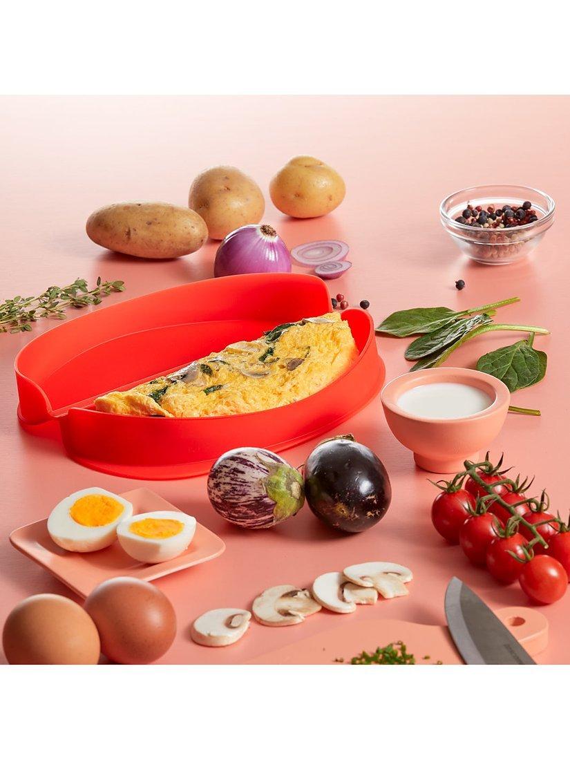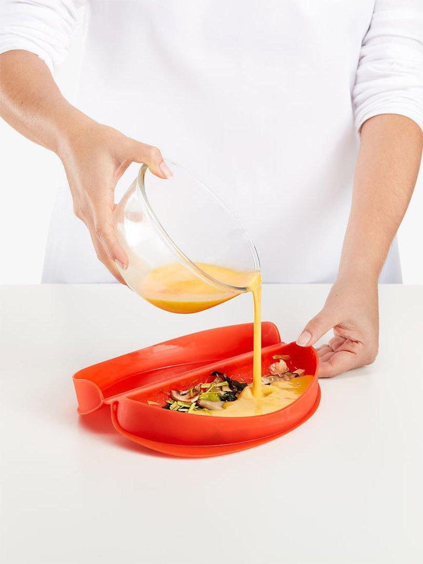 Cook an omelette in the microwave in a healthy, original, fast and simple way quickly and with less oil. This Lékué mould creates fluffy omelettes in the microwave with all kinds of fillings of your choice in minutes and without piling up the dirty dishes.