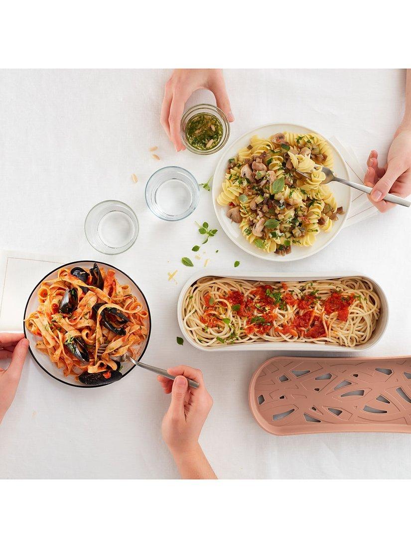 Prepare all types of pasta dishes and sauces in the microwave, in the fastest and cleanest way possible. You can also cook, drain and serve using the same container, from kitchen to table.