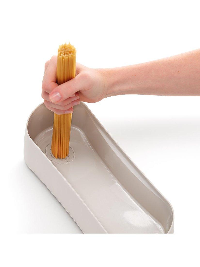 Add all the ingredients inside and cook in the microwave. Very fast, there's no need to boil water first. Up to four servings in 10 minutes. No pasta foam spills out and your microwave remains clean. There's a guide to portions for spaghetti in the base.