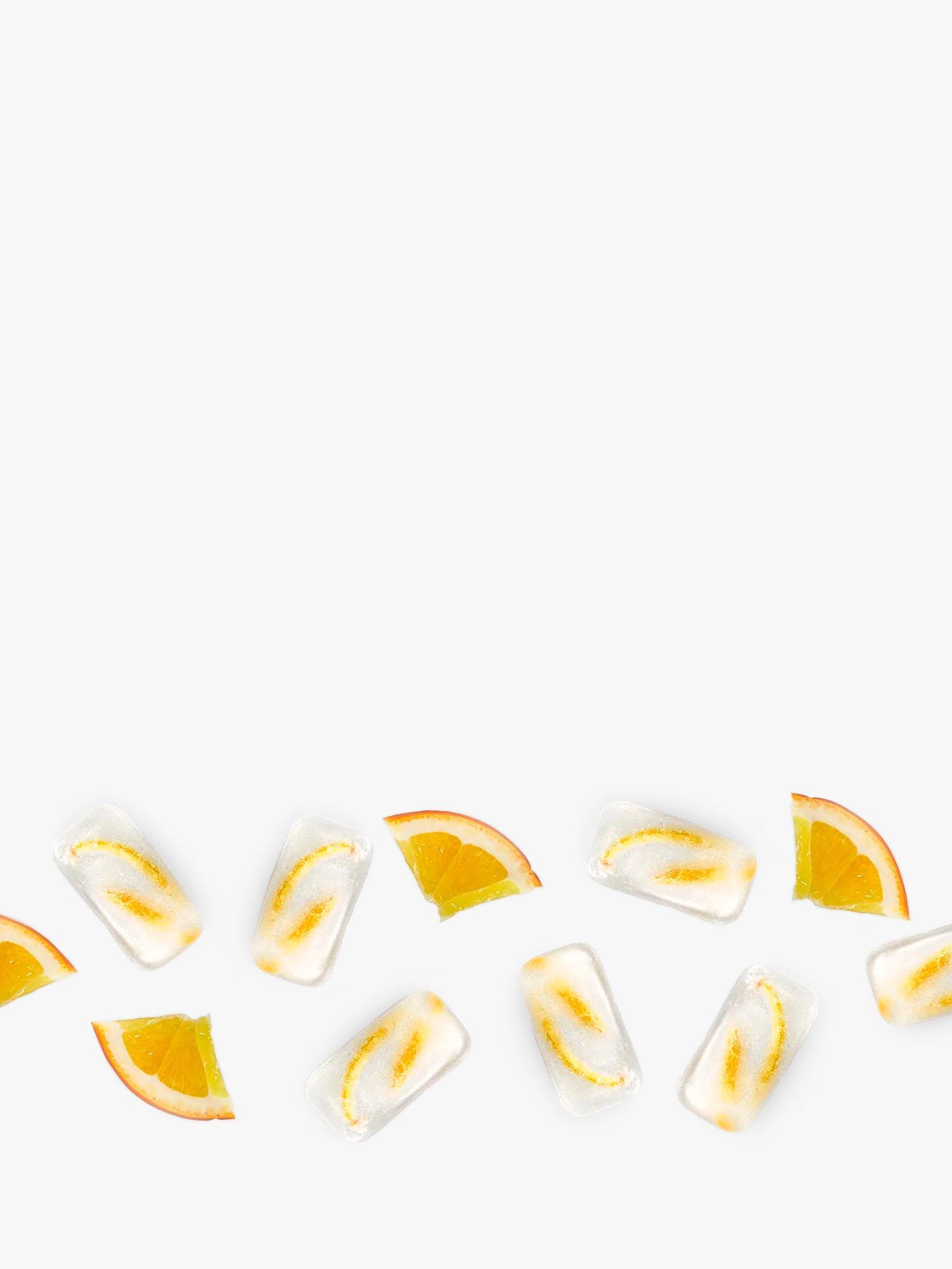 Freeze ice cubes made of water to chill any type of drink or create iced teas and iced coffee. For a healthy cold drink, you can prepare flavoured water with fruit and add cubes with fruit pieces, mint leaves, pepper or chamomile flowers. A touch of flavour and a wow effect. The acidic components of some foods, such as citrus juices, may cause damage to the material.