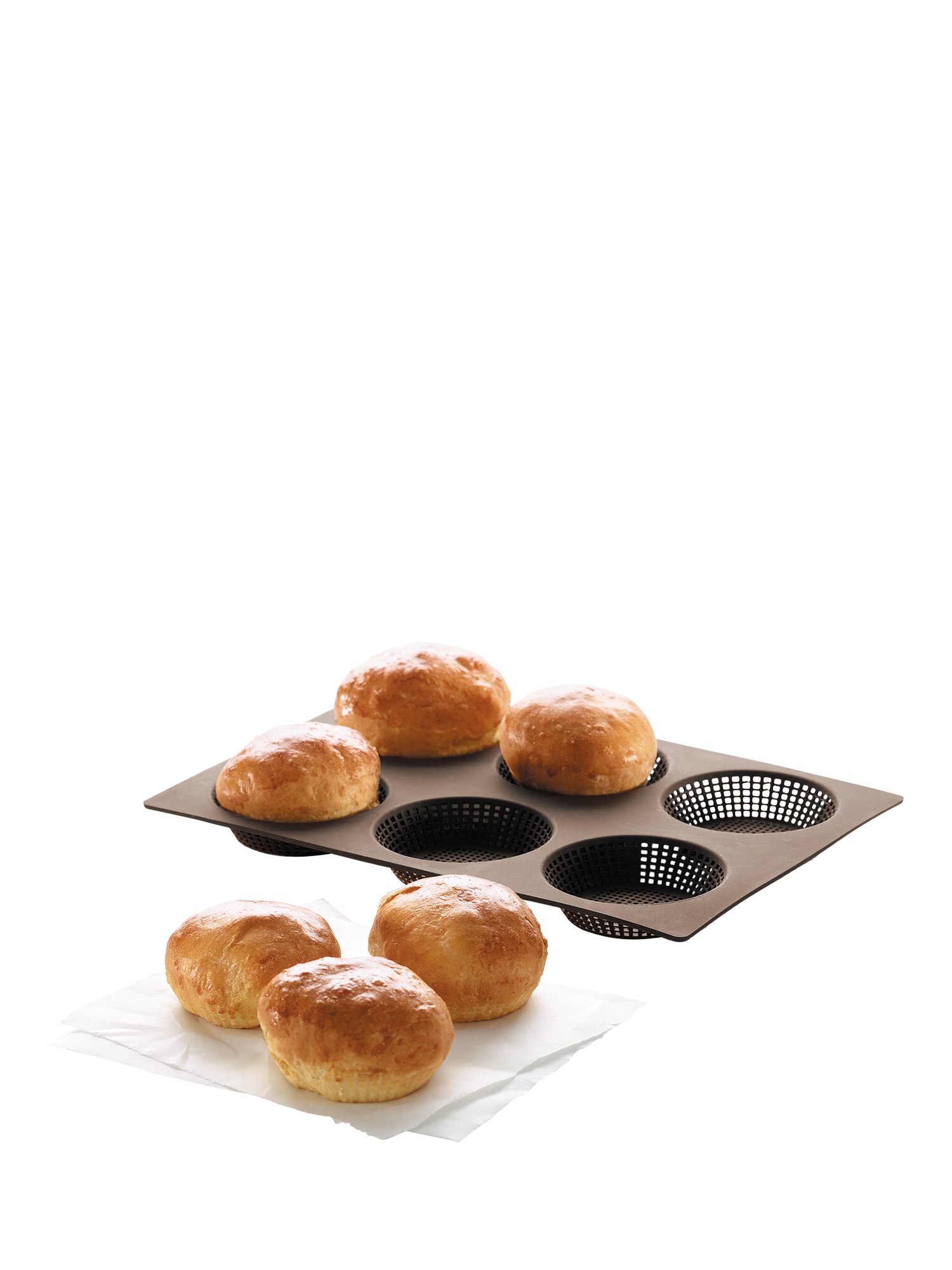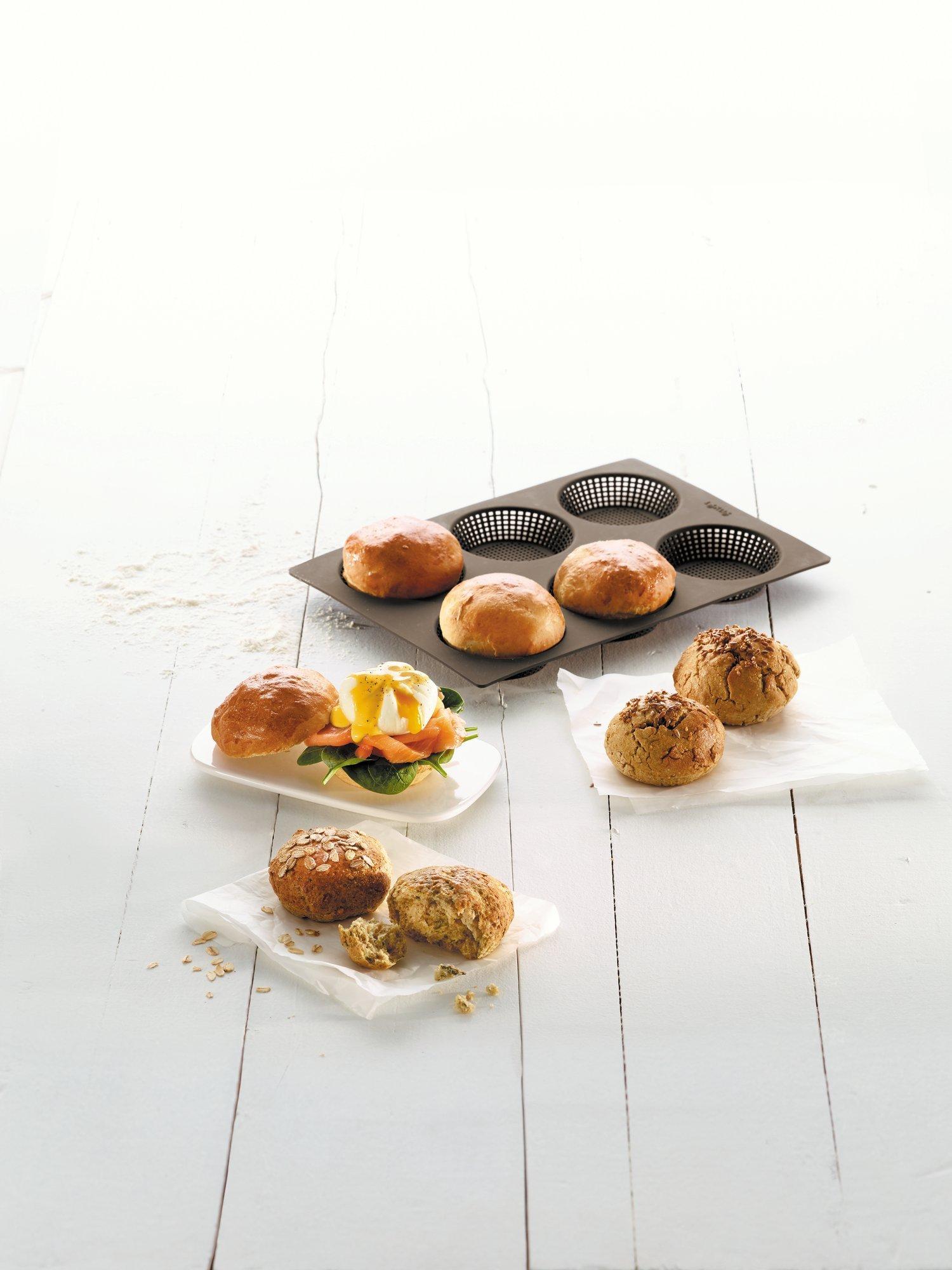 With the Lékué Silicone Bread Roll Mould, you can bake six bread rolls all at once. Enjoy homemade mini-sandwiches for breakfast, a snack or to accompany your meals. Dishwasher-safe for easy cleaning.
