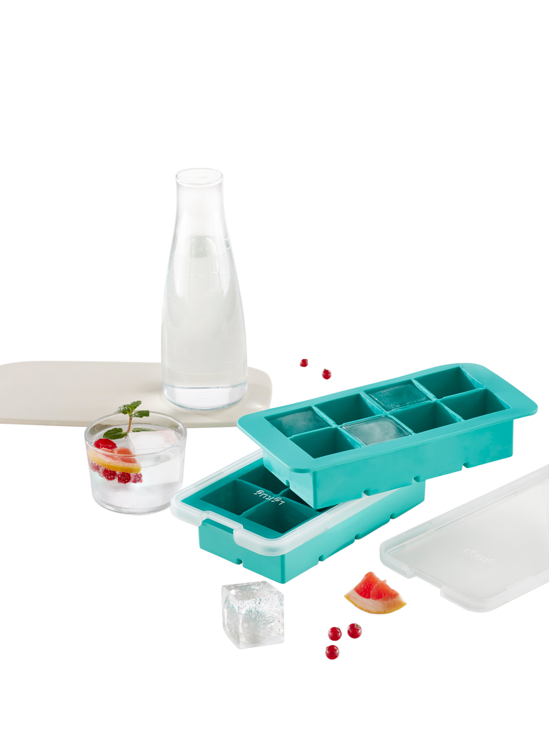 Discover a new way to keep cool with this extra-large ice cube tray. Create larger ice cubes and keep your drinks as cool and tasty as the first sip. This ice cube tray with a lid, designed to make eight square ice cubes, is perfect for any occasion. Fill, cover, freeze... and release!