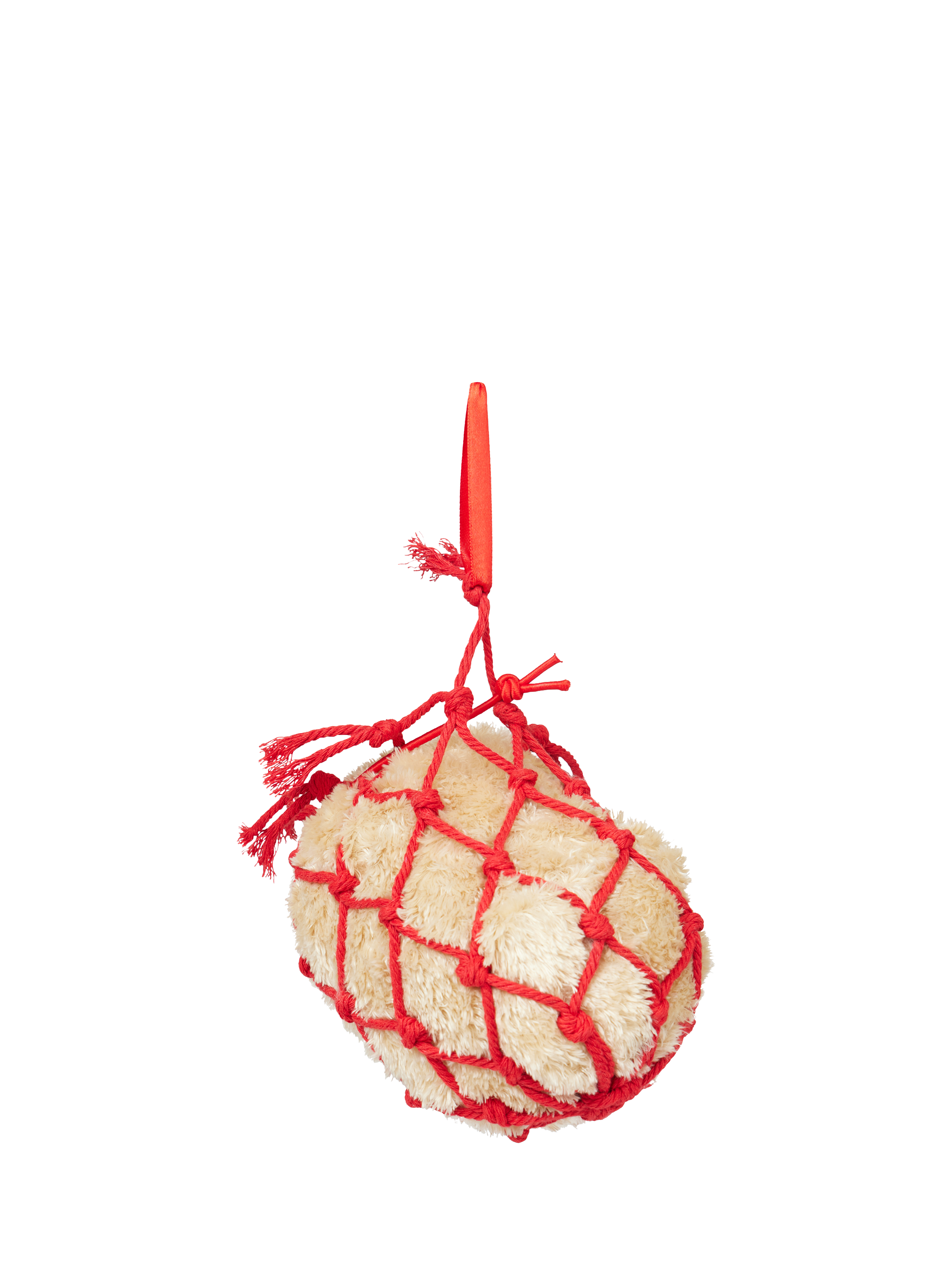 There's an elastic opening for filling the haynet with the fluffy hay bale, and a short hanging loop for safe feeding.