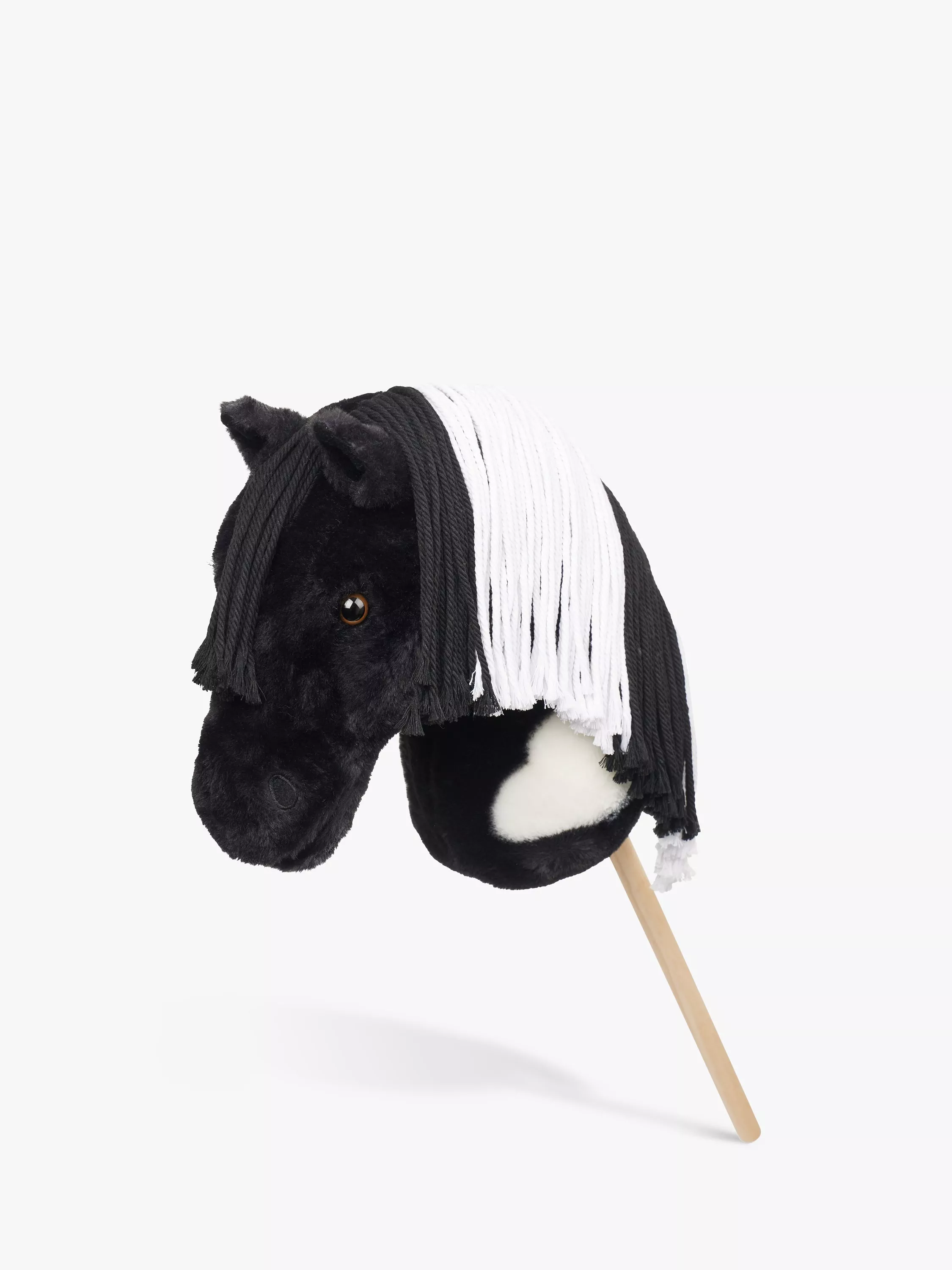 Razzle the black and white piebald hobby horse has a realistic head, plaitable mane and hook and loop mouth to hold matching accessories (sold separately).