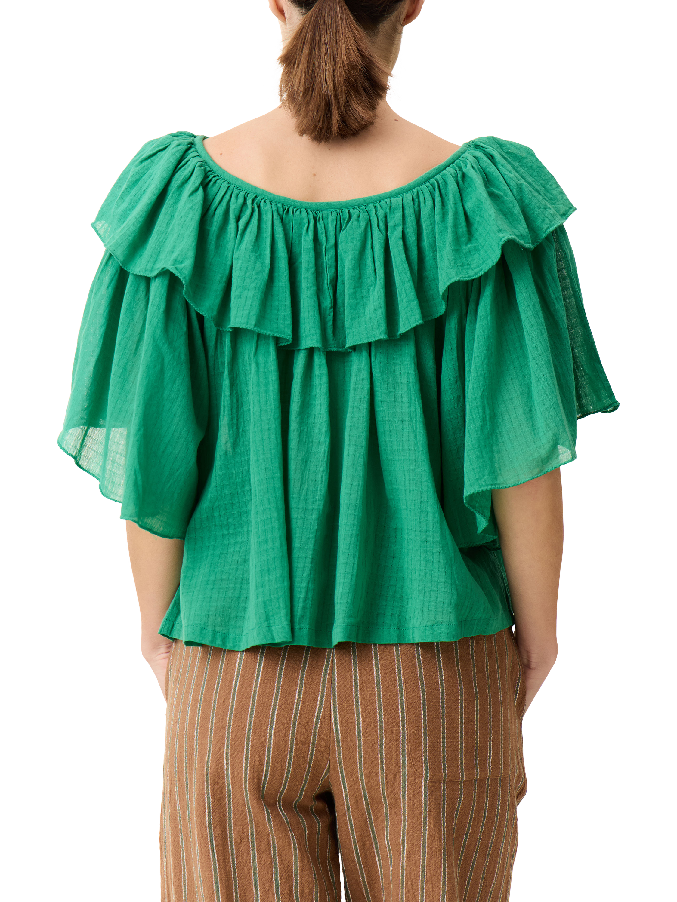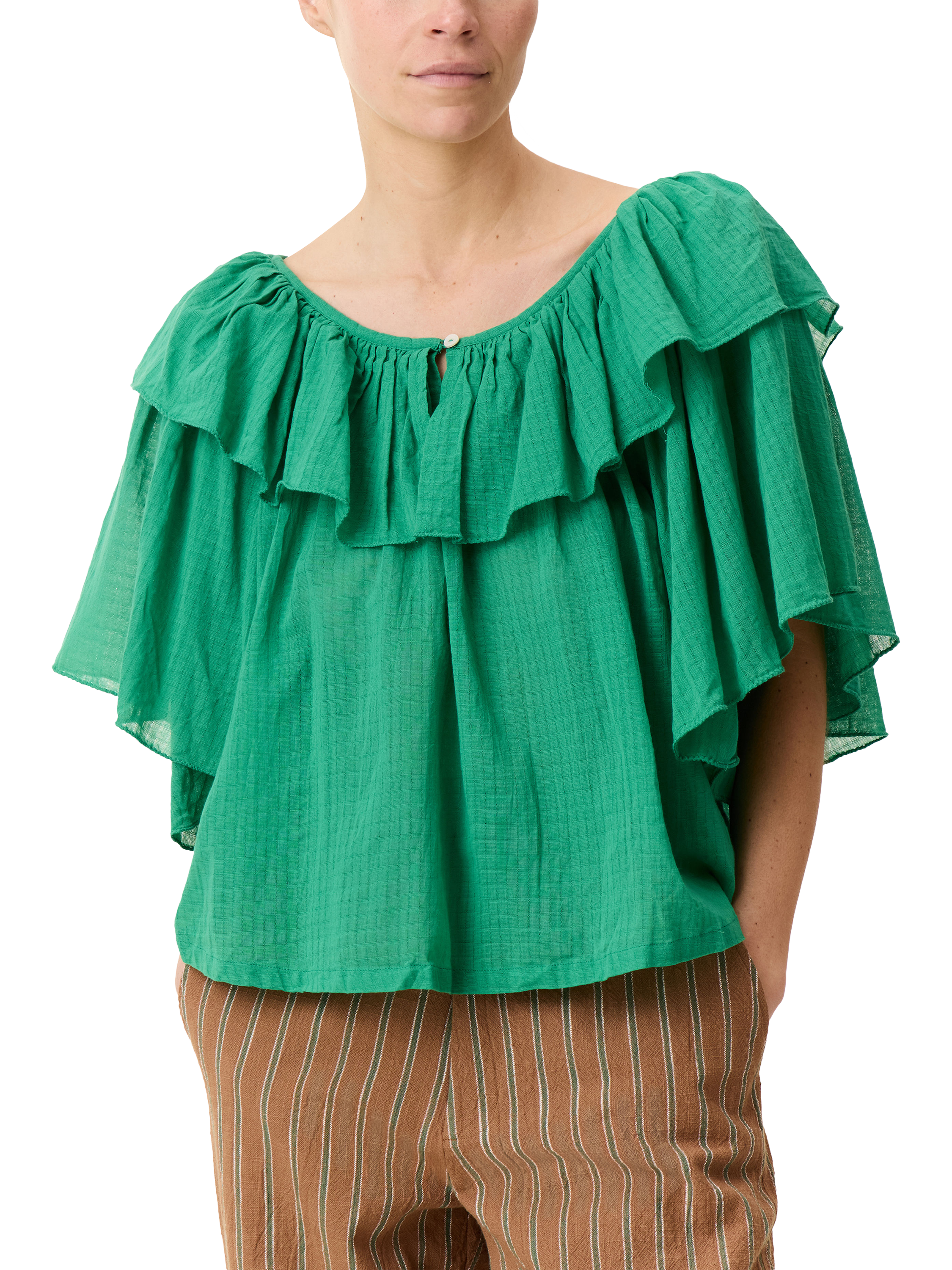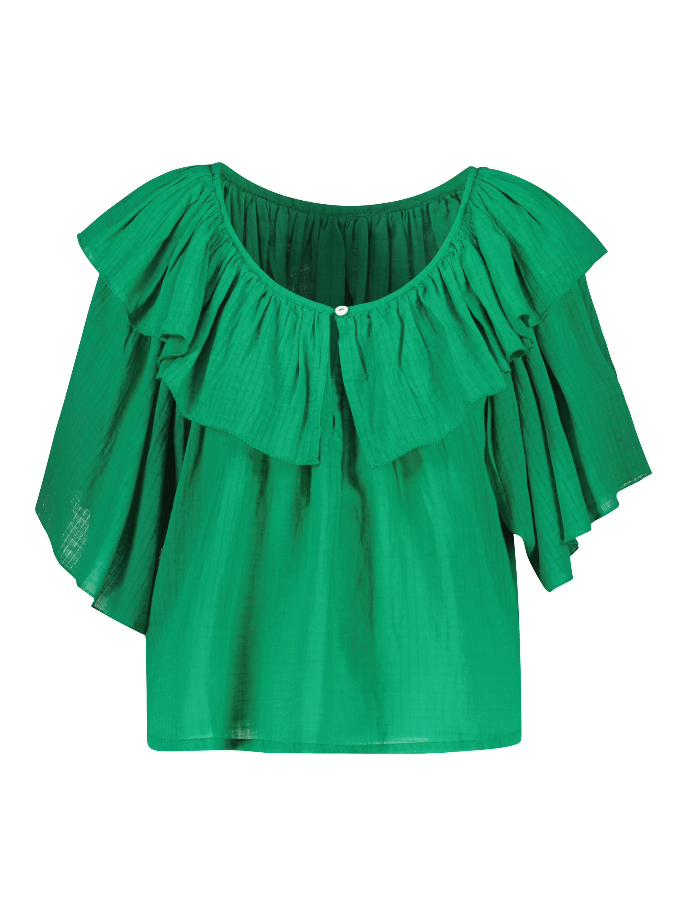 Detailed with ruffles, this blouse from Leon & Harper is made from pure organic cotton with a round neckline and short sleeves.