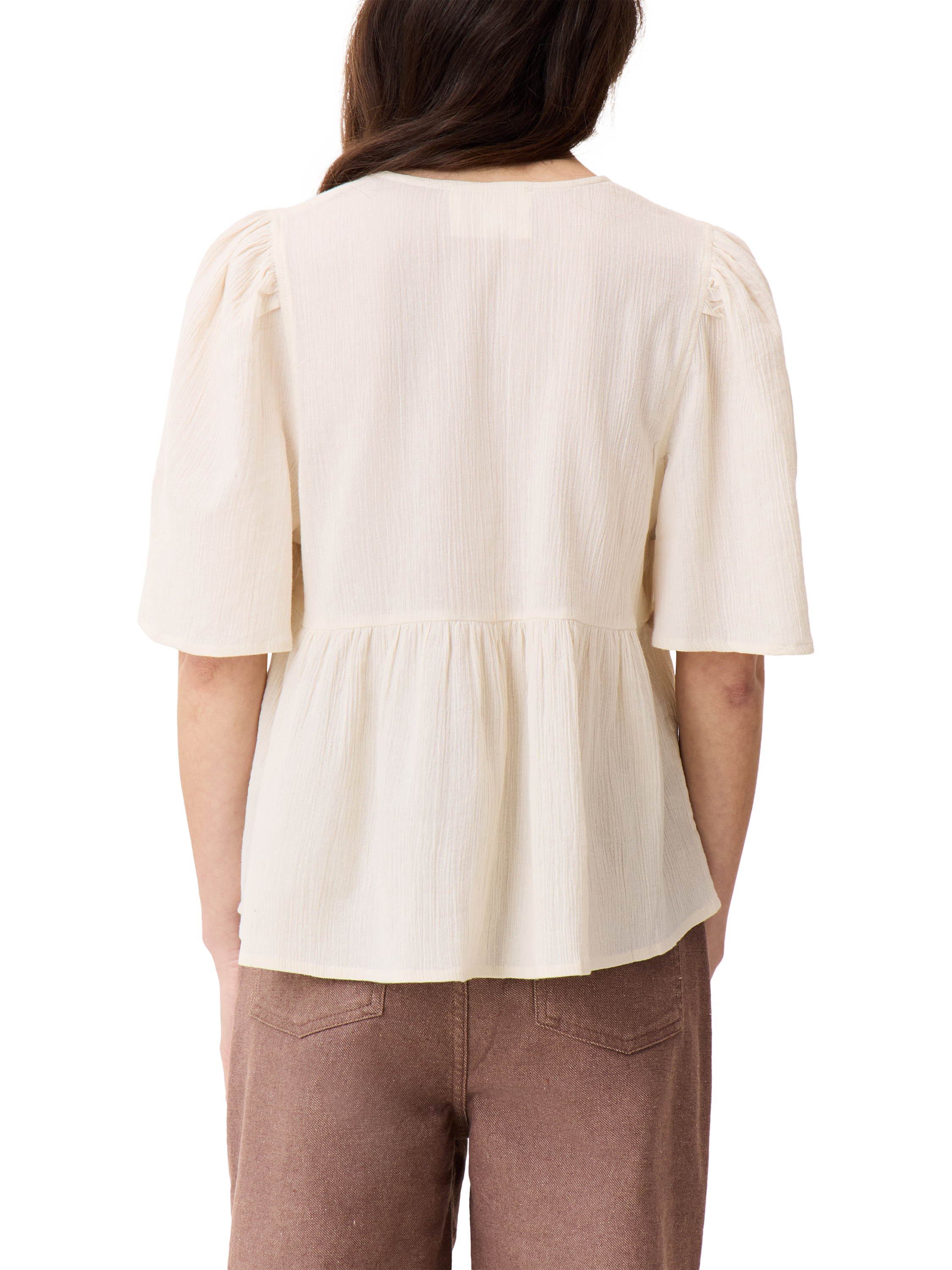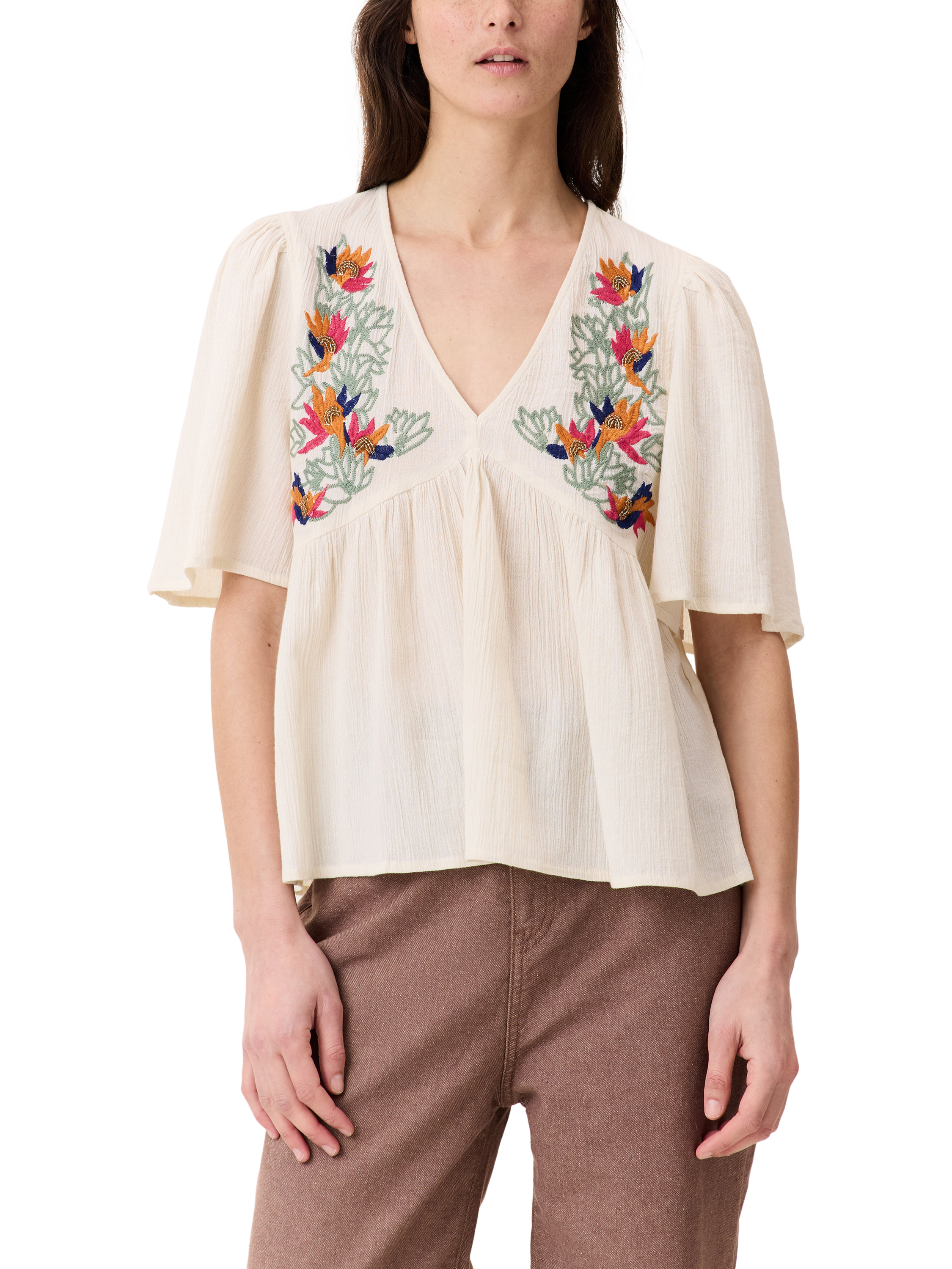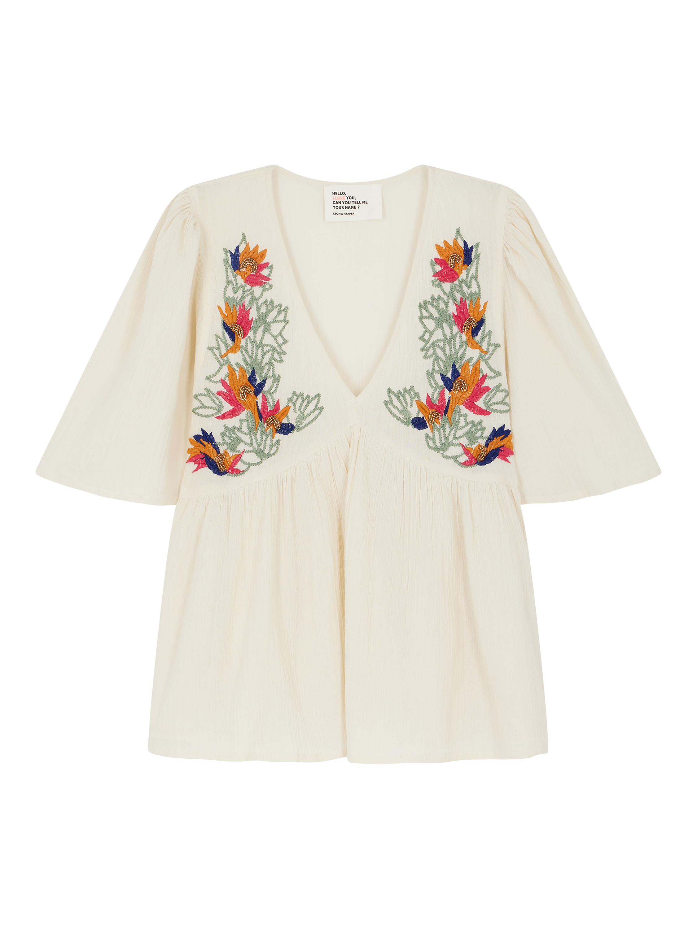 A masterclass in simplicity, this style from Leon & Harper is made from soft cotton (organic, no less). With a universally flattering v-neckline and short sleeves, it is detailed with beaded embroidery.