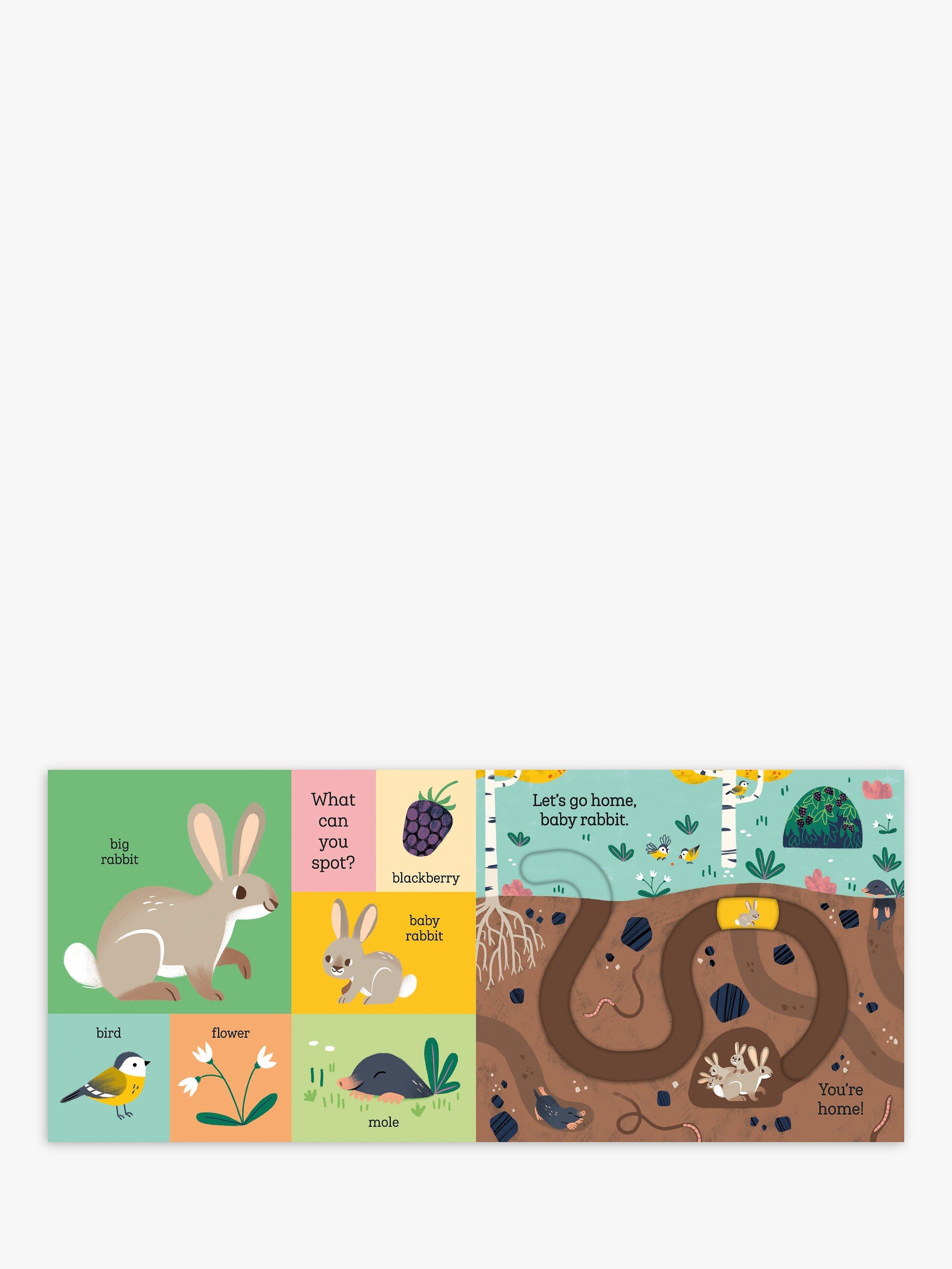 Meet rabbit, fox, bear and owl – four adorable baby animals who are lost in the woods! With easy-to-use moving parts and four unique tracks to develop hand-eye coordination and concentration, babies and toddlers will enjoy taking the baby animals home in this robust, satisfying board book.