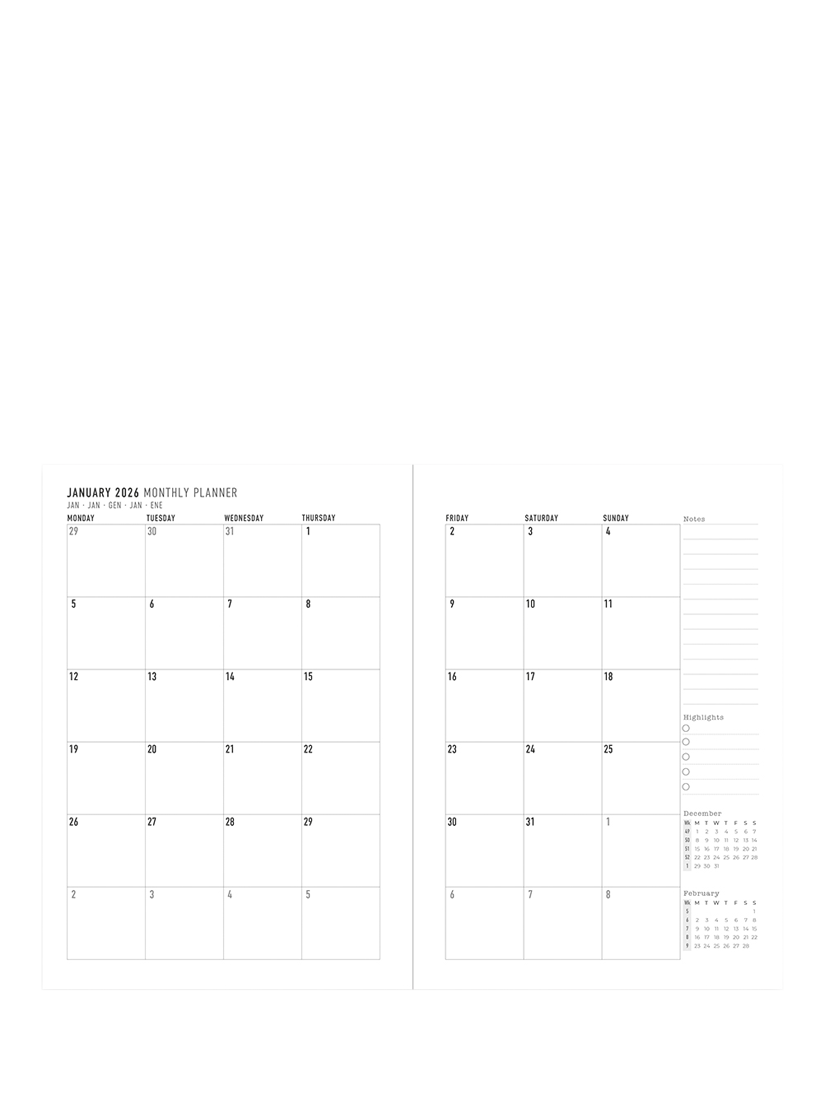 Designed for those who value focus and simplicity, Titanium Diaries are perfect for cutting through distractions and getting straight down to business. With a metallic matt paper cover, these diaries exude a minimalistic, modern vibe, almost evoking a futuristic, space-inspired look. Stay organised and on track with this stylish, no-nonsense planning companion.