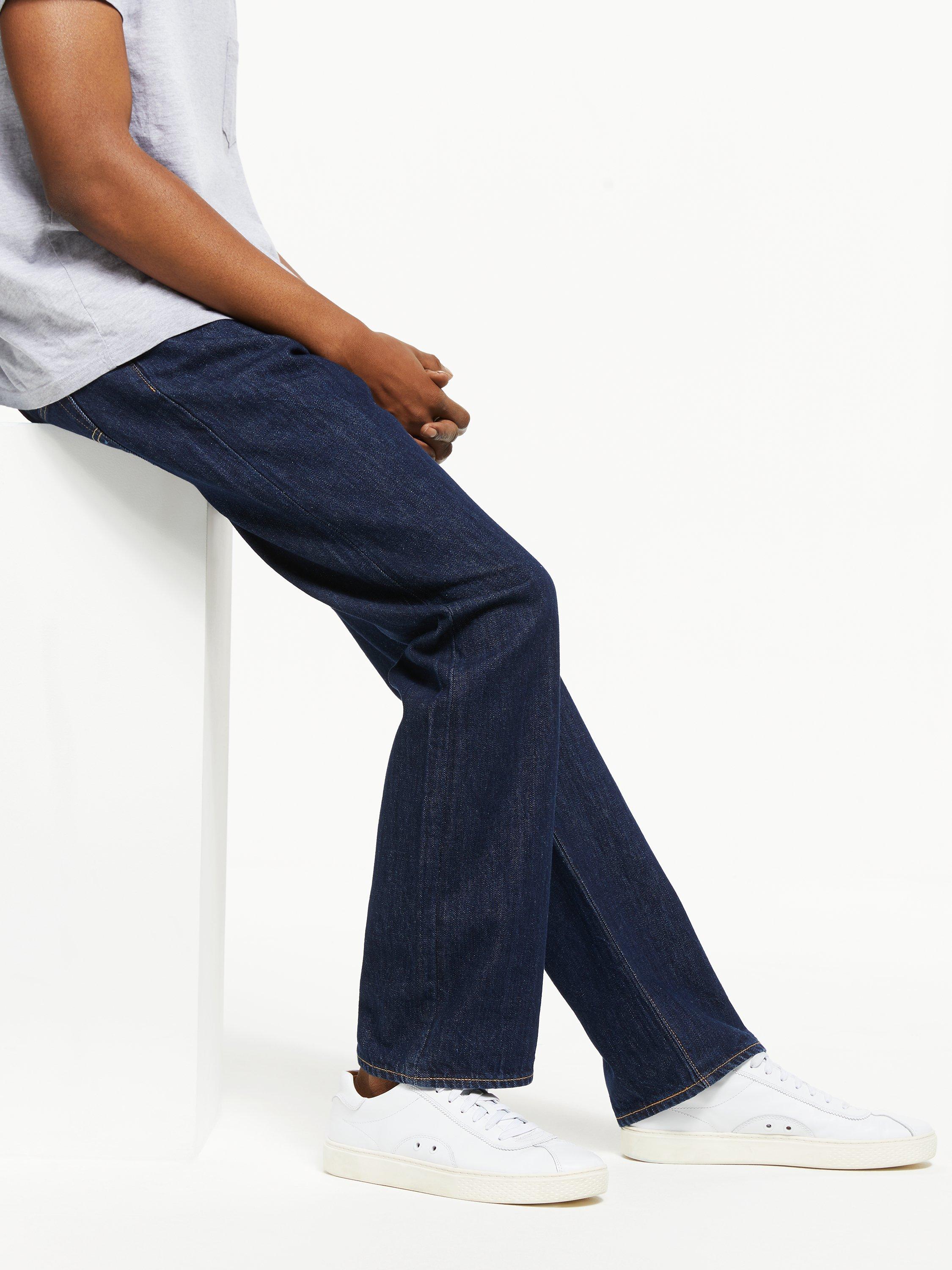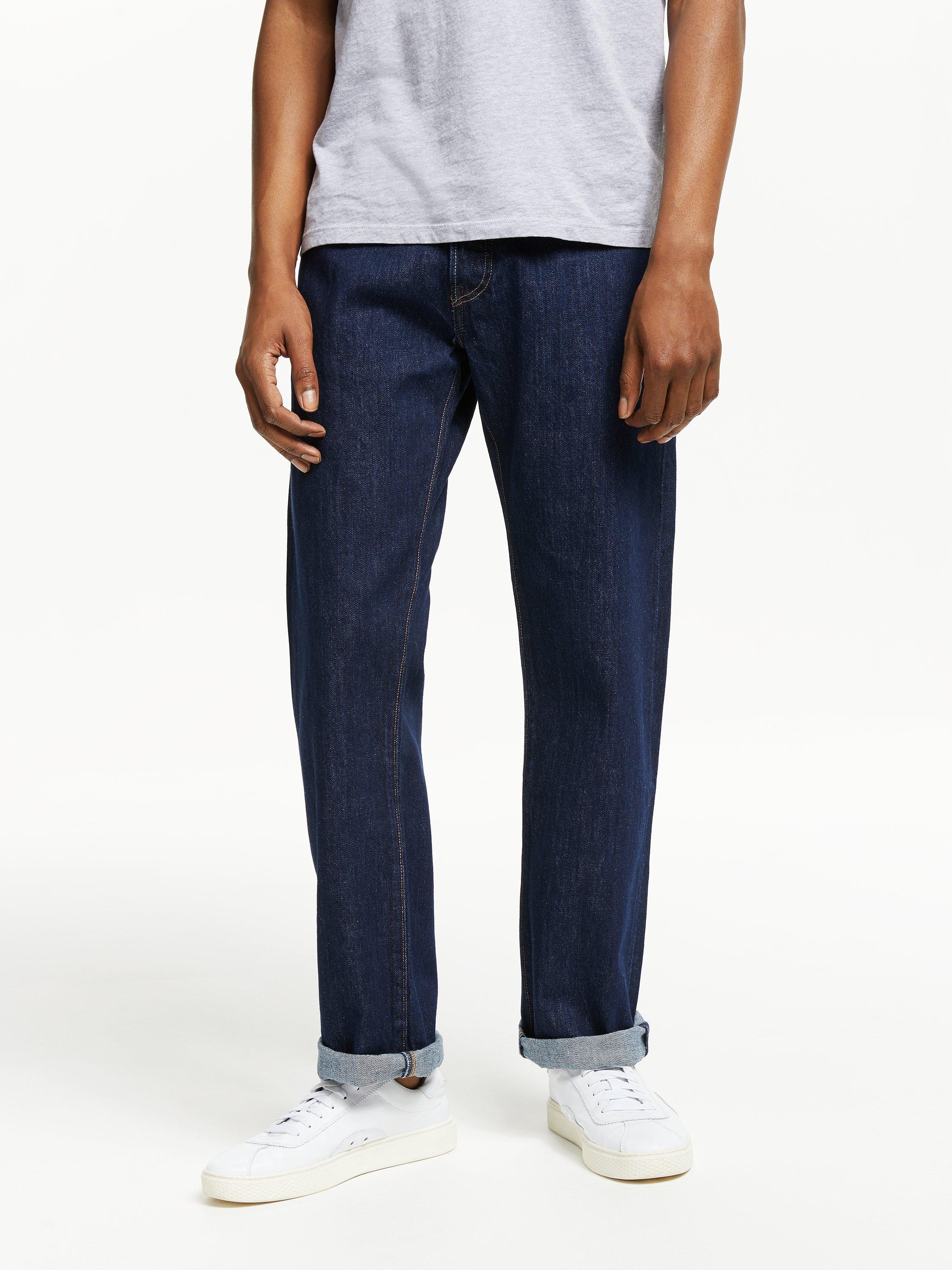 Crafted from non-stretch mid-weight cotton denim in a regular fit that's straight through the hip with a slightly tapered leg opening, their mid rise cut sits below the natural waist with a tilted waistband that pitches toward the front.